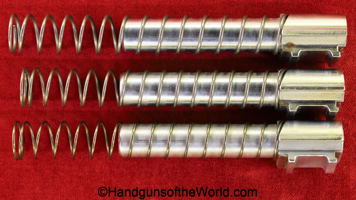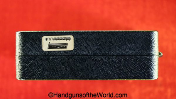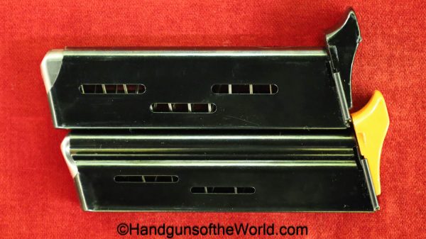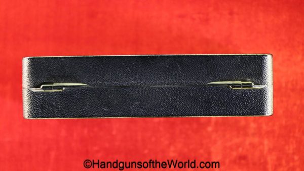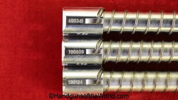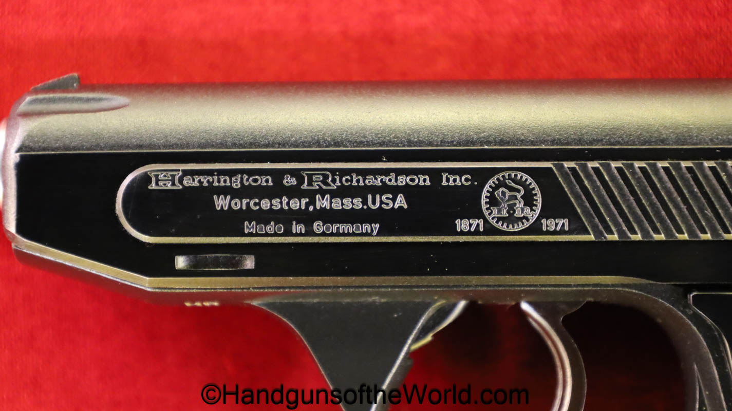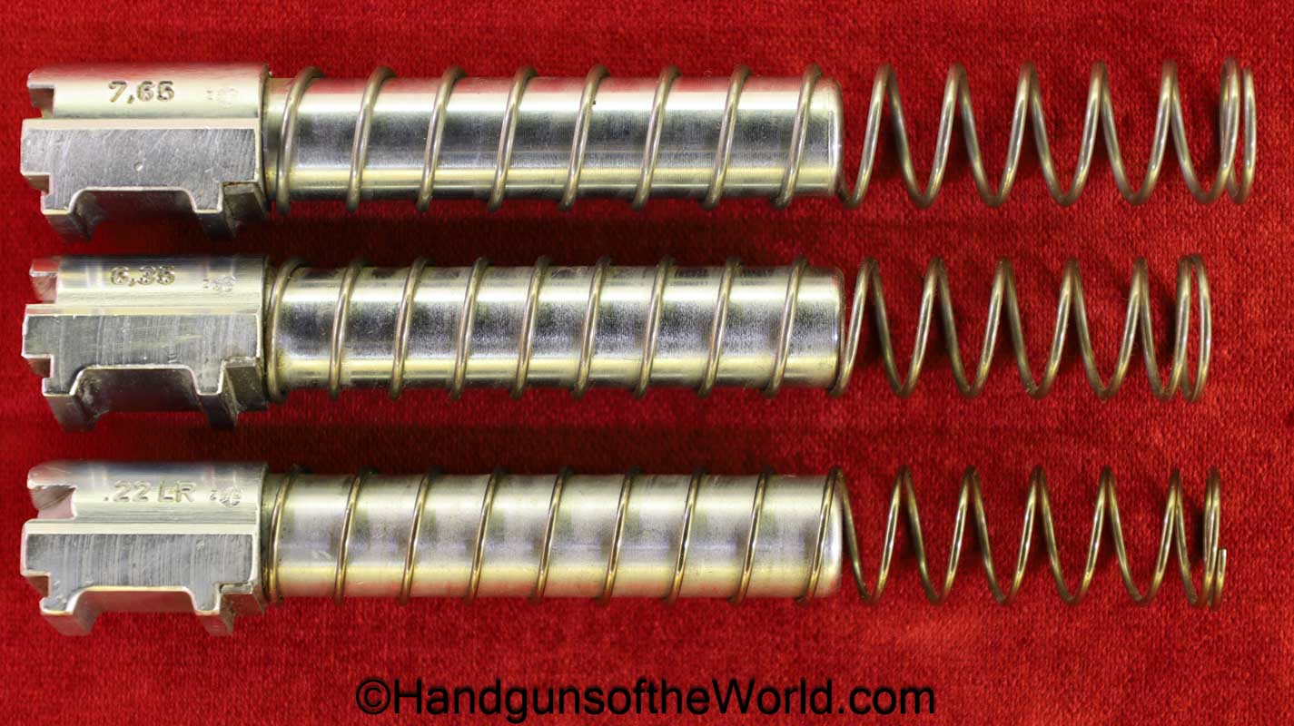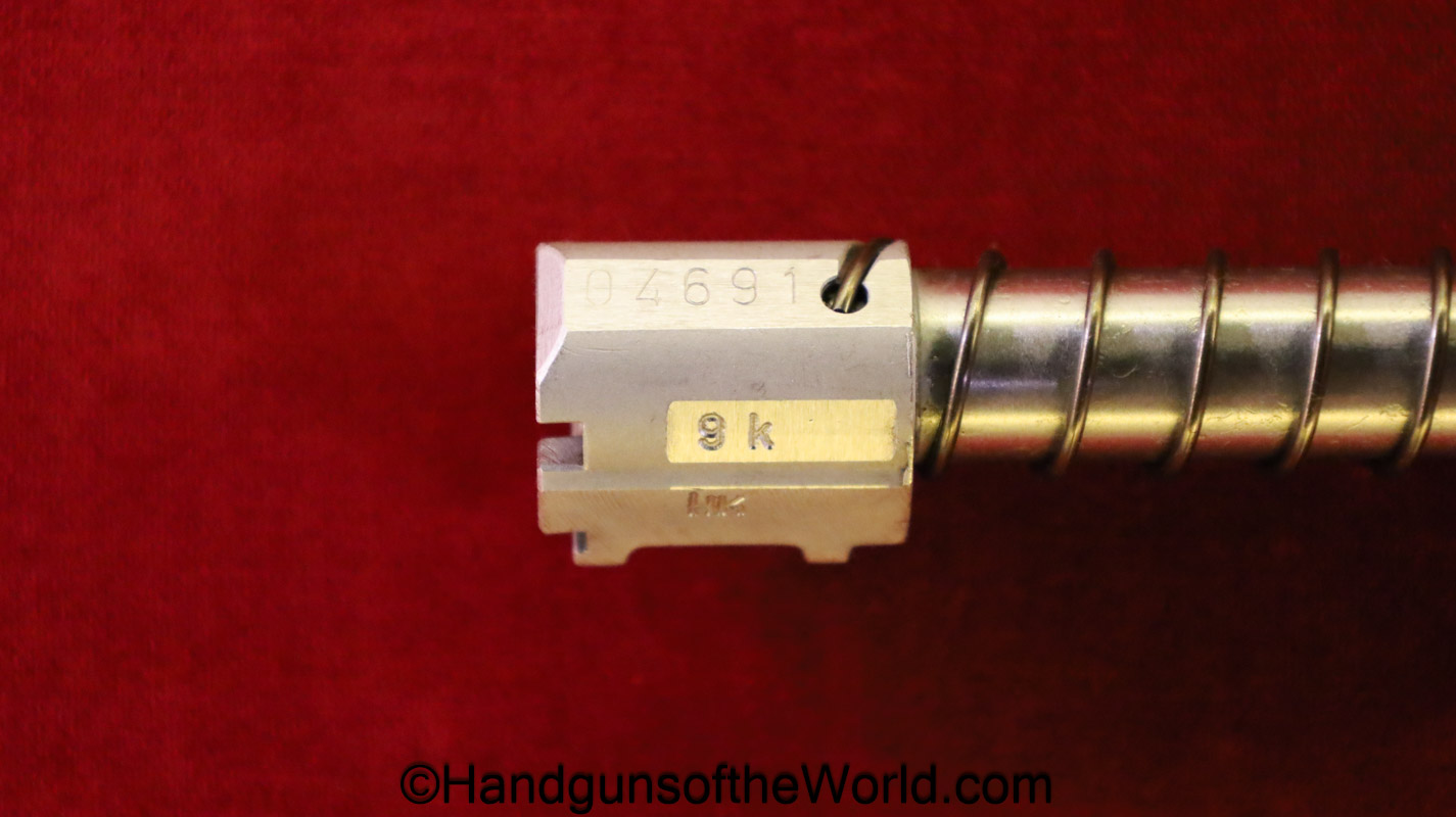 Heckler & Koch HK4, .380 caliber with aluminum frame. This was imported by Harrington & Richardson, as marked on the slide. This has the black plastic grips, with 99+% blue and the bore is excellent. This comes with an original cardboard box missing the labels. This also comes with the rare Tri-Cal Conversion Kit with a 22, 6.35mm & 7.65mm barrels and magazines. This will include 2 9mm magazines and 2 22 caliber magazines along with the owner’s manuals, extractor and pin punch to assist with the change in calibers. Overall Excellent.