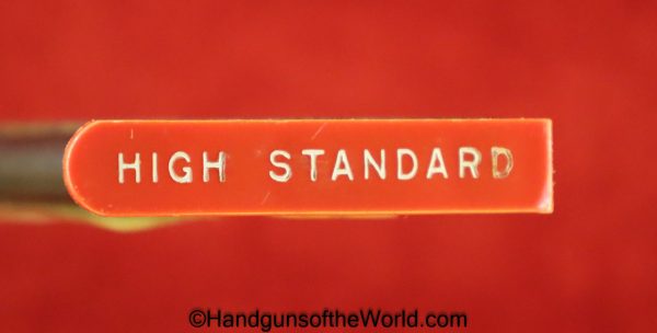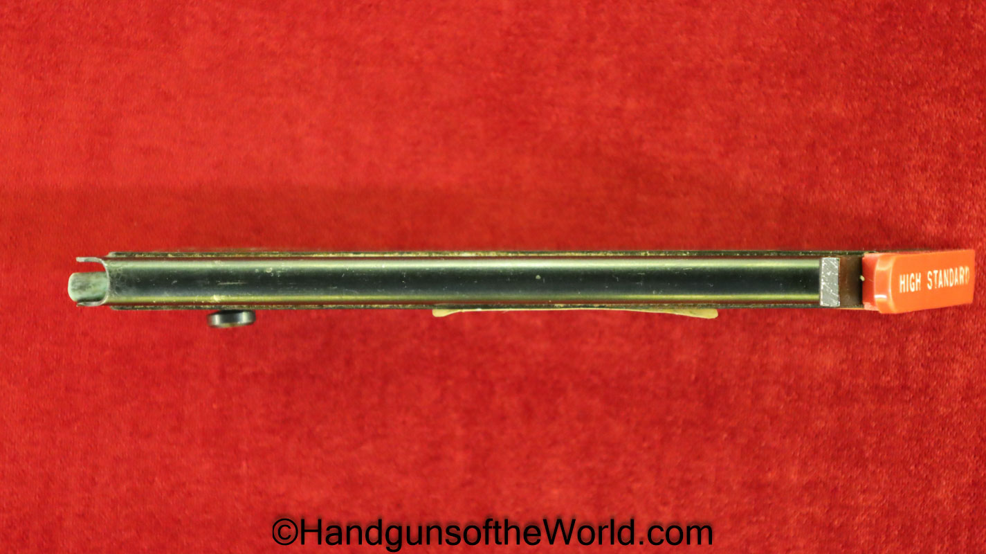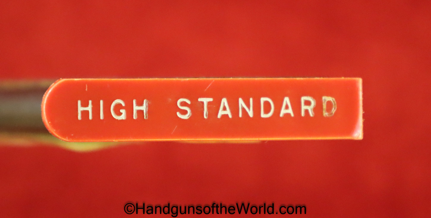 Original High Standard ML Series Models 106 and 107, .22 caliber Pistol Magazine. This has the original red plastic base marked “High Standard”. About 98% blue remains, and the base is solid.