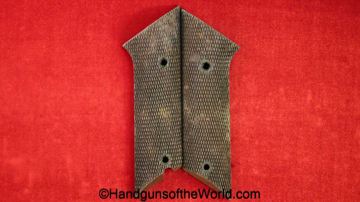 Original High Standard HD Military Pistol Grips. Checkered walnut. Overall VG+.