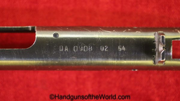Hungarian M-48, 7.62mm/ This has black Bakelite grips with the Hungarian crest. Dated 1954 there are no importer markings on this one or any added safety. This has all matching number, but the proper magazine. The blue rates about 98% and the bore is excellent.