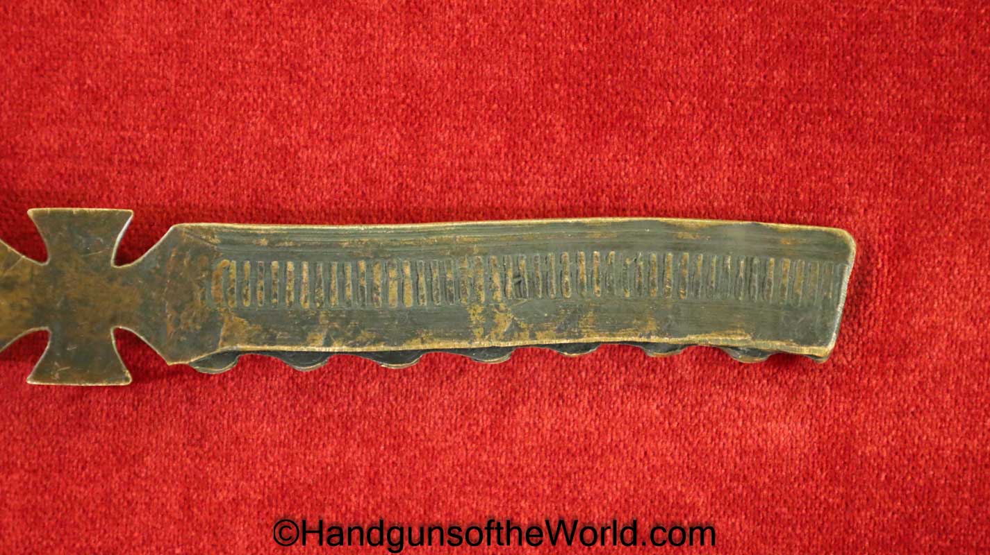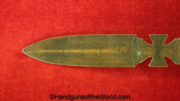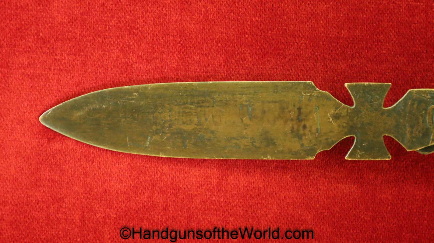 GI made Knife made from some type of copper shrapnel. This is 6 1/2″ overall and has a German Knights Cross in the center. Overall VG+.