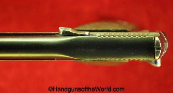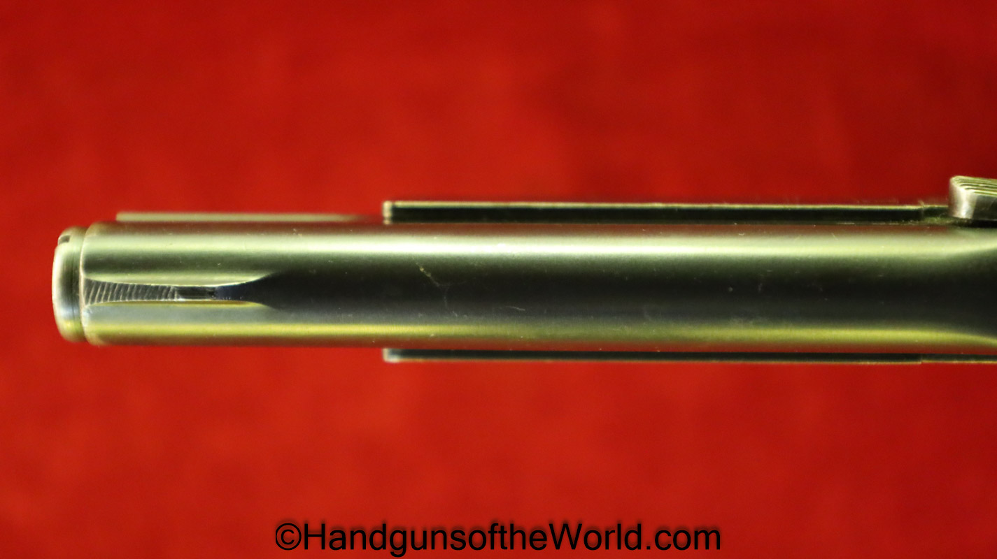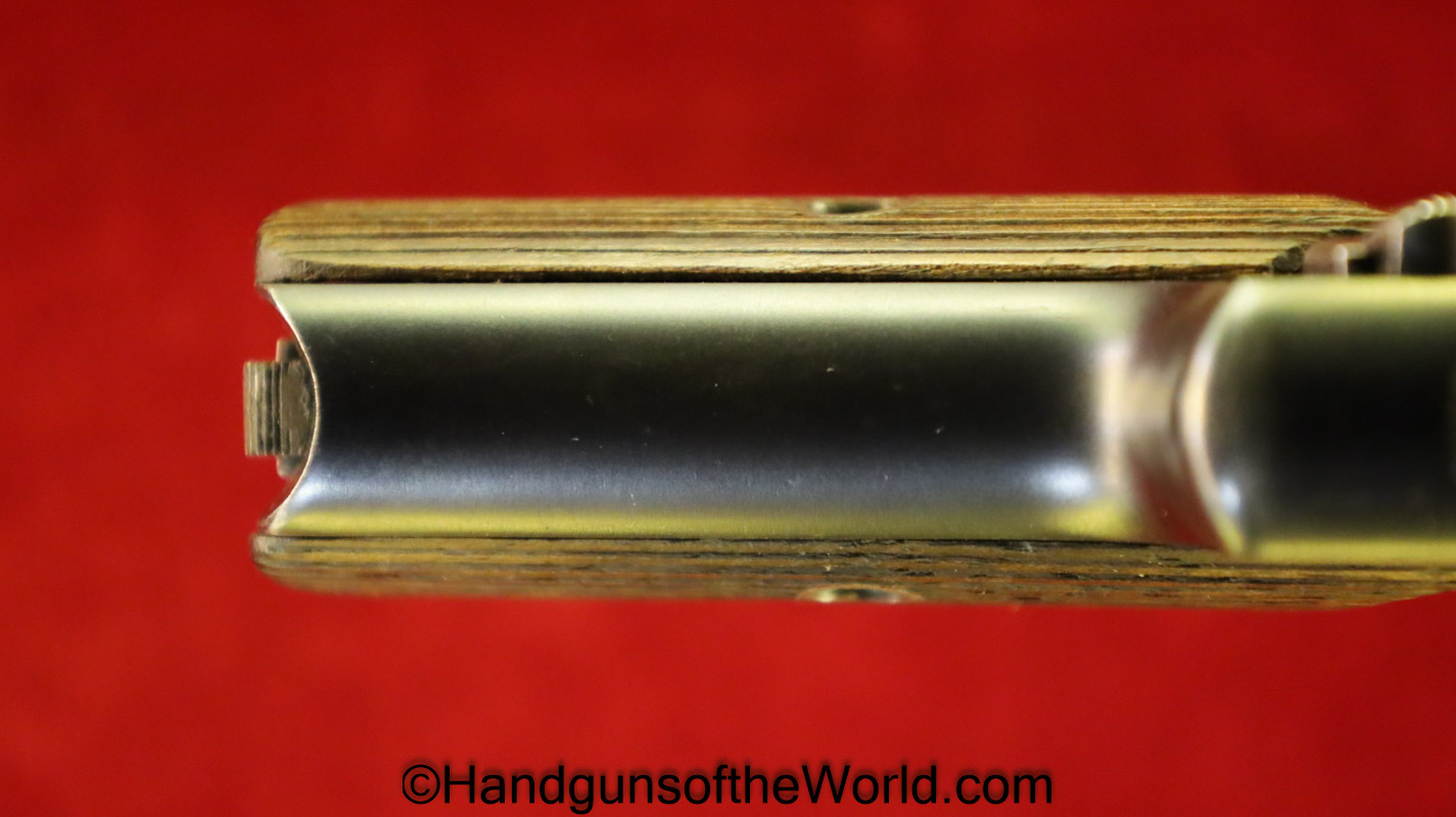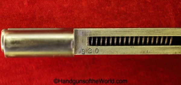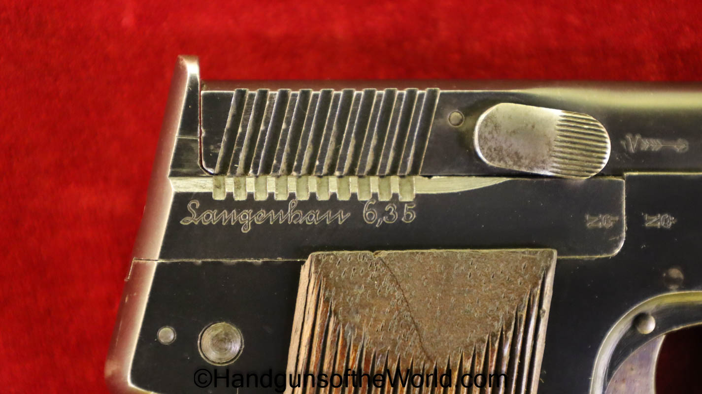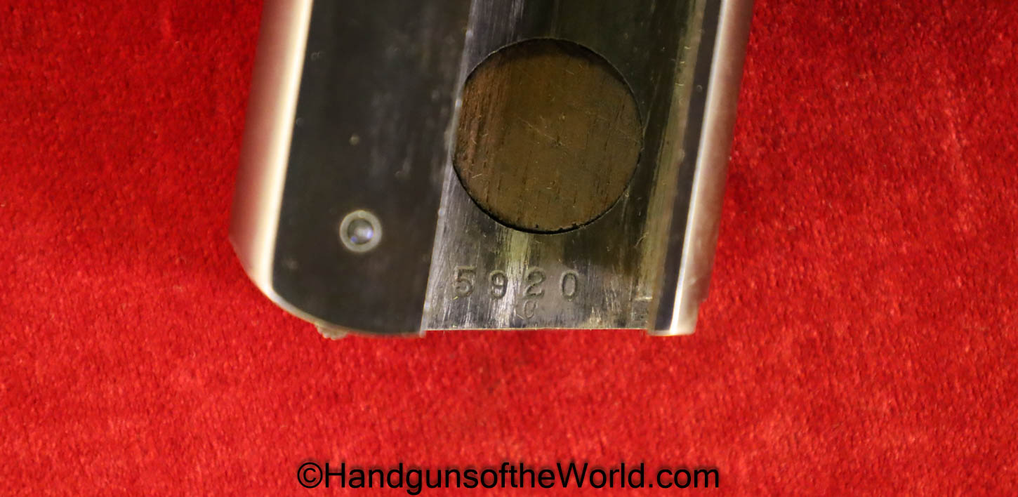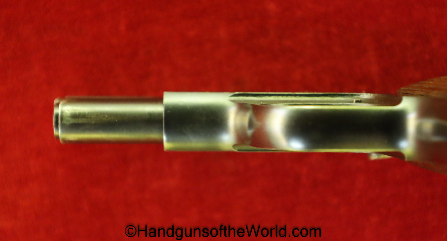 Langenhan Model II, 6.35mm. This has the original lined walnut grips. The blue rates about 98% and the bore is excellent.
