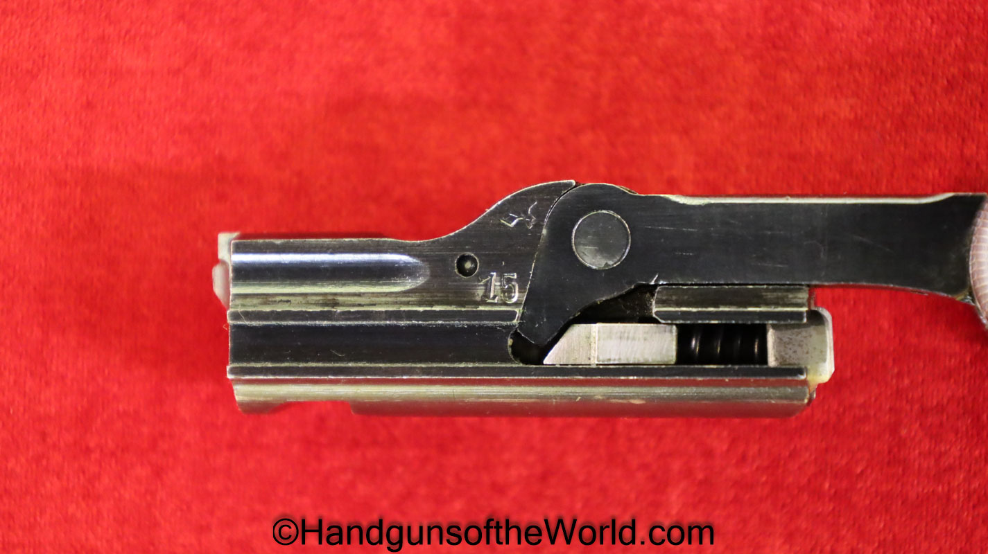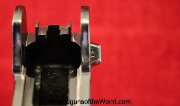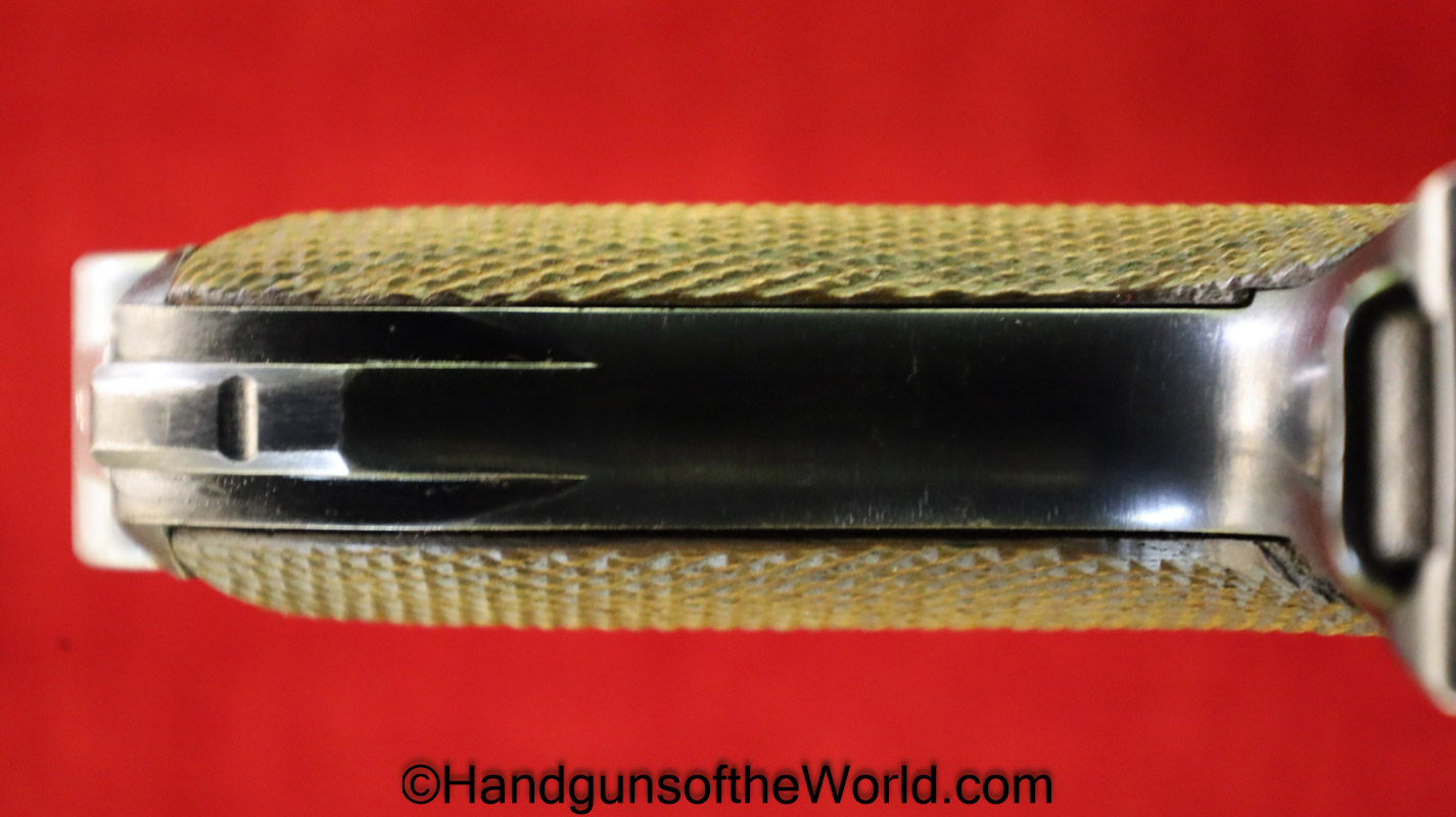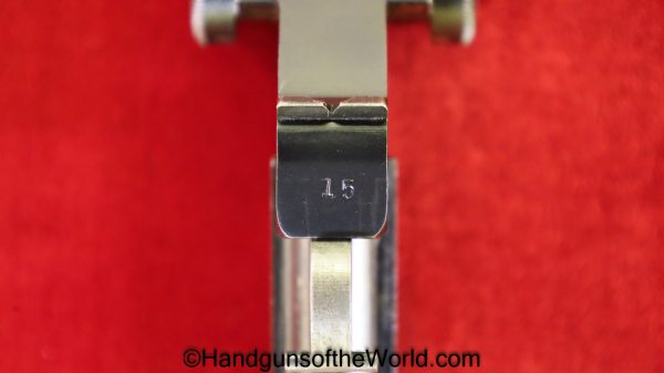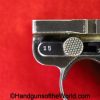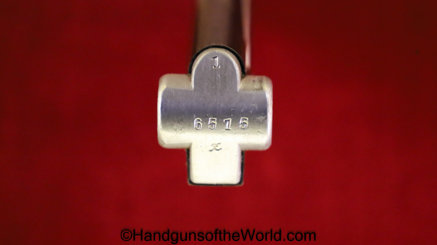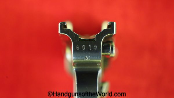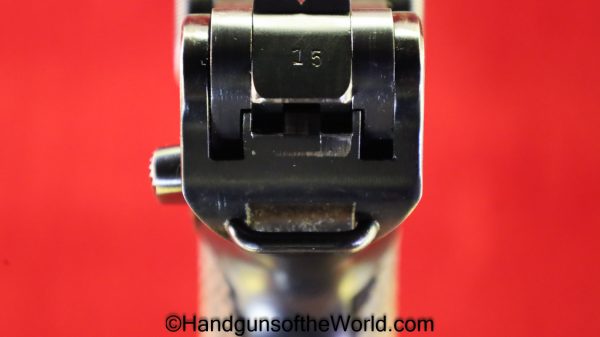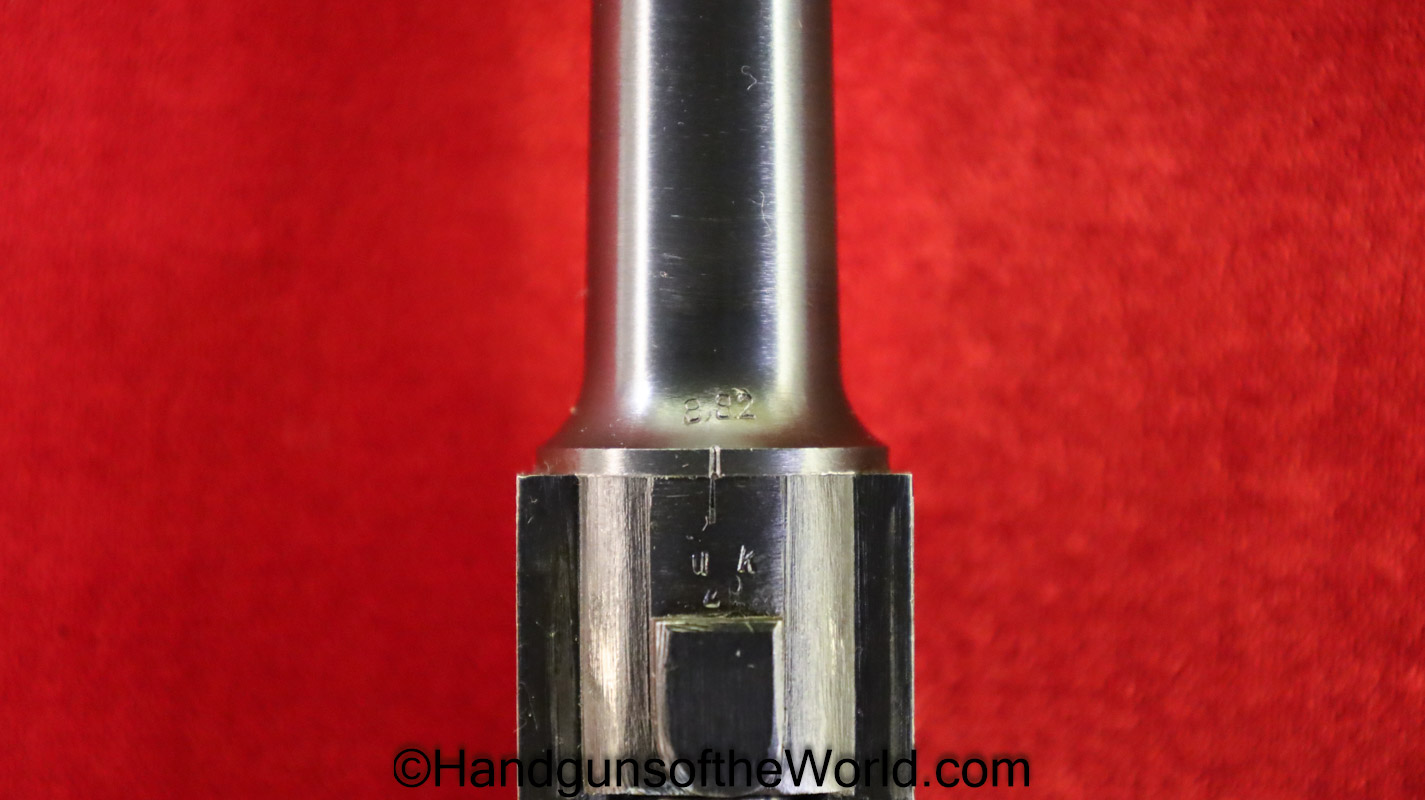 Mauser P.08 Luger, Mauser Banner 1941 with German Eagle N proofs, and Police eagle L proof on the right receiver. This has the Police sear safety, and checkered walnut grips. This has all matching numbers to include the magazine. The blue rates about 98% and the bore is excellent.