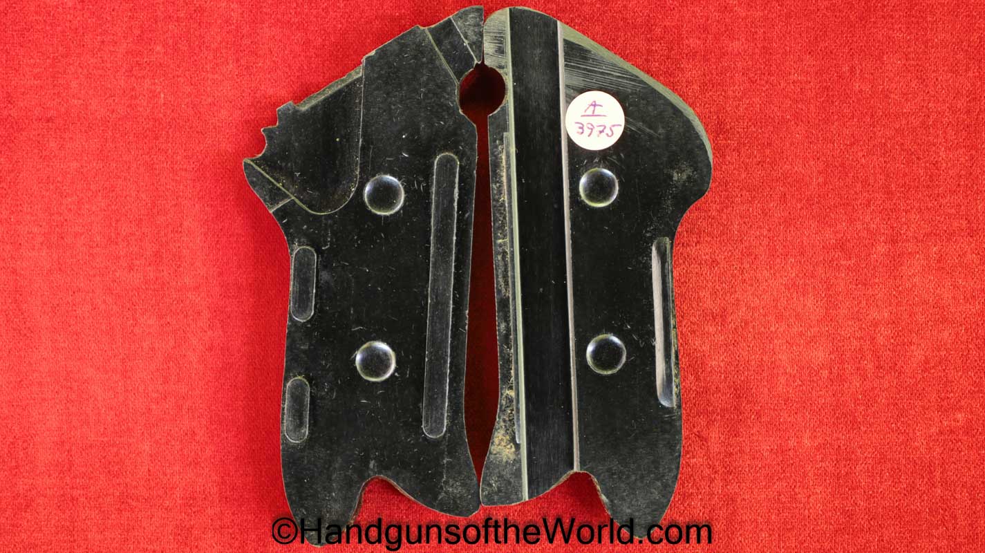 Period German Luger P.08 Pistol Grips. Lined black Bakelite. Overall Excellent.