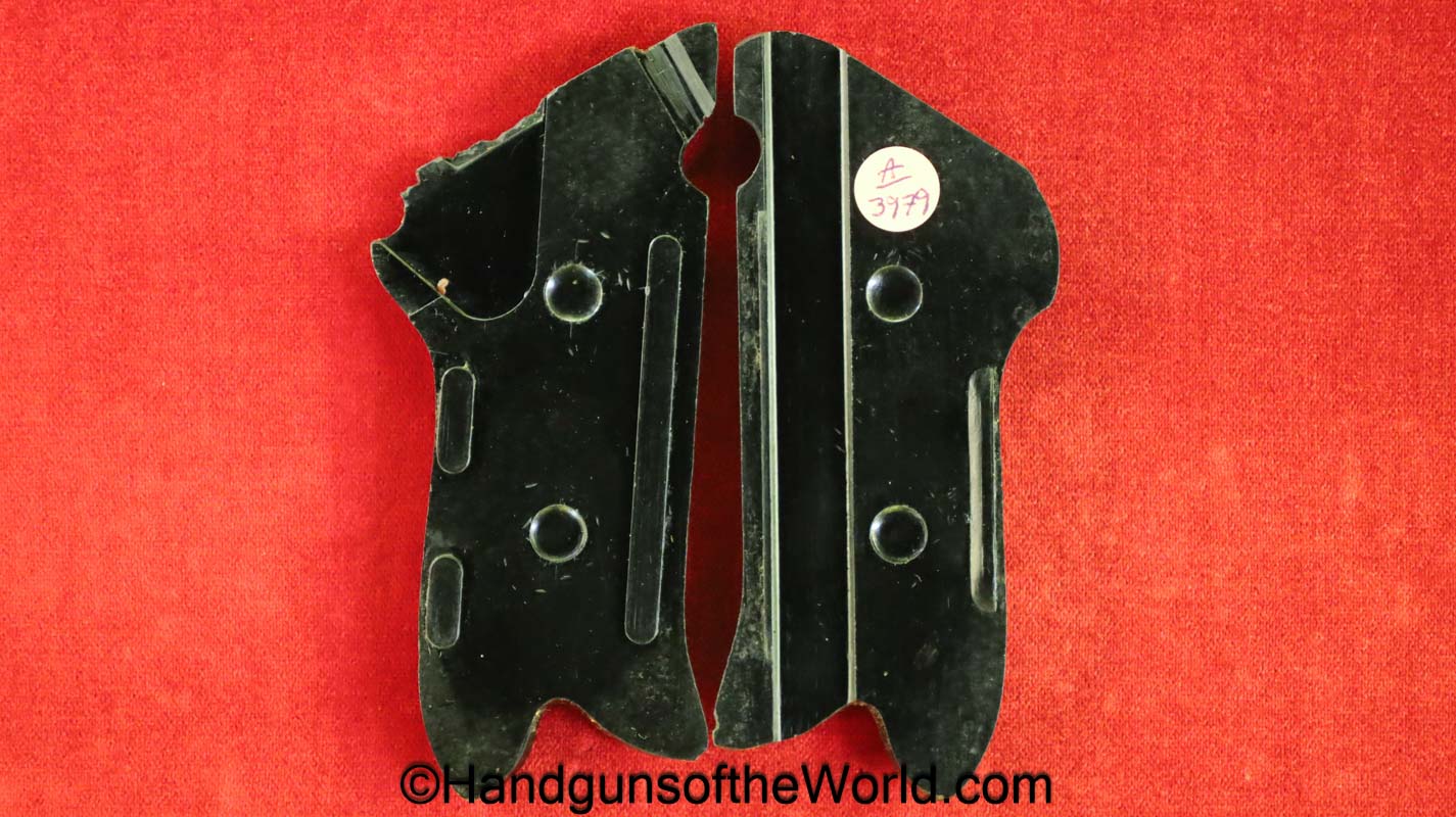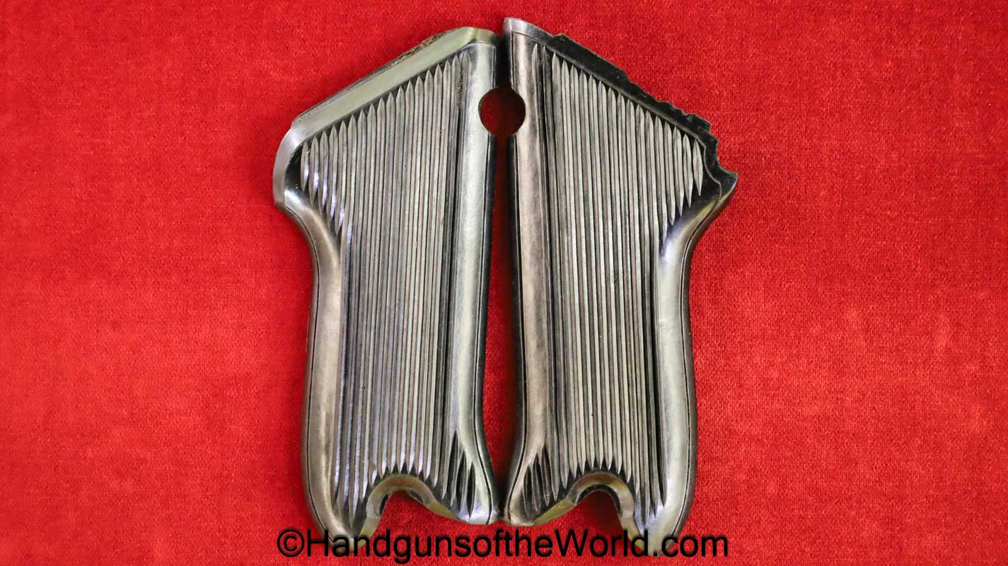 Original German Luger P.08 Pistol grips. Lined black Bakelite. Postwar usage. Overall excellent.
