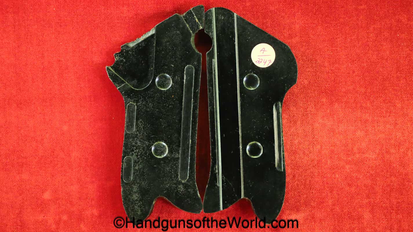 Luger P.08 Pistol Grips. Lined black Bakelite, unmarked. Overall VG-VG+.