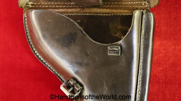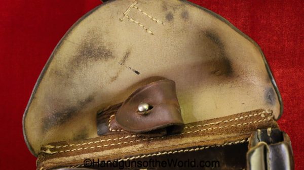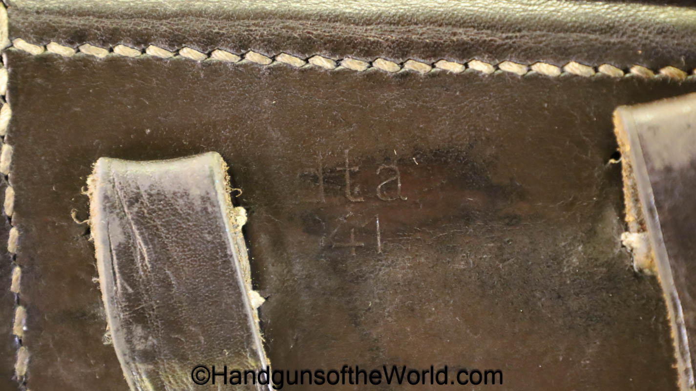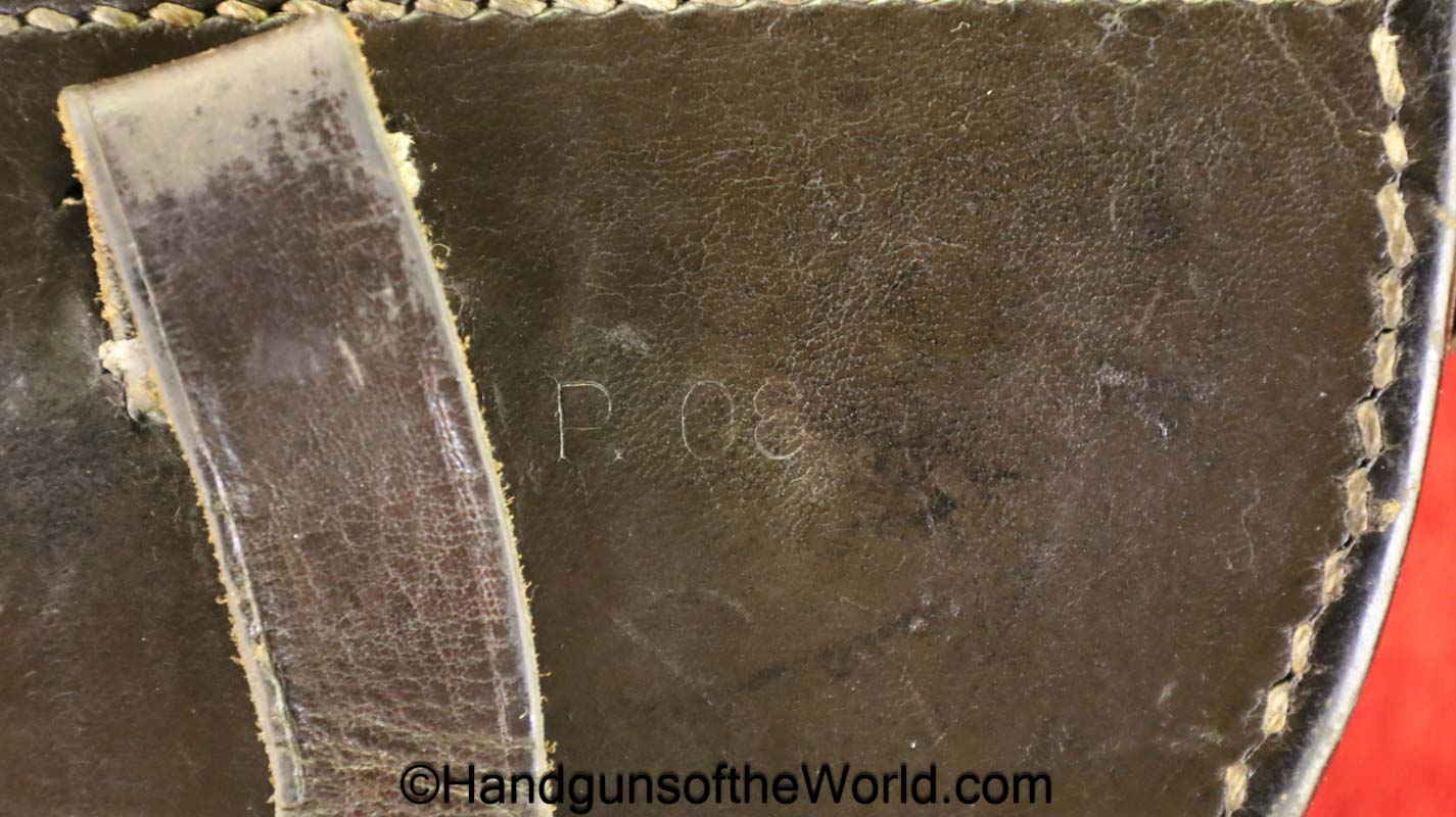 Original German Luger P.08 Pistol Holster. This is a brown leather hardshell, German Military marked dta-41-P.08 on the back. The takedown tool is loose some. Overall VG-VG+.