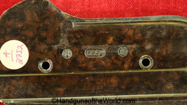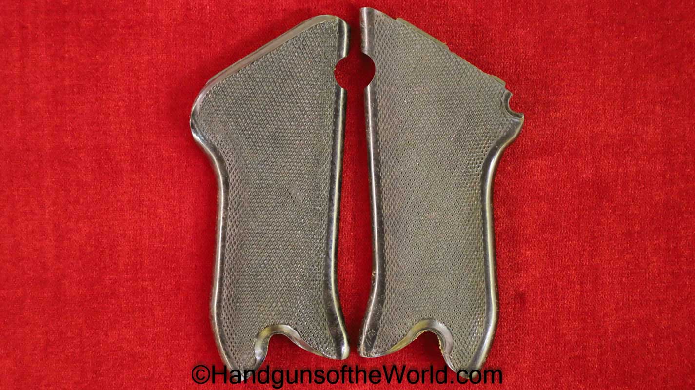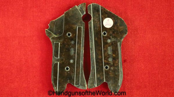 Original Ritzmann pattern, Krieghoff Luger P.08 Pistol Grips. These are finely checkered brown Bakelite with the makers mark on the backs. Overall Excellent.