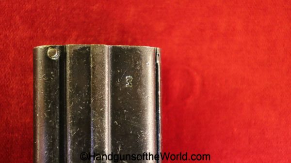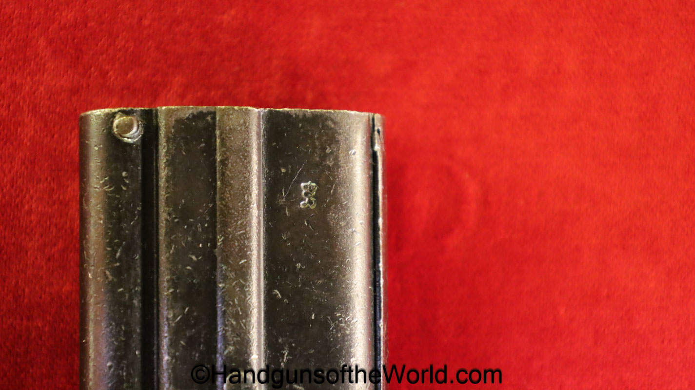 Original Luger P.08 Snail Drum Loader. This has a cast steel handle and stamped fittings. This is German Imperial proofed on the side. Overall VG-VG+.