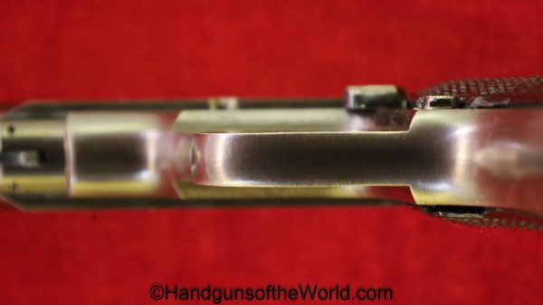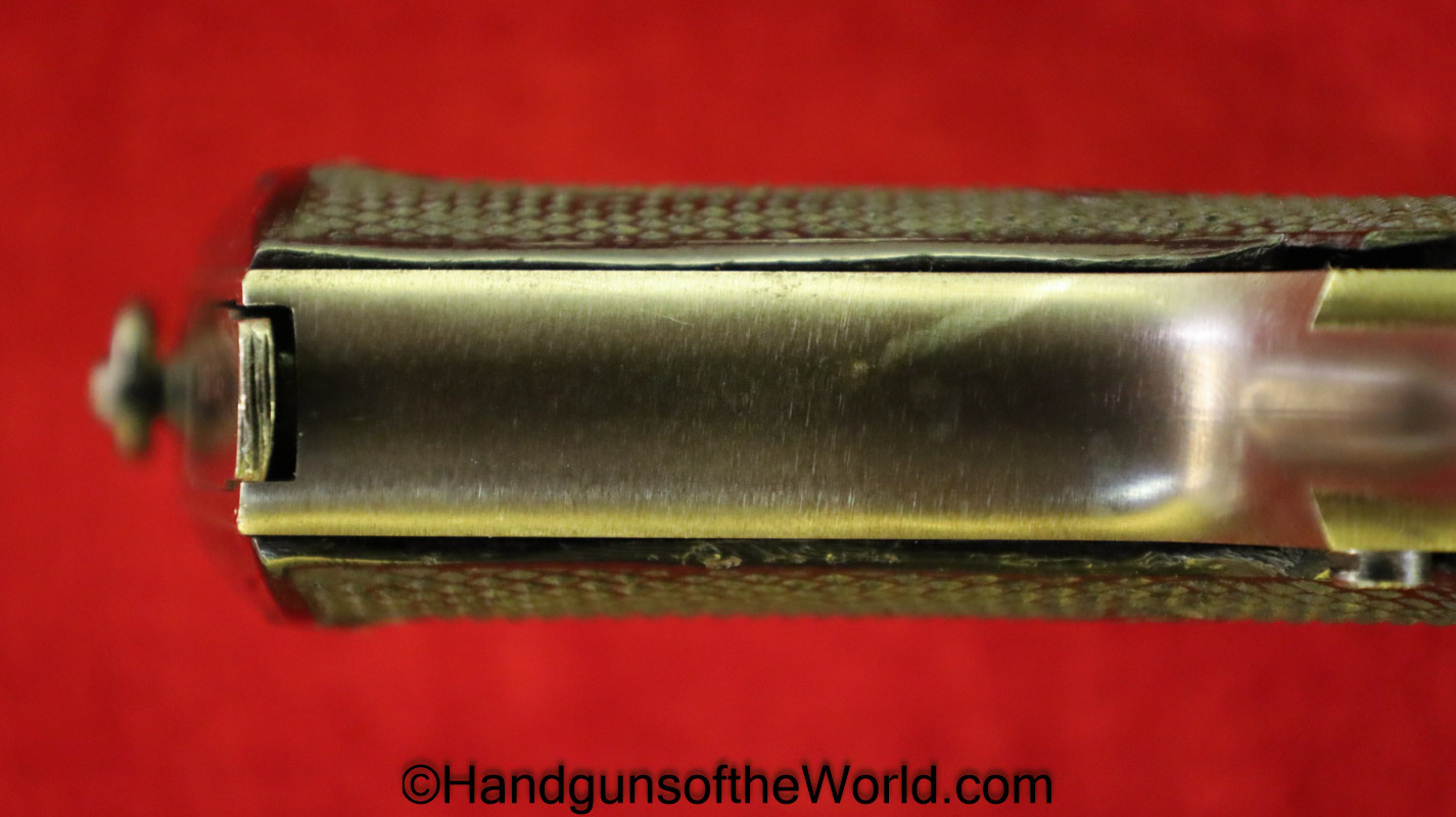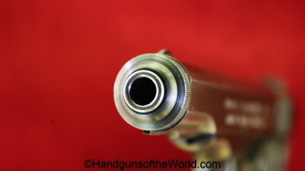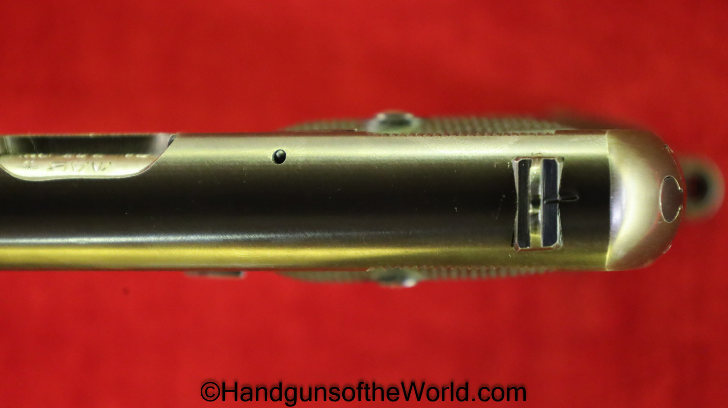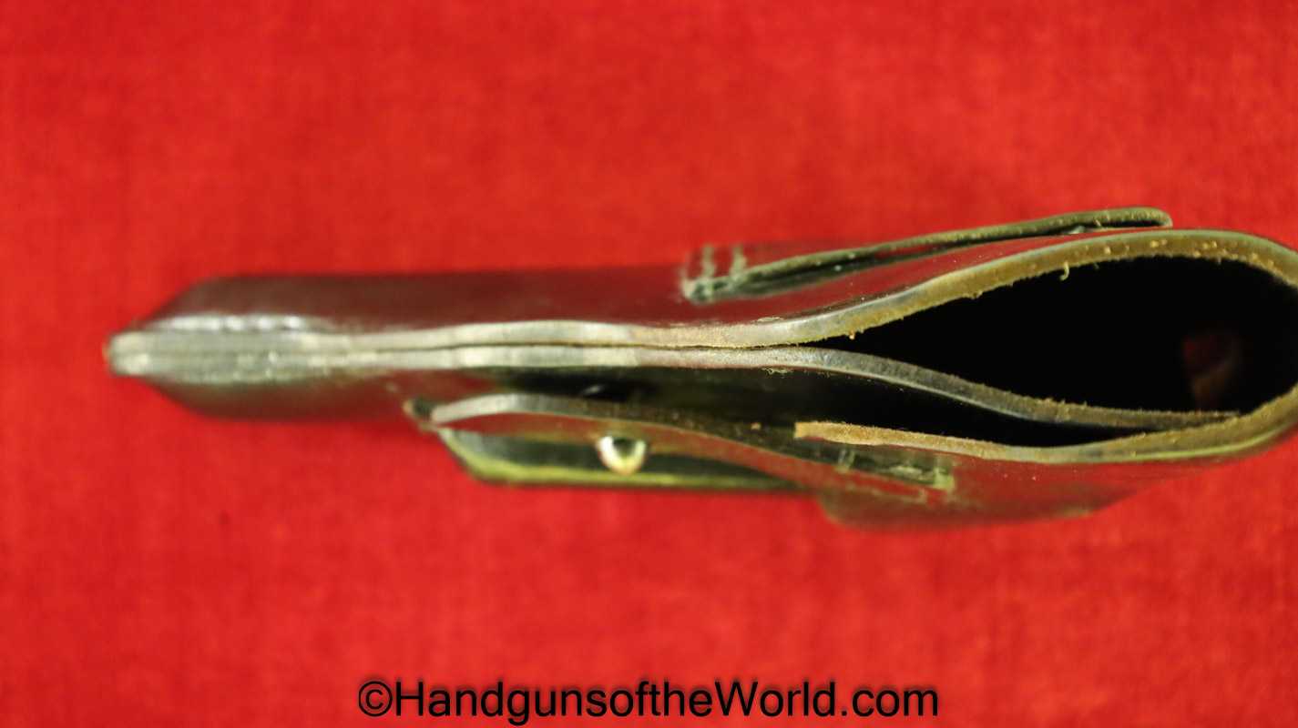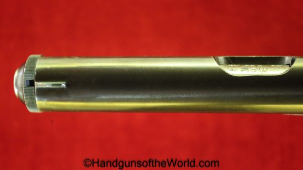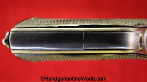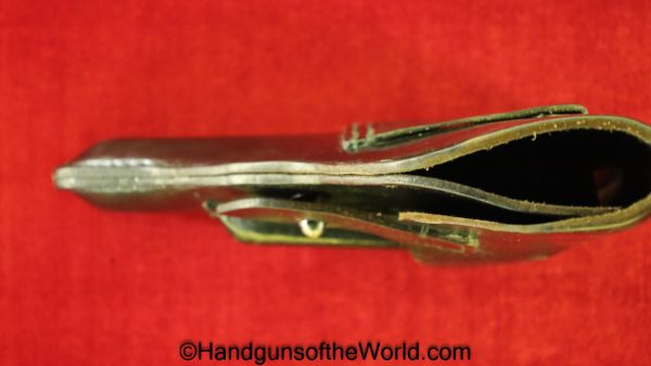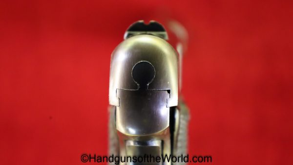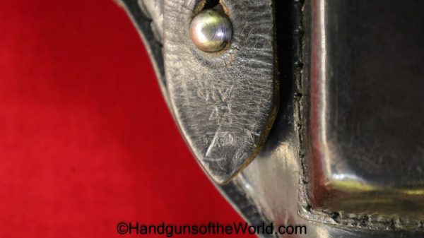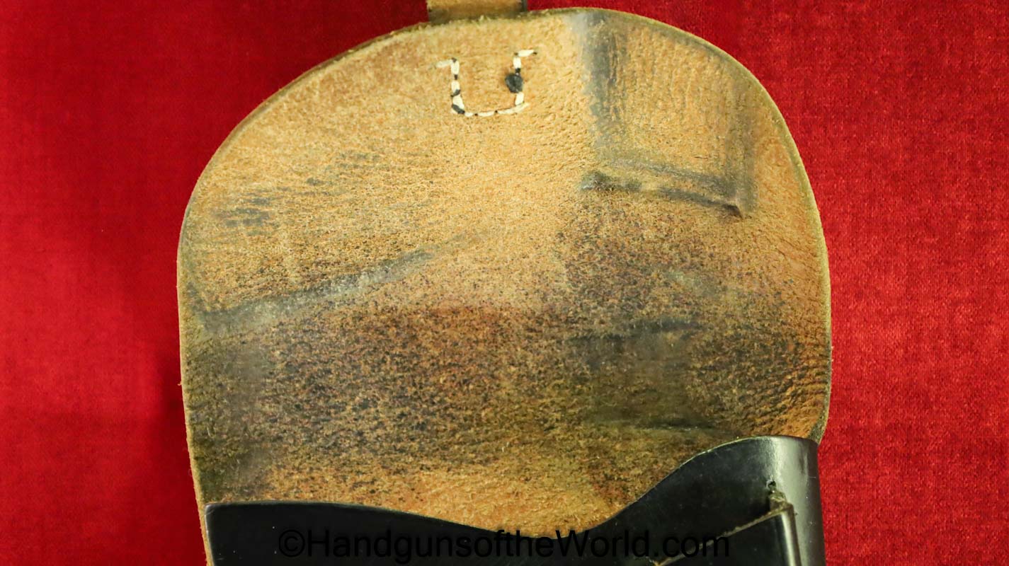 MAB Model D, 7.65mm. This is German WWII WaA251 proofed on the right side of the frame. This has correct black Bakelite grips. The slide has the matching number. The blue rates at 99% and the bore is excellent. This full rig includes a period, black leather holster and a spare magazine.
