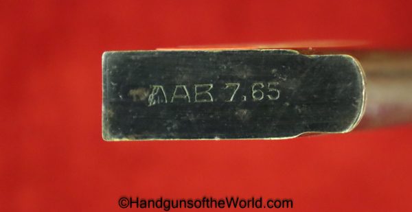 Original MAB Model D, 7.65mm Pistol Magazine. “7.65-MAB” marked on the base. About 90% blue remains.