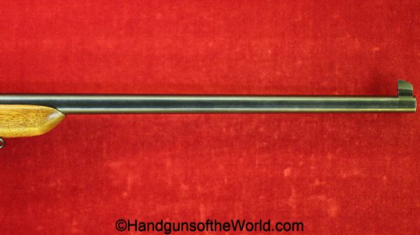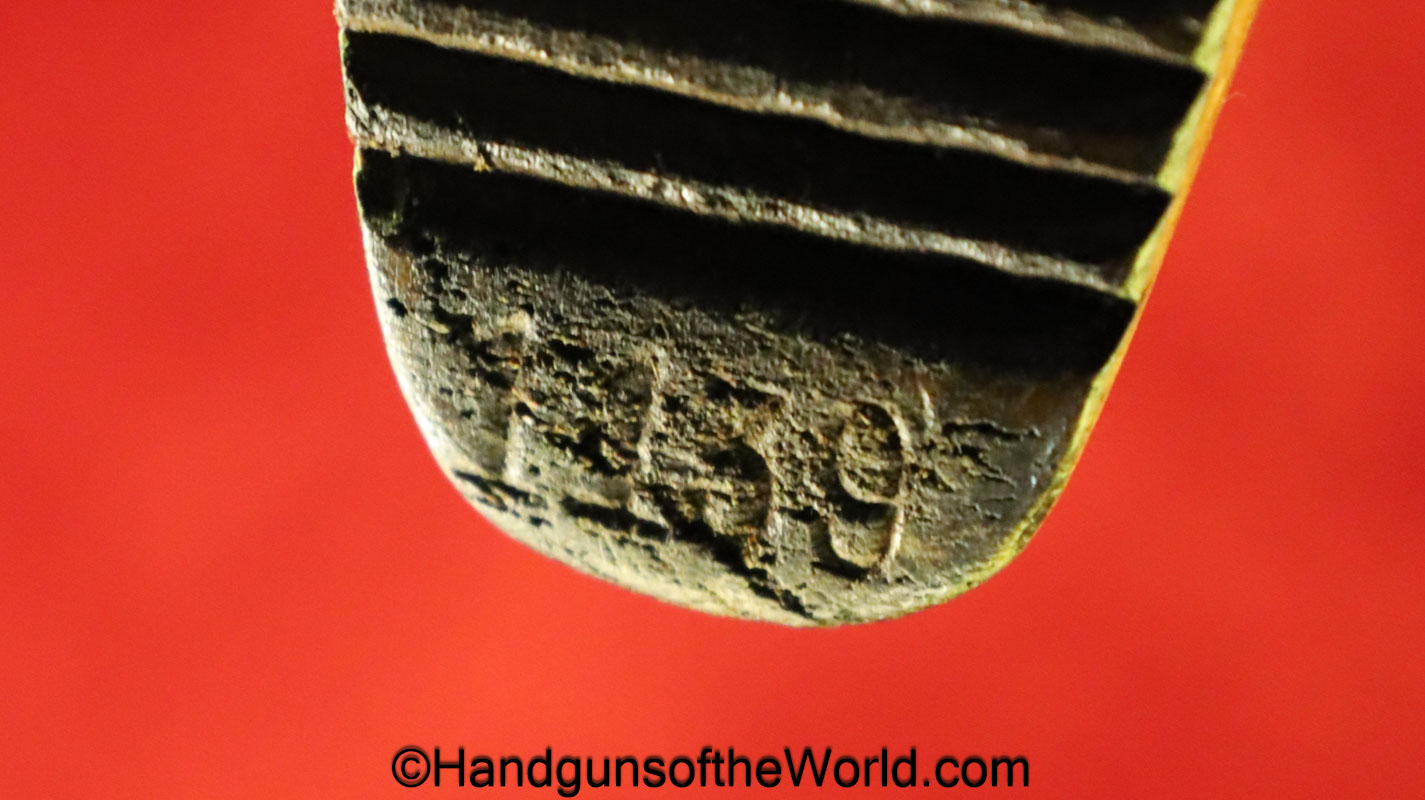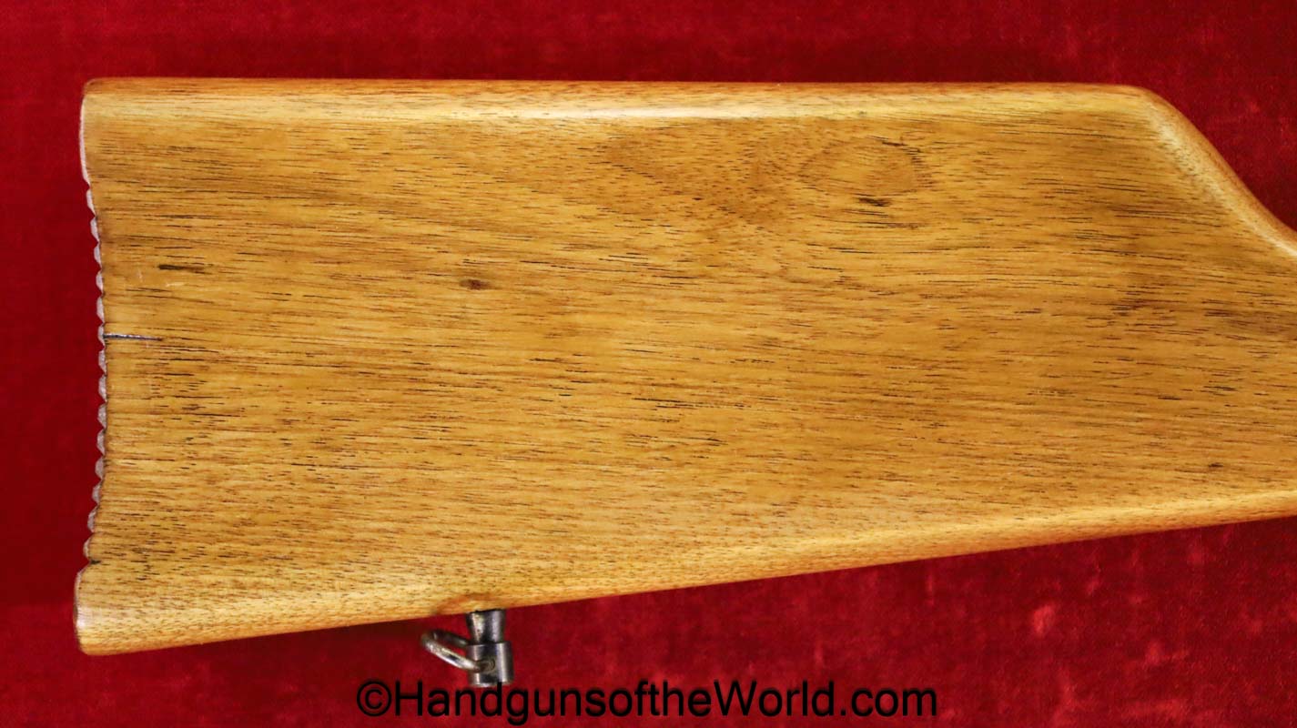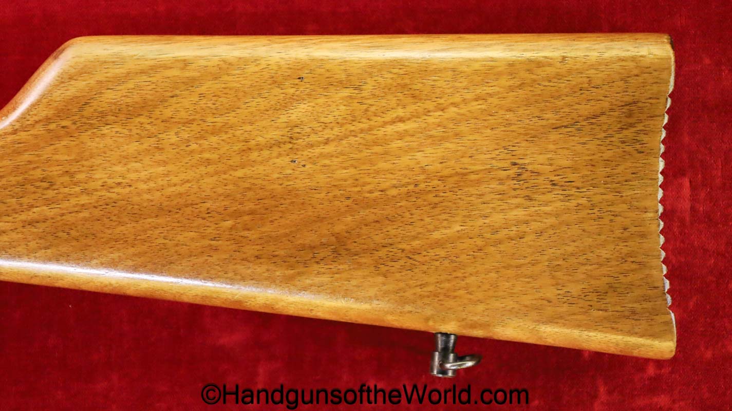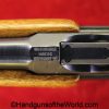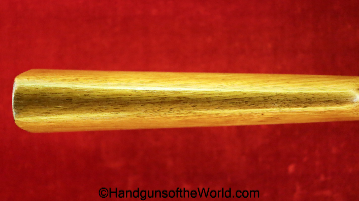 Mauser 1896 Broomhandle Carbine, 7.63mm. This has a 16″ barrel and a smooth walnut stock and forearm. There is a Mauser banner on the left side of the frame. While assembled from parts, this now has all matching assembly serial numbers. This has no importer markings, about 99% retailer blue and the bore is excellent. This was not built by Mauser as a carbine, but rather a professional rendition converted to the famous Mauser Broomhandle Carbine.