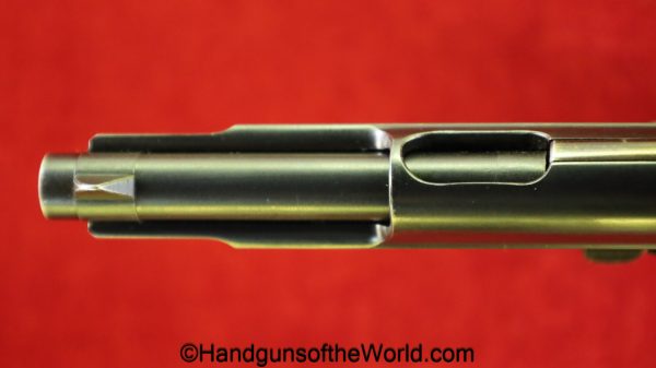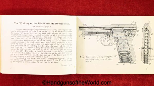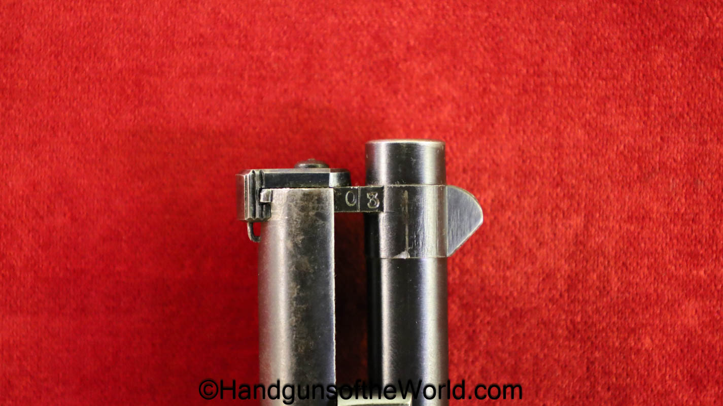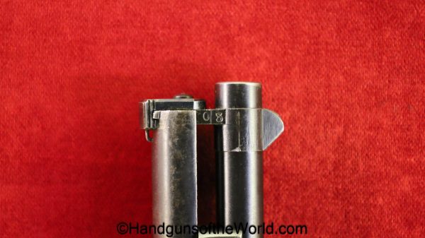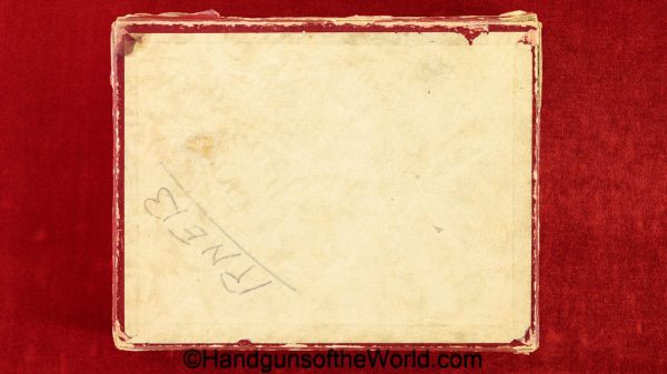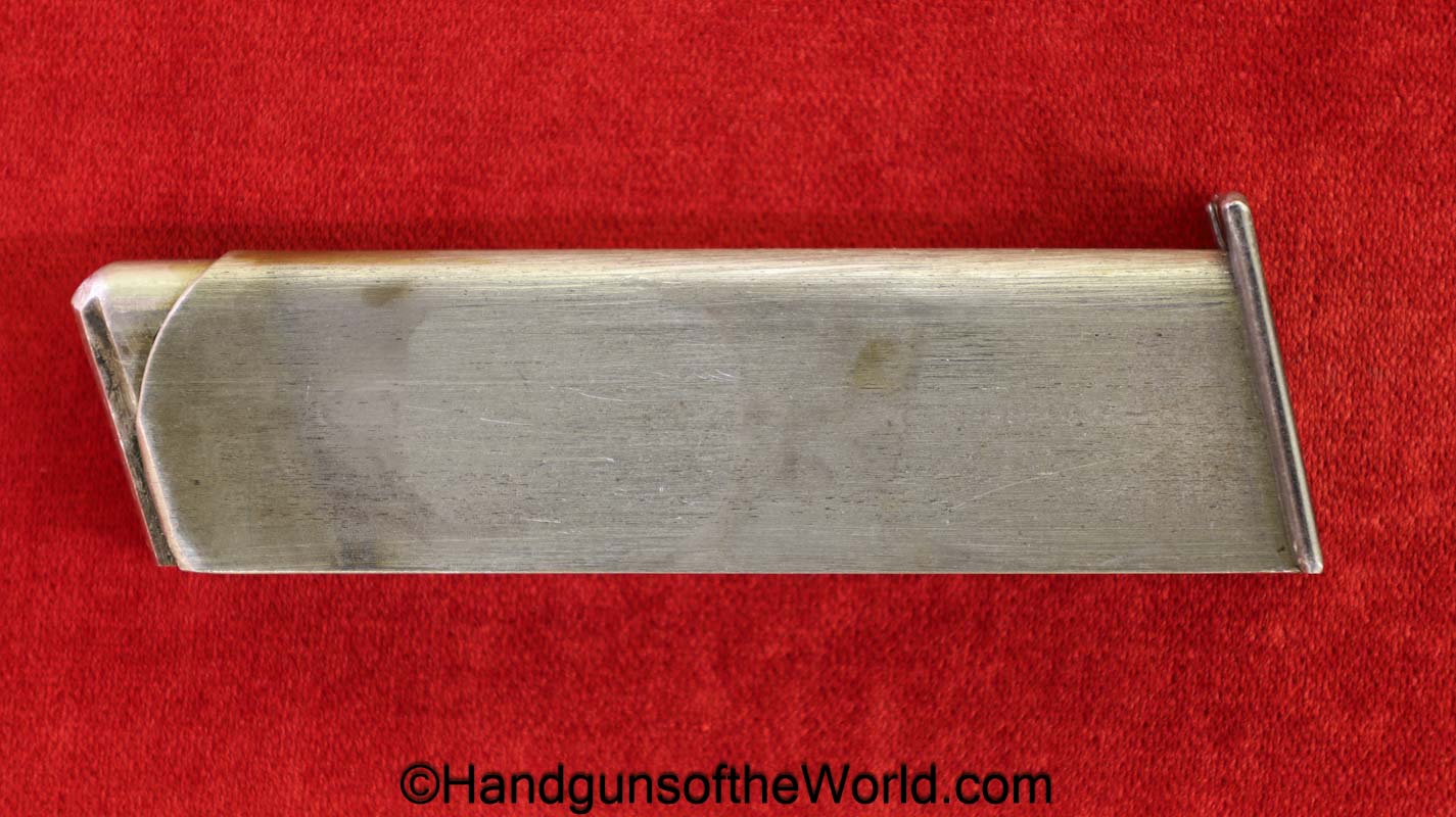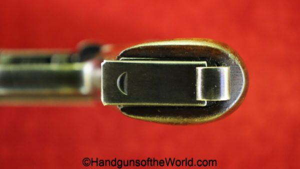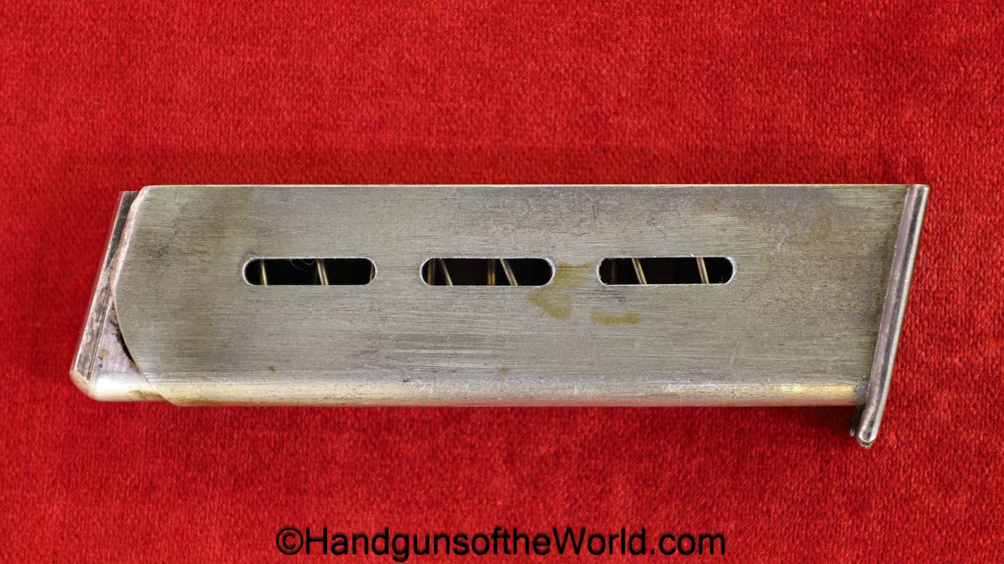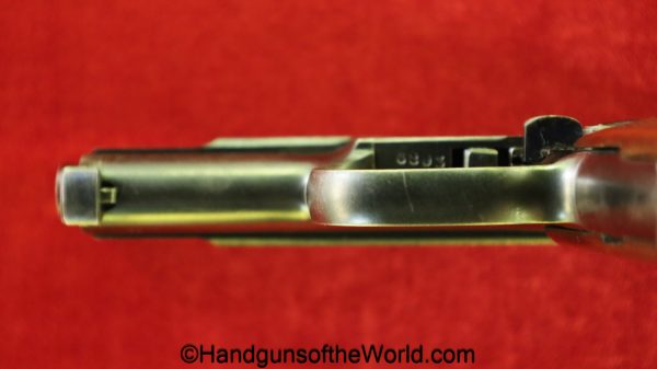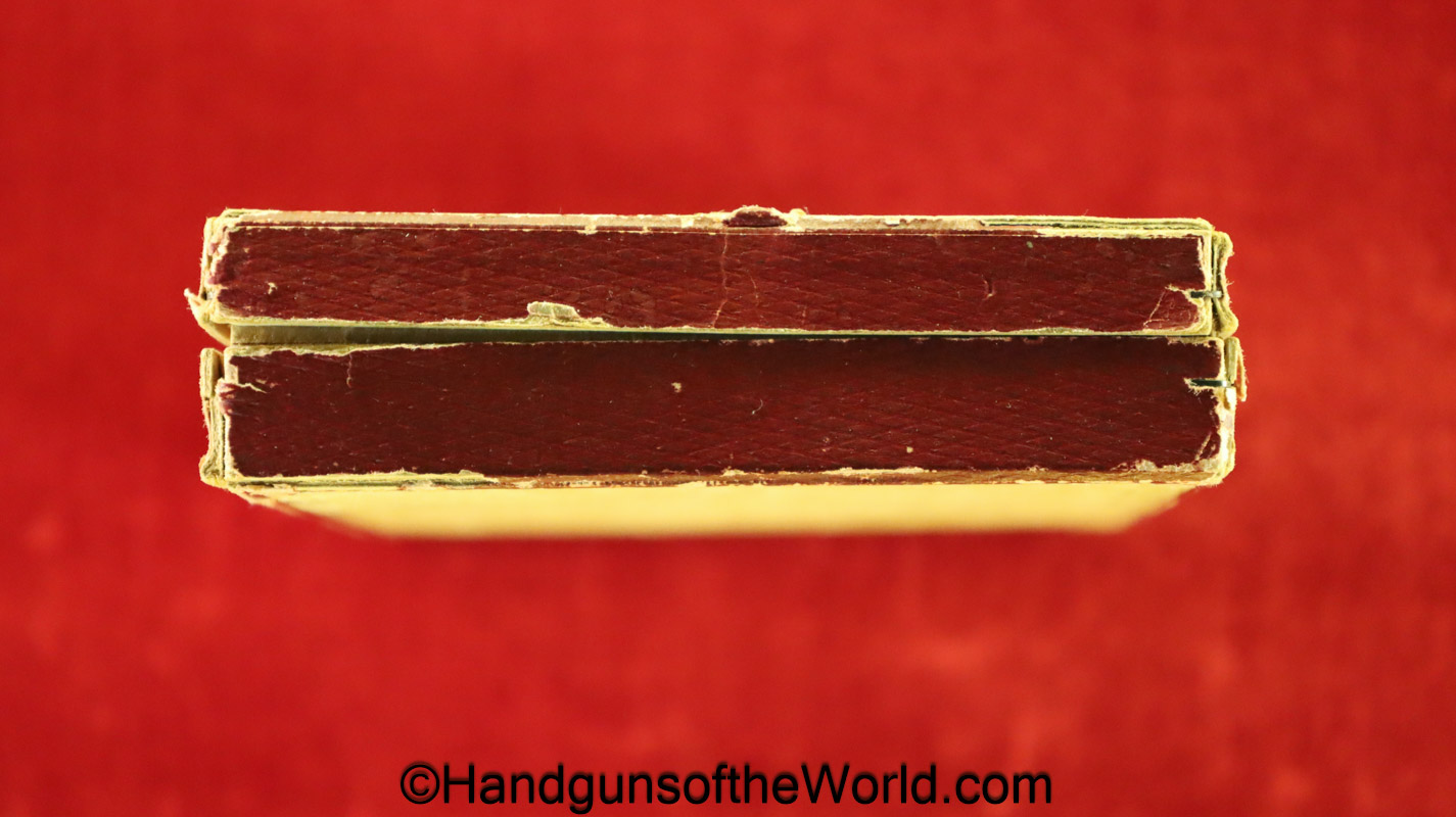 Mauser 1910, 6.35mm. This has the correct 1 piece checkered walnut grips, and is Not marked Germany. This has all matching numbers, about 98% blue and the bore is Excellent. This comes with its original, red cardboard box with manual.