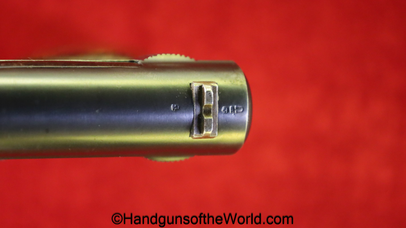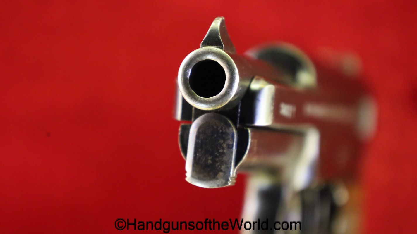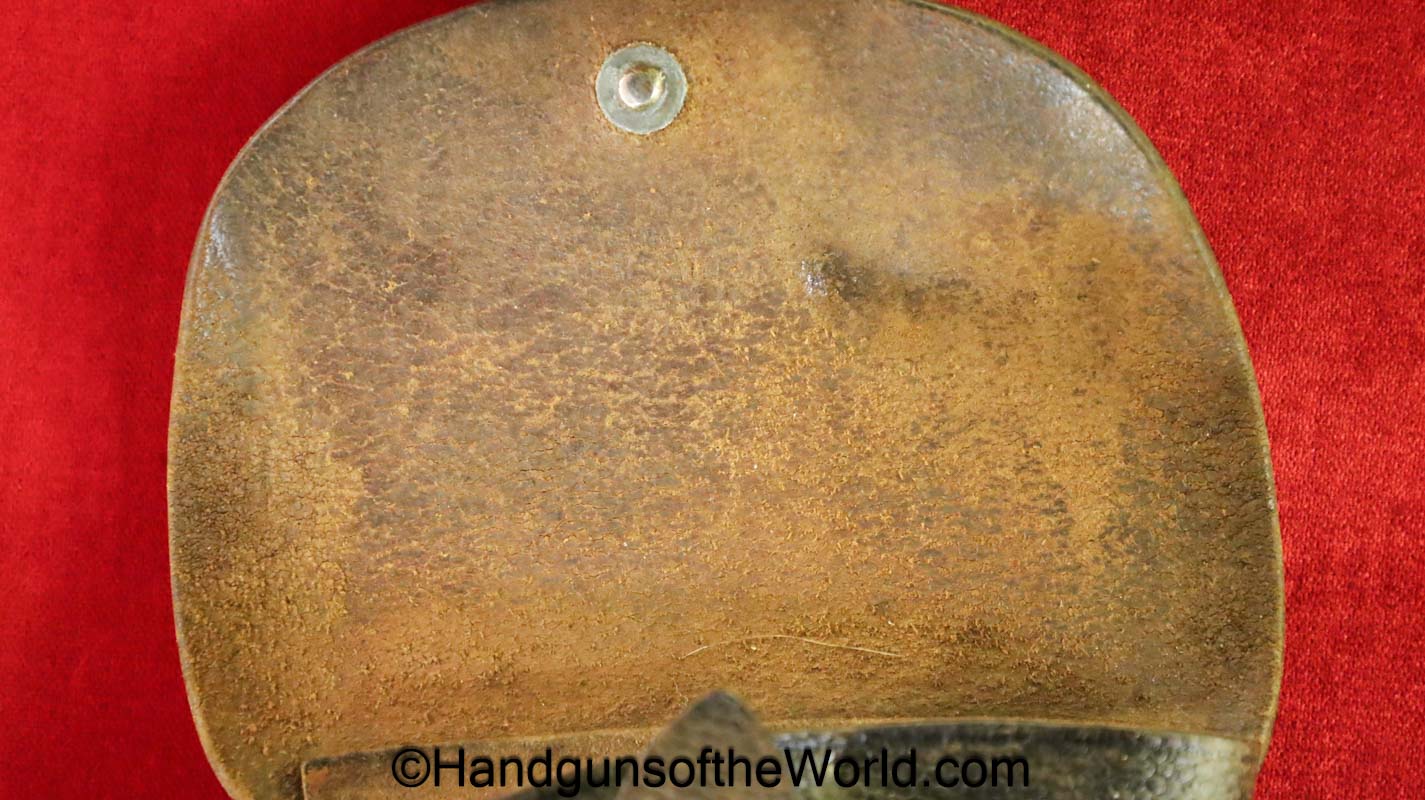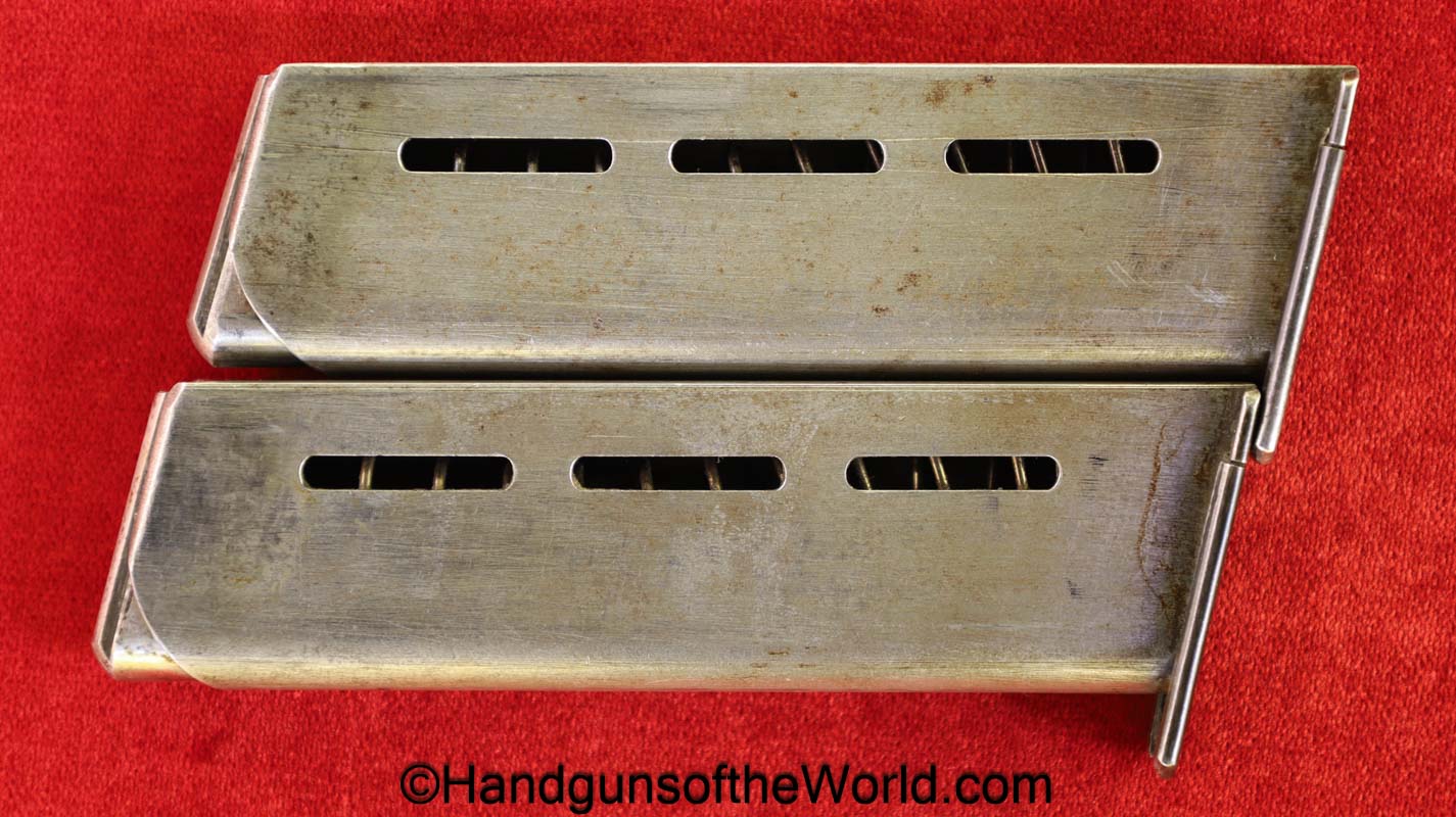 Mauser 1914, 7.65mm. This 1st issue is German WWI Imperial proofed on top of the slide in front of the rear sight. This has correct checkered walnut grips in VG-VG+. This has all matching numbers with about 95% blue and a VG+ bore. This full rig includes an original, General purpose brown leather pebble grain holster, maker marked and dated 1915 and a spare magazine.