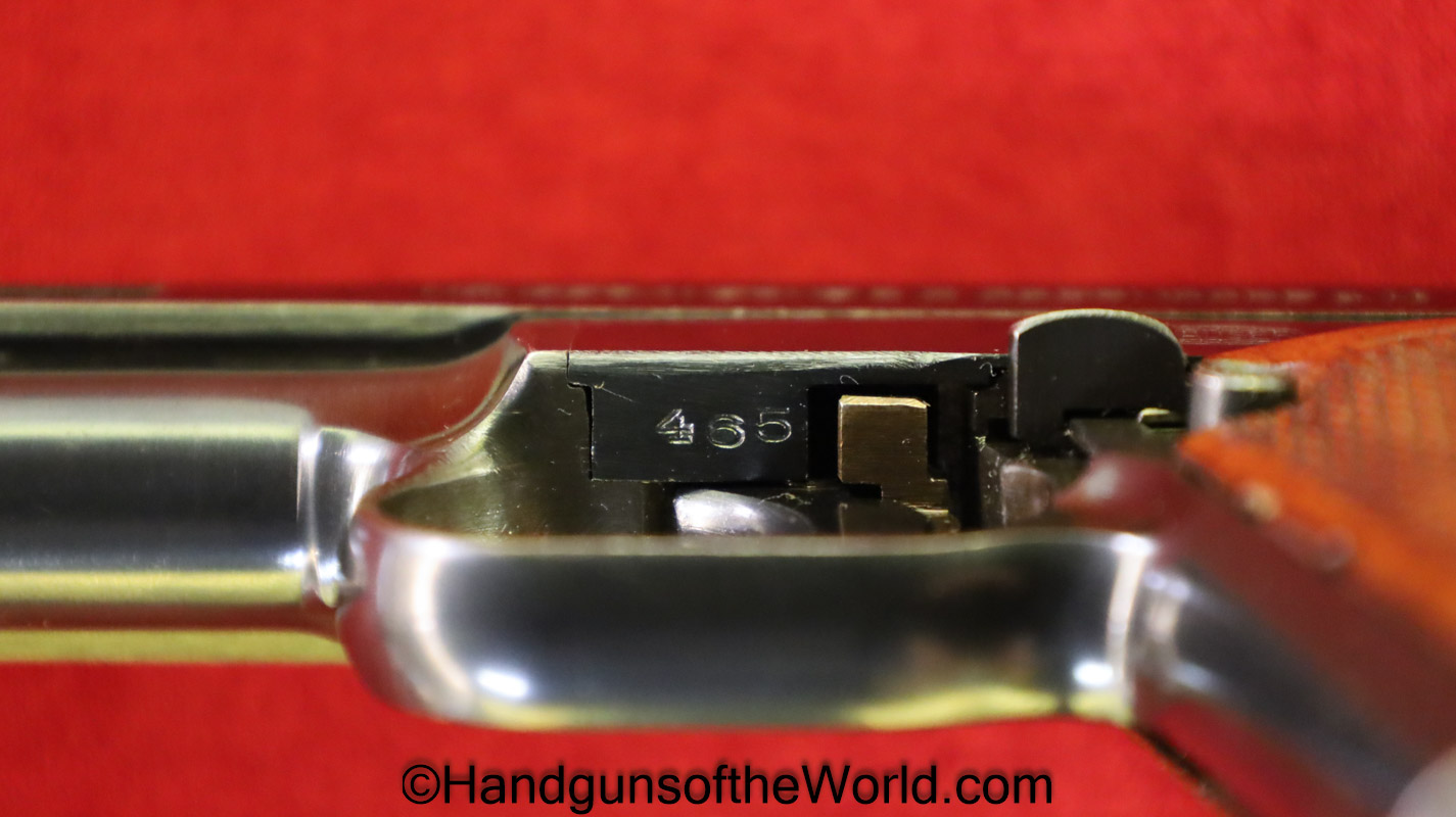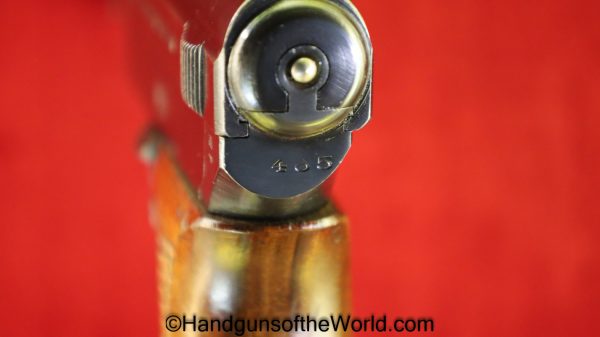 Mauser 1934, 7.65mm. This is German WWII eagle 655 proofed on the left rear tang. This has correct checkered walnut grips. This has all matching numbers, 99% blue and the bore is excellent.
