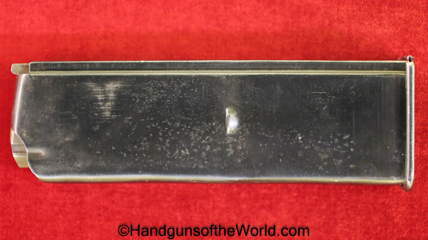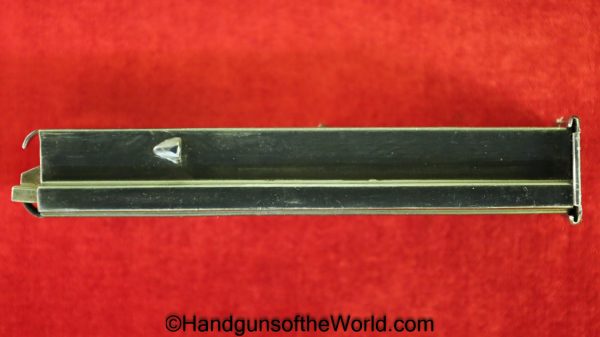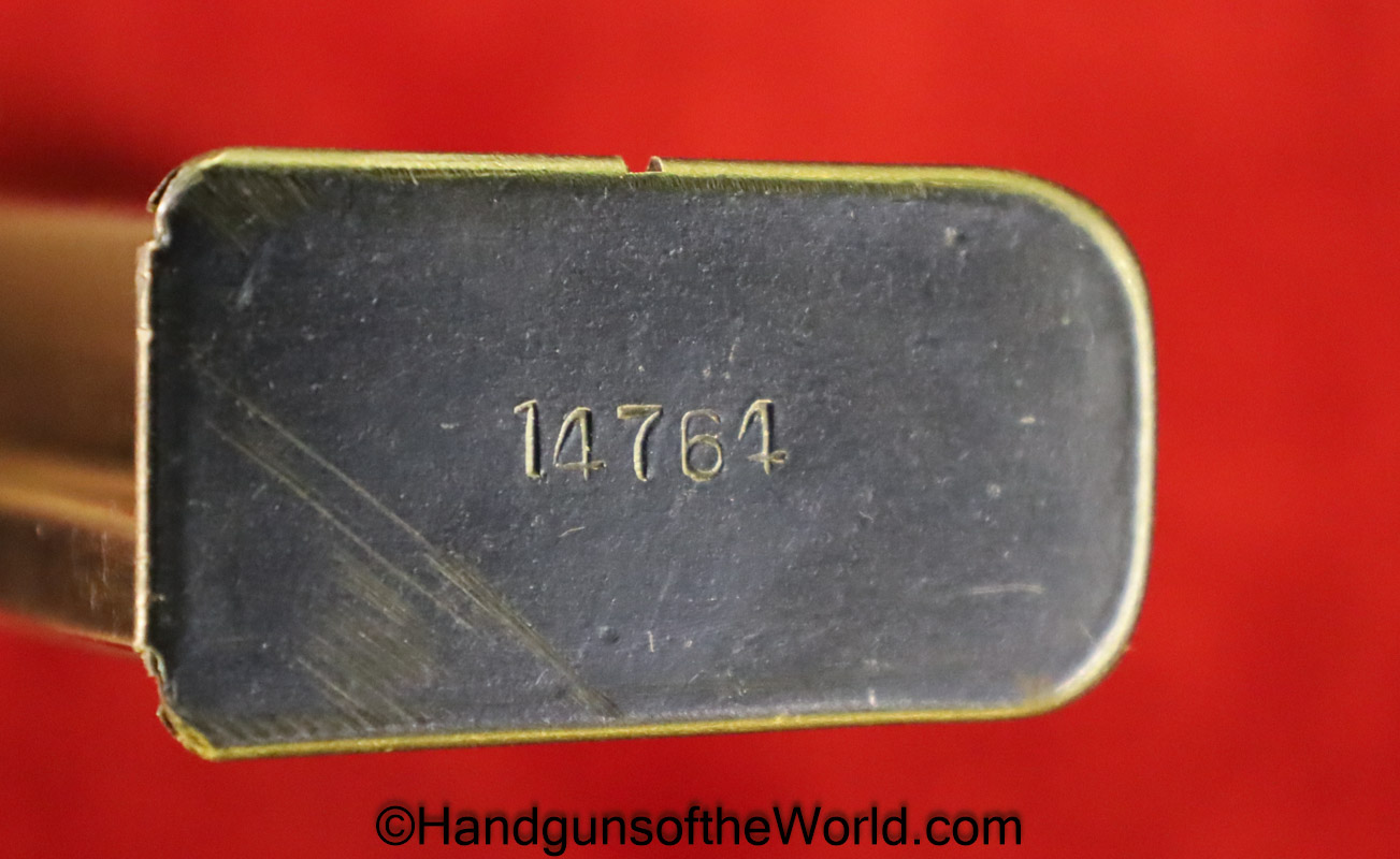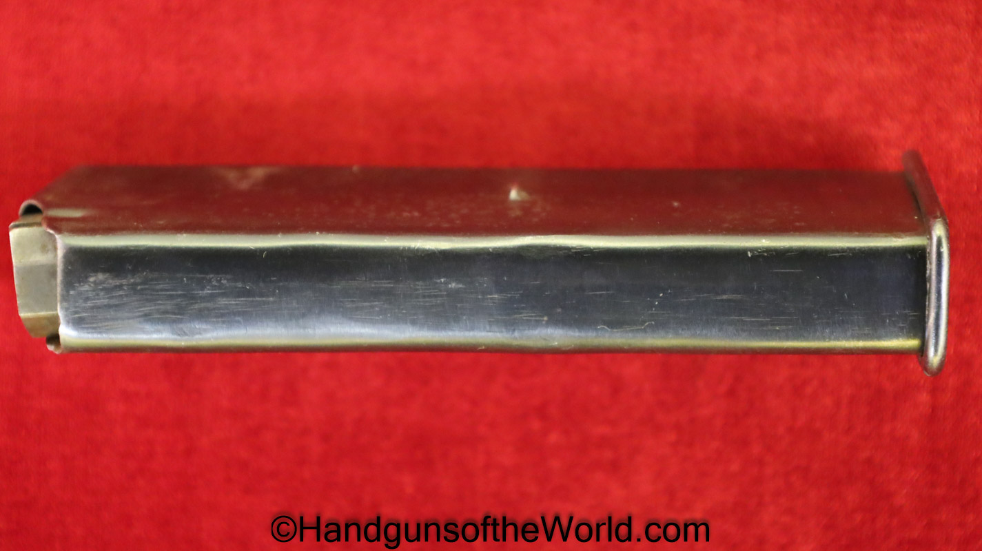Original Mauser 712 Schnellfeuer 9mm Pistol Magazine. 20 shot with #14761 on the base. This has been converted from a 7.63mm magazine to 9mm. About 95% refinish blue.