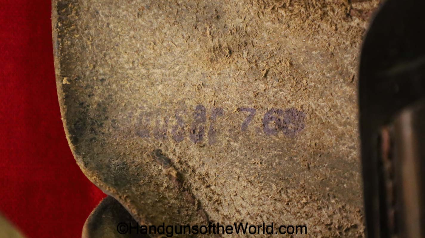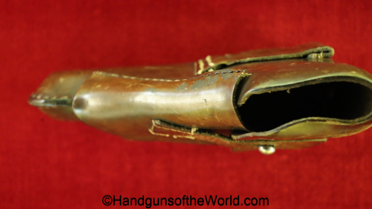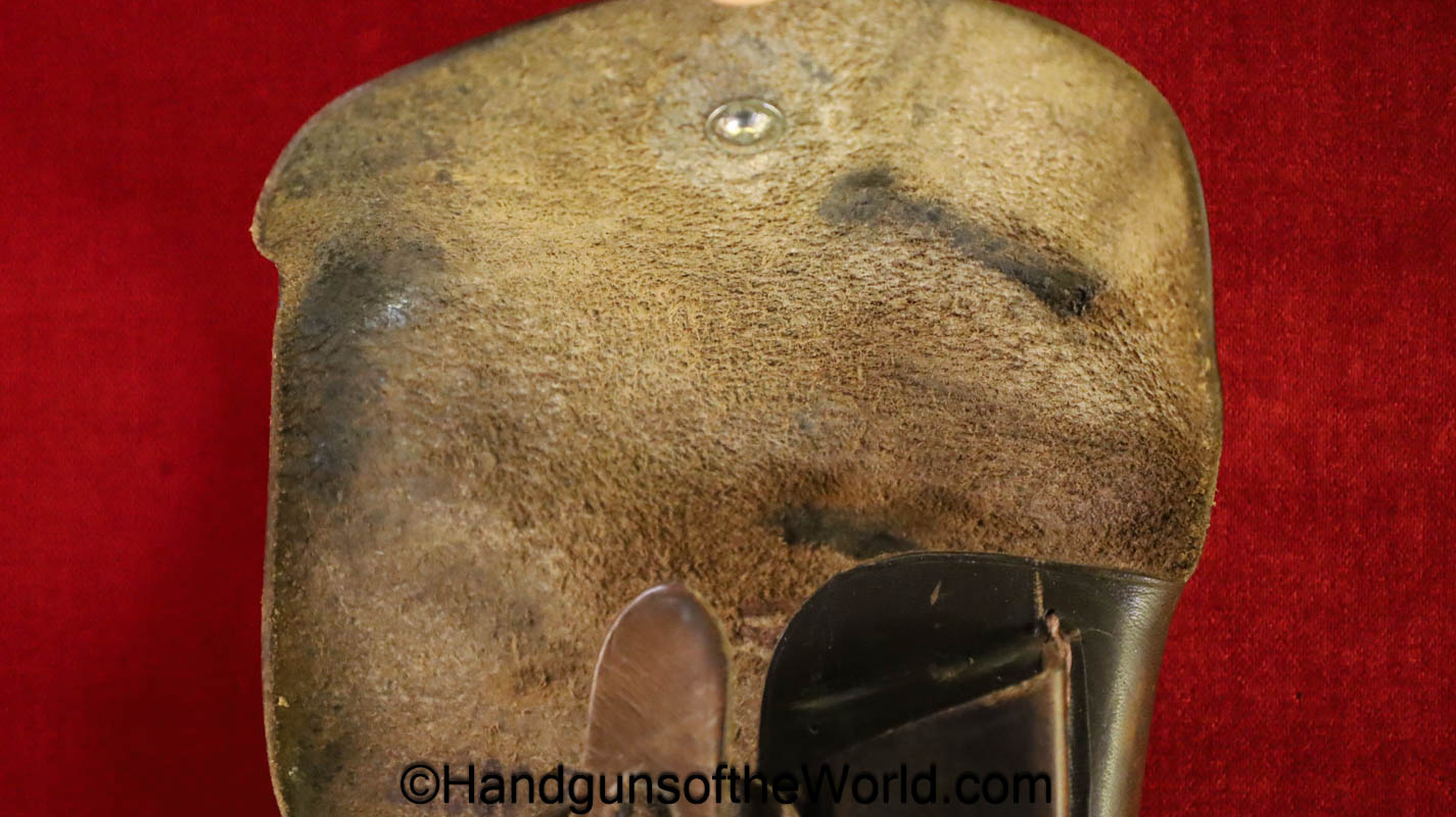Original Mauser HSc Pistol Holster. This is a brown leather breakaway marked with the Akah Oakleaf-9 logo & German WaA938 under the tab. This is also ink stamped Mauser 7.65 inside. Overall VG.
