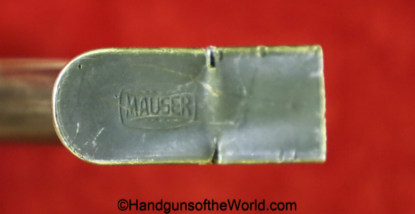 Original Mauser WTP II, 6.35mm Pistol Magazine. Marked on the rounded toe base with the Mauser banner. About 75% blue remains.