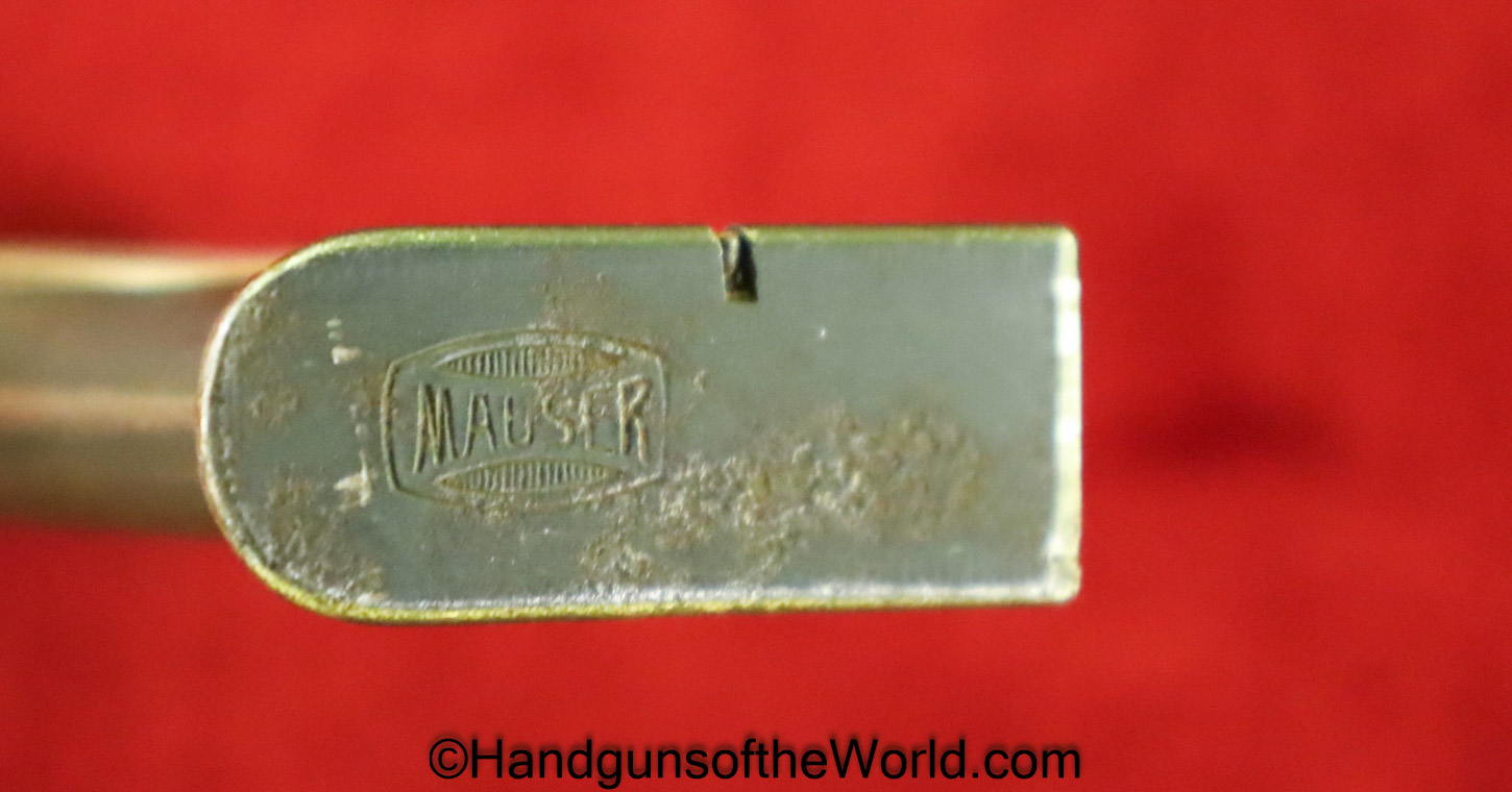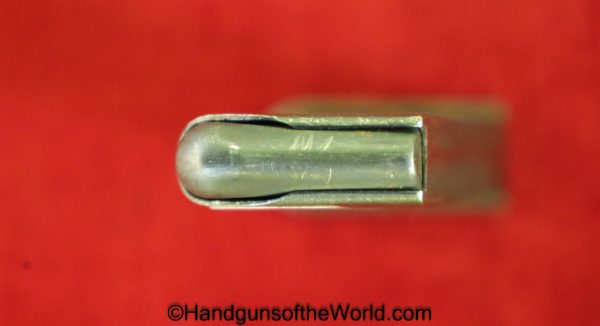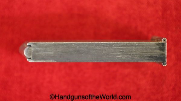 Original Mauser WTPI, 6.35mm Pistol Magazine. Marked with the Mauser Banner on the rounded base. About 90% blue remains.