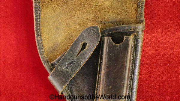 Period Menz Model II Pistol Holster. This is brown leather marked Geco under the repaired tab. Overall VG.