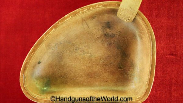 Original Japanese Nambu Type 26 revolver Holster. Brown leather clamshell with Japanese characters inside the lid. Overall VG+.