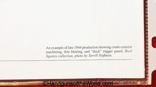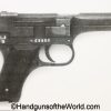 Nambu Type 94, 19.8 date (August 1944), 8mm. This has the late war slab Mahogany grips, and a thick trigger. This is Japanese WWII proofed. This has all matching numbers to include the magazine. The blue rates about 98% and the bore is excellent. This exact pistol is pictured in Japanese Military Cartridge Handguns 1893-1945 Book by Derby & Brown Page 208.