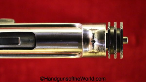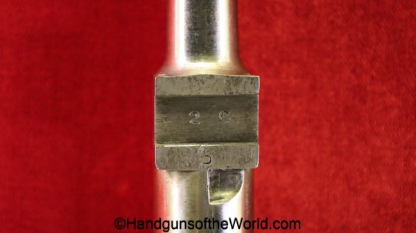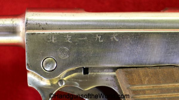 North China Type 19, 8mm, Nambu Type 14 Copy. This is a 1st variation with no external frame serial number. This has all matching numbers but for the correct magazine. This has about 80% of an old Nickel finish and the bore is excellent. Only about 20 known of the 100 or so built.