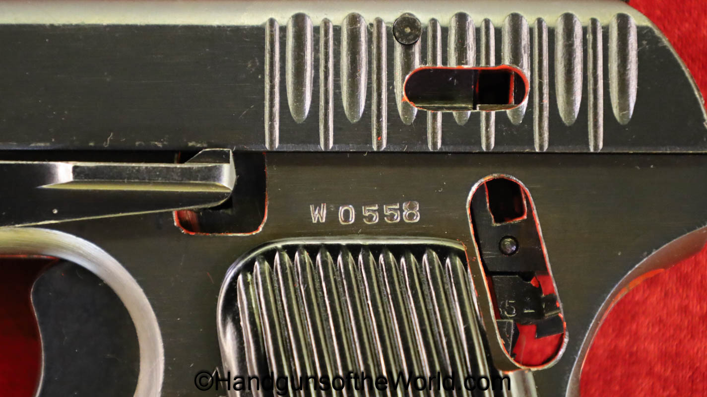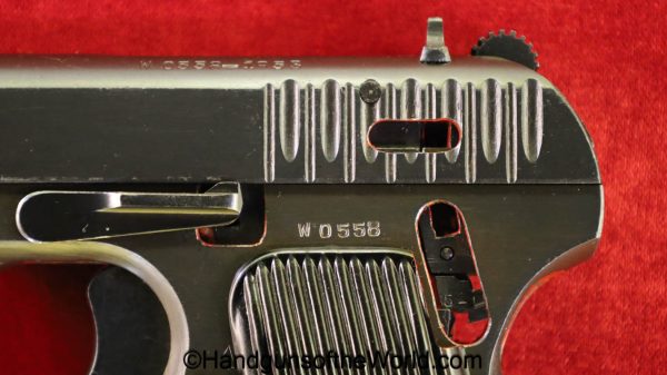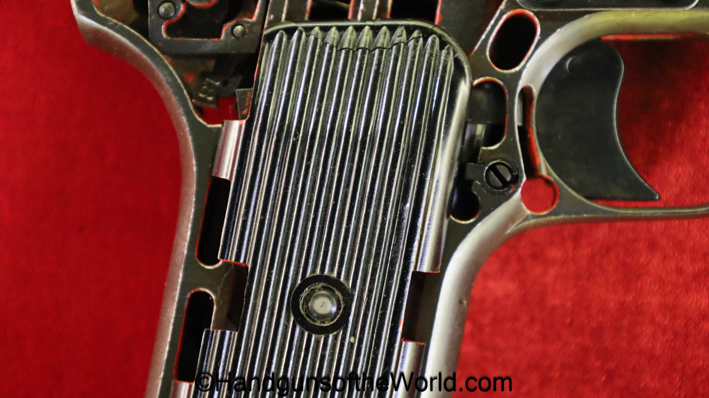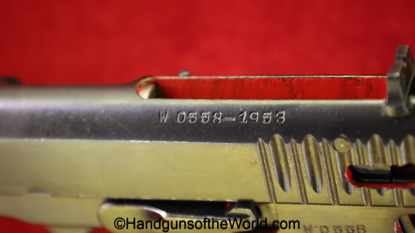 Polish WZ-33 Tokarev, 7.62mm. Dated 1953 this is an armorer’s cutaway with over 50, red highlighted cut outs. This has lined, no logo black Bakelite grips-the right shows a crack. This is mostly matching with a tightly fitting magazine.