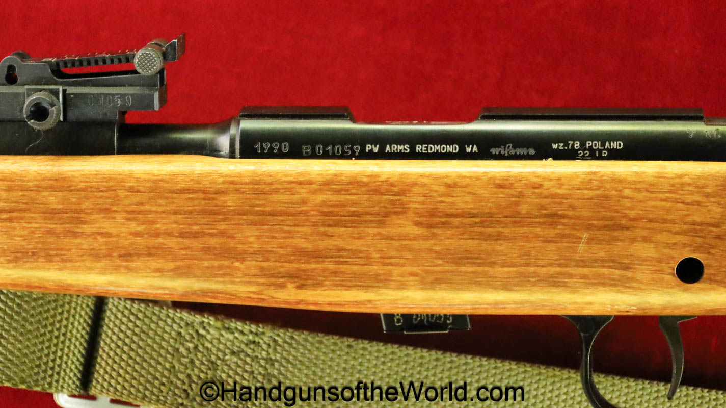 Polish WZ-78 .22lr Trainer. Dated 1970, this has a nice pistol grip checkered wooden stock. This has all matching numbers to include the magazine and is import marked. The blue rates about 99% and the bore is excellent. A period sling is included.
