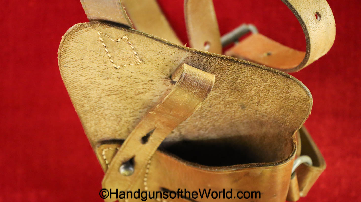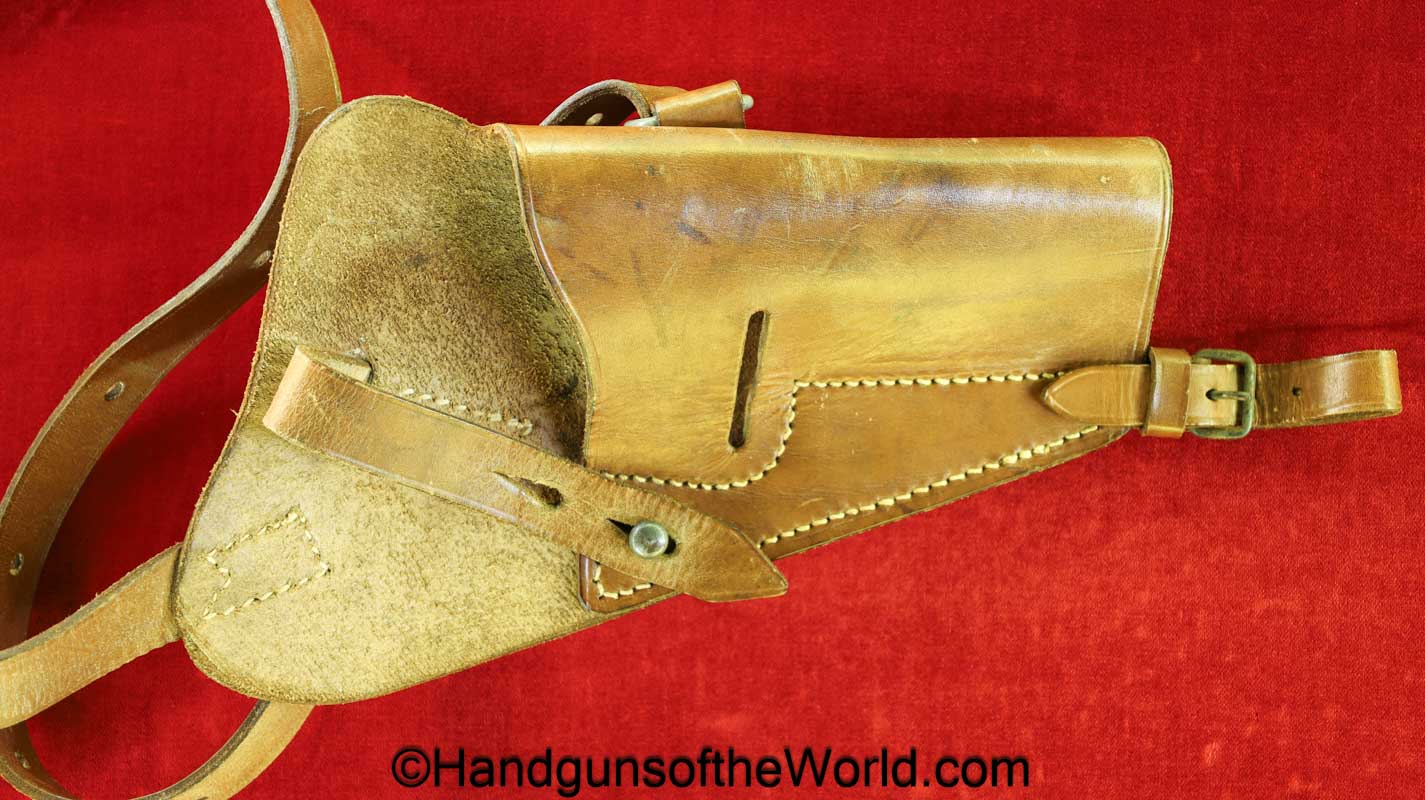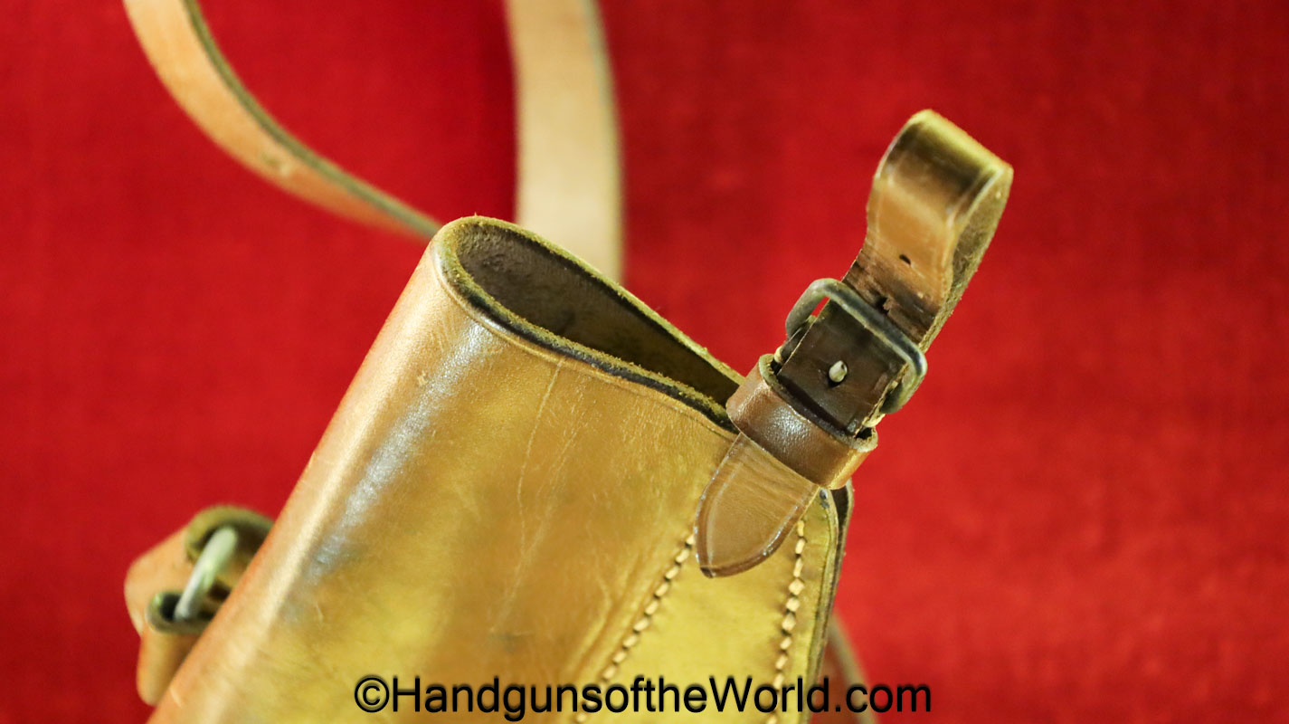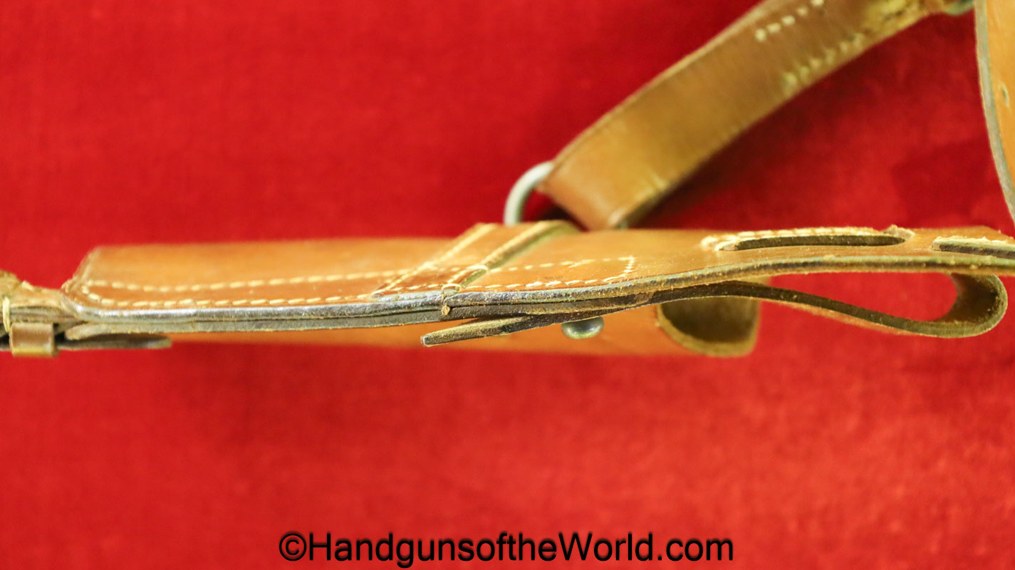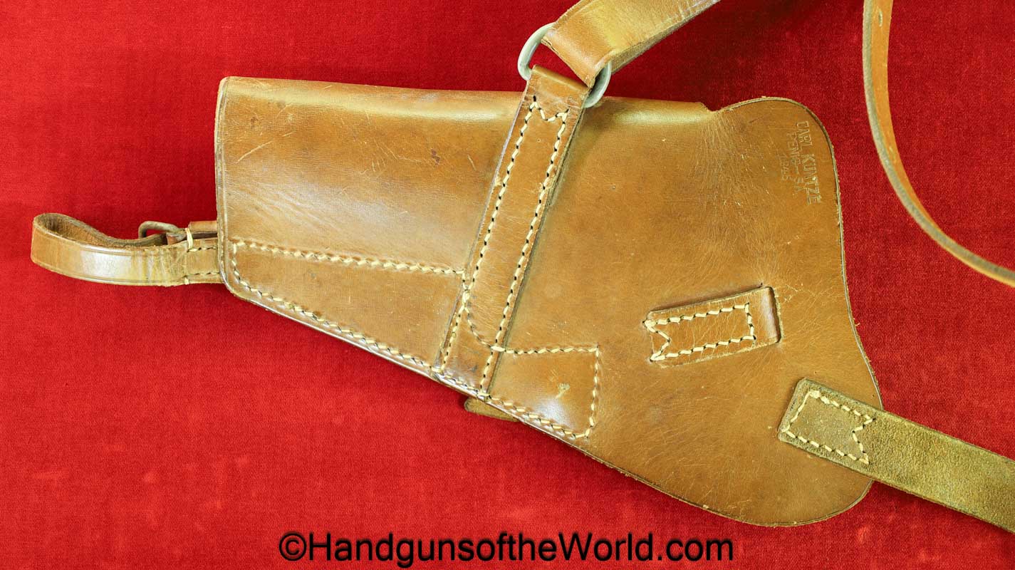 Original Radom VIS P-35 Shoulder Holster. Tan leather, maker marked Carl Kuntze-Penig-SA-1945 on the back. Overall Excellent. This will fit other large frame pistols to include the P.08 and BHP.