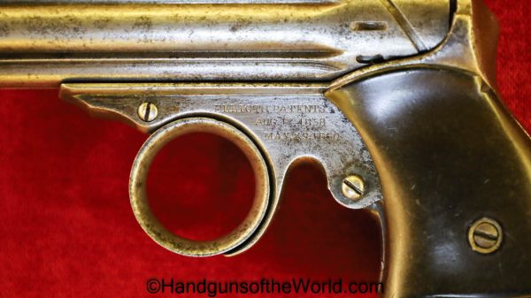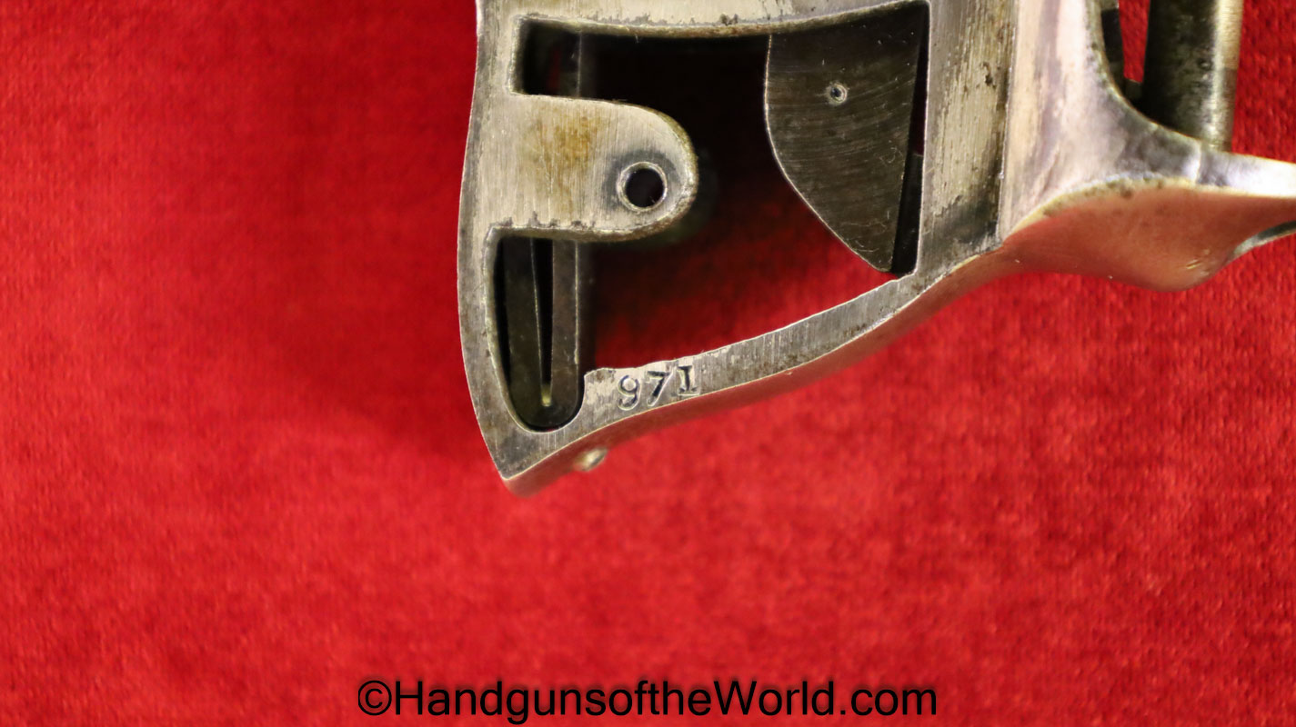 Remington Zig-Zag Revolver, .22 caliber. This has the standard Gutta Percha grips. This is 1 of about 1000 built, and is a later numbered pistol. This has a patina overall, and G-VG bores. This Antique works properly.