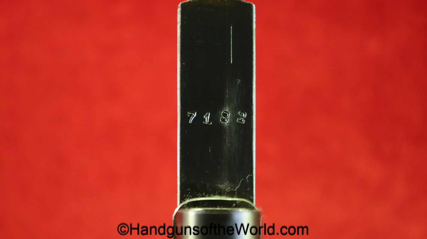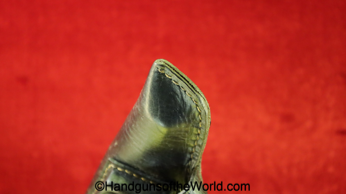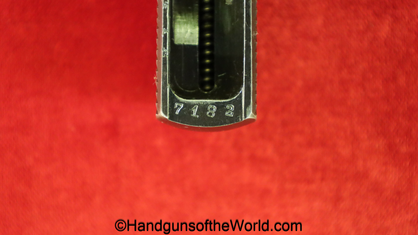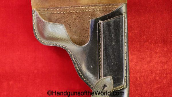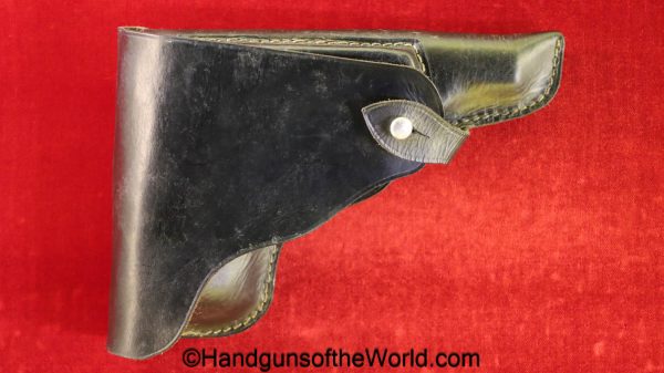 Rheinmetall Pocket, 7.65mm. This has the correct smooth walnut grips, and all matching numbers. This has about 90% thinning blue and the bore is excellent. This full rig includes a custom-made black leather holster and a spare original magazine.