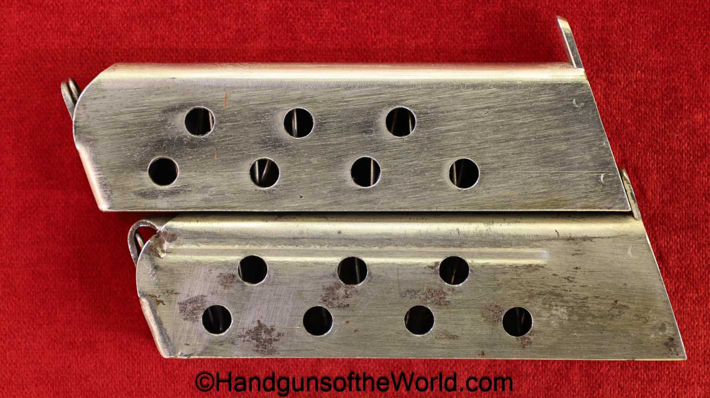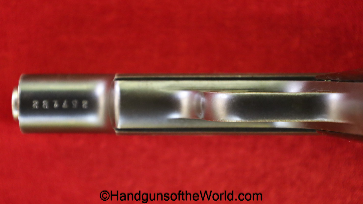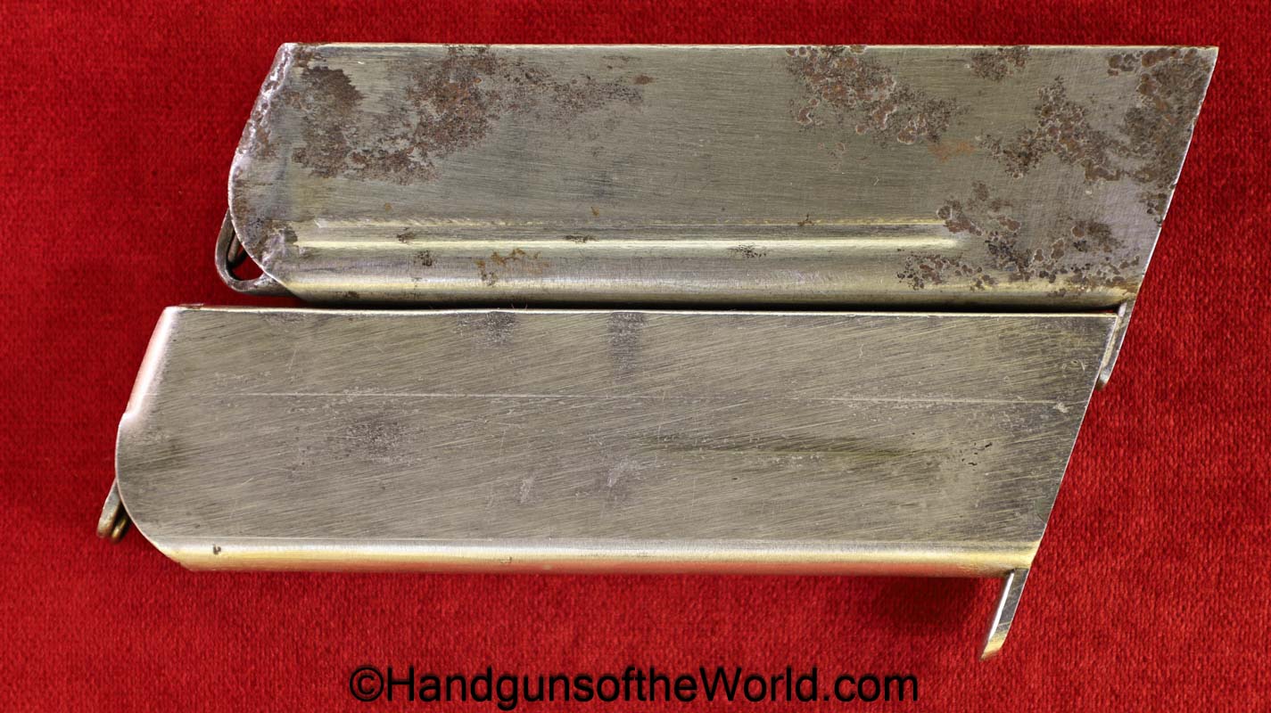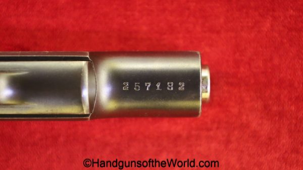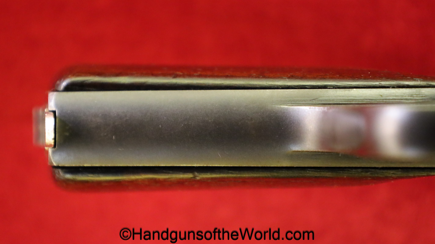 Rheinmetall Pocket, 7.65mm. This has the correct smooth walnut grips, and all matching numbers. This has about 90% thinning blue and the bore is excellent. This full rig includes a custom-made black leather holster and a spare original magazine.
