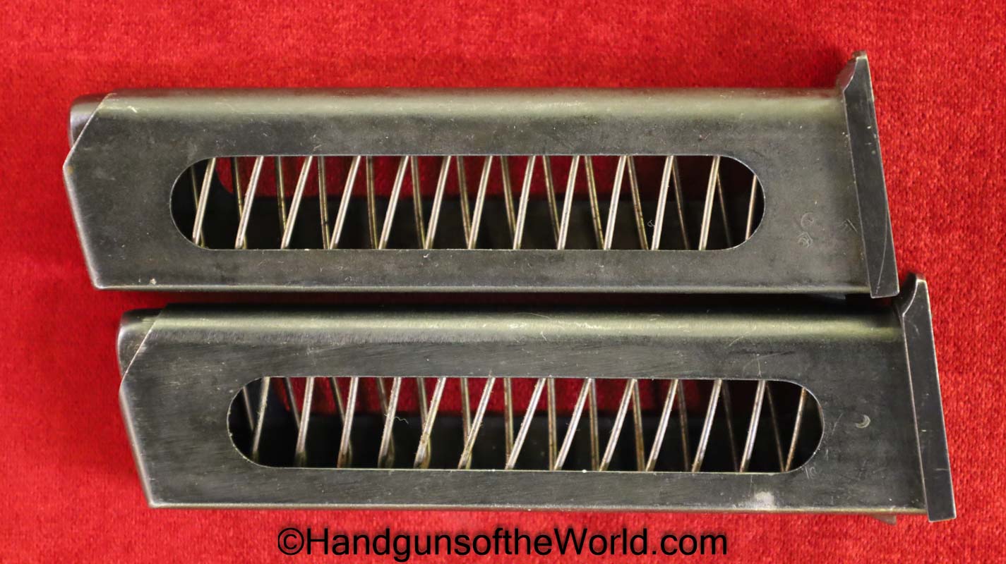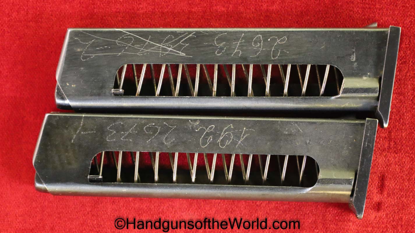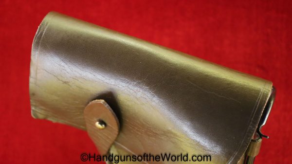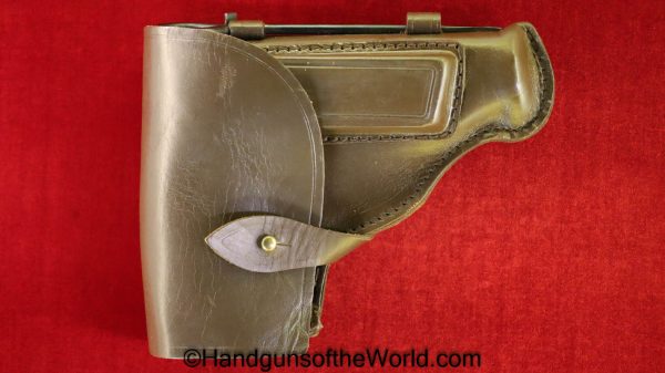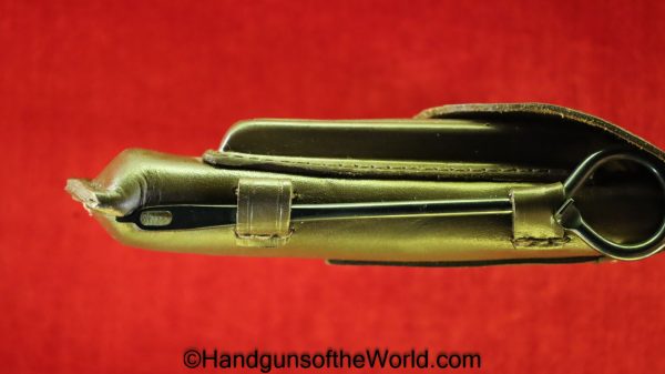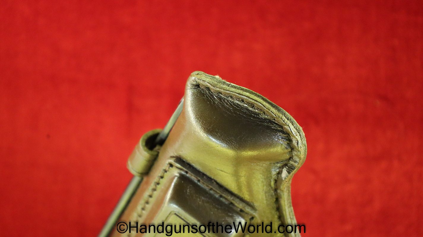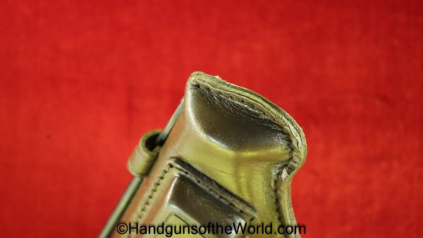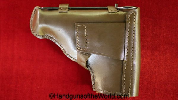 Russian Makarov, 9mm Mak. This is Russian military proofed and dated 1961. This has the proper, single star red Bakelite grips. This is import marked on the right side of the frame. This has 2 etched, numbered magazines. the blue rates about 99% and the bore is excellent. This full rig includes the proper brown leather holster and cleaning rod.