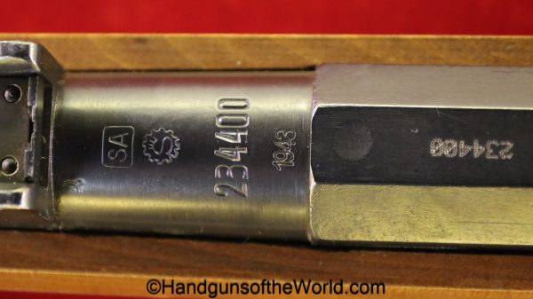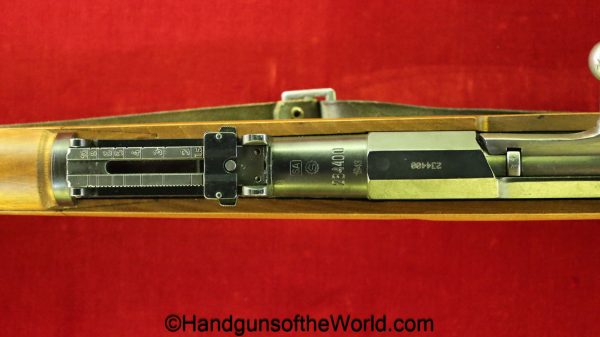 Sako Finnish M-39, 7.62mm. This is chamber dated 1943, and has the Finnish SA proof, along with the Sako-S logo. This is import marked on the barrel. This has a nice wooden stock and comes with a sling and cleaning rod.