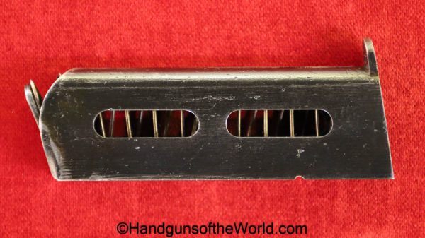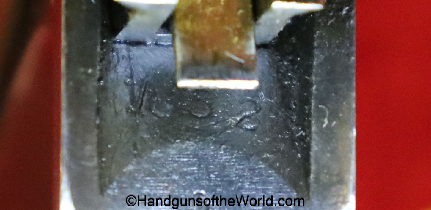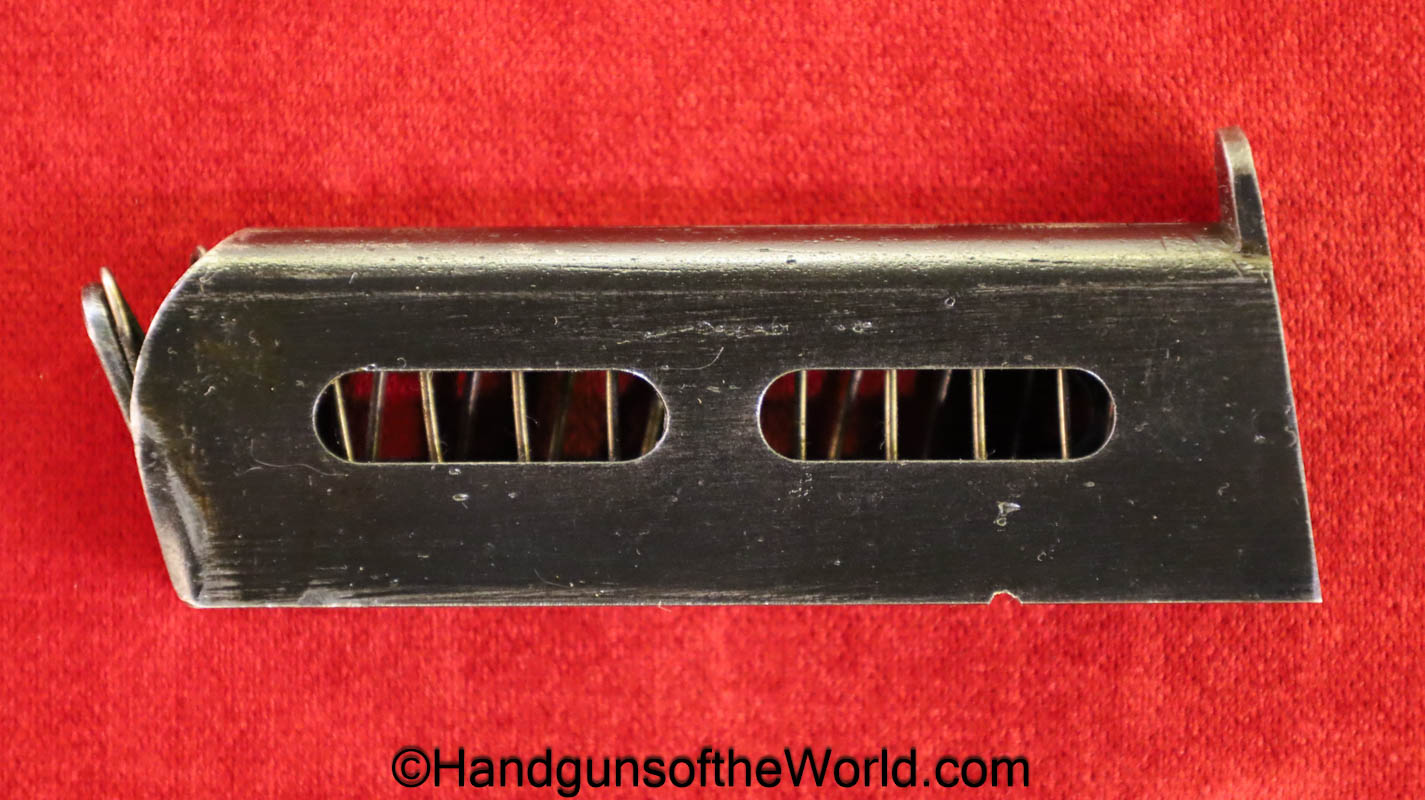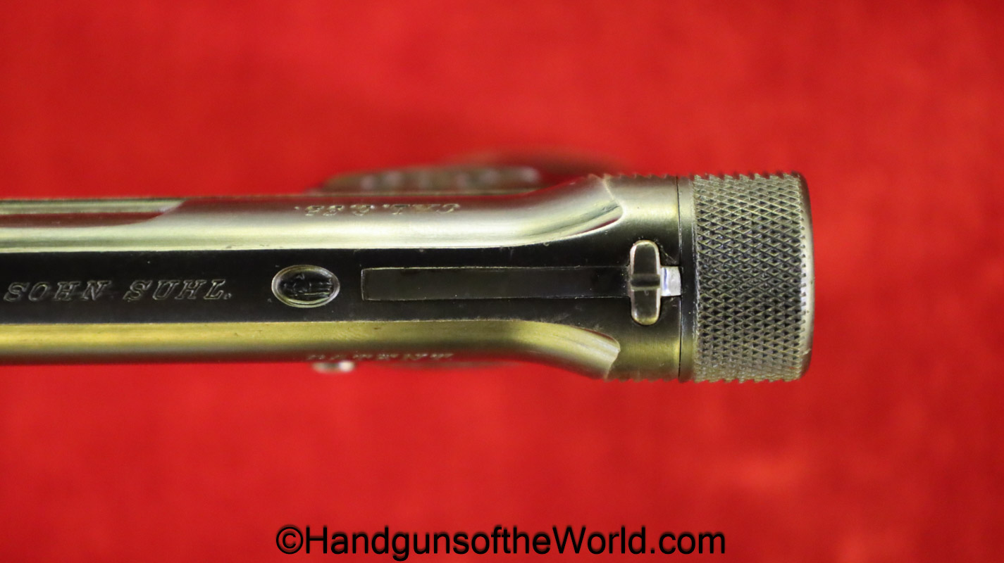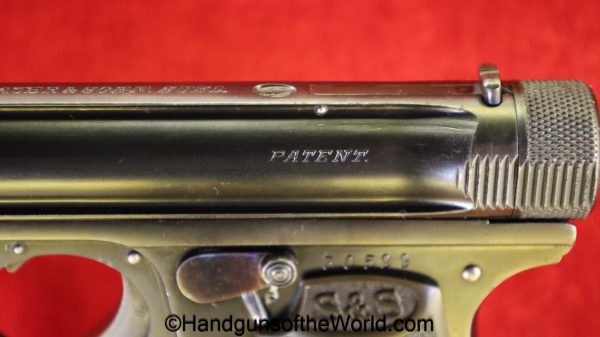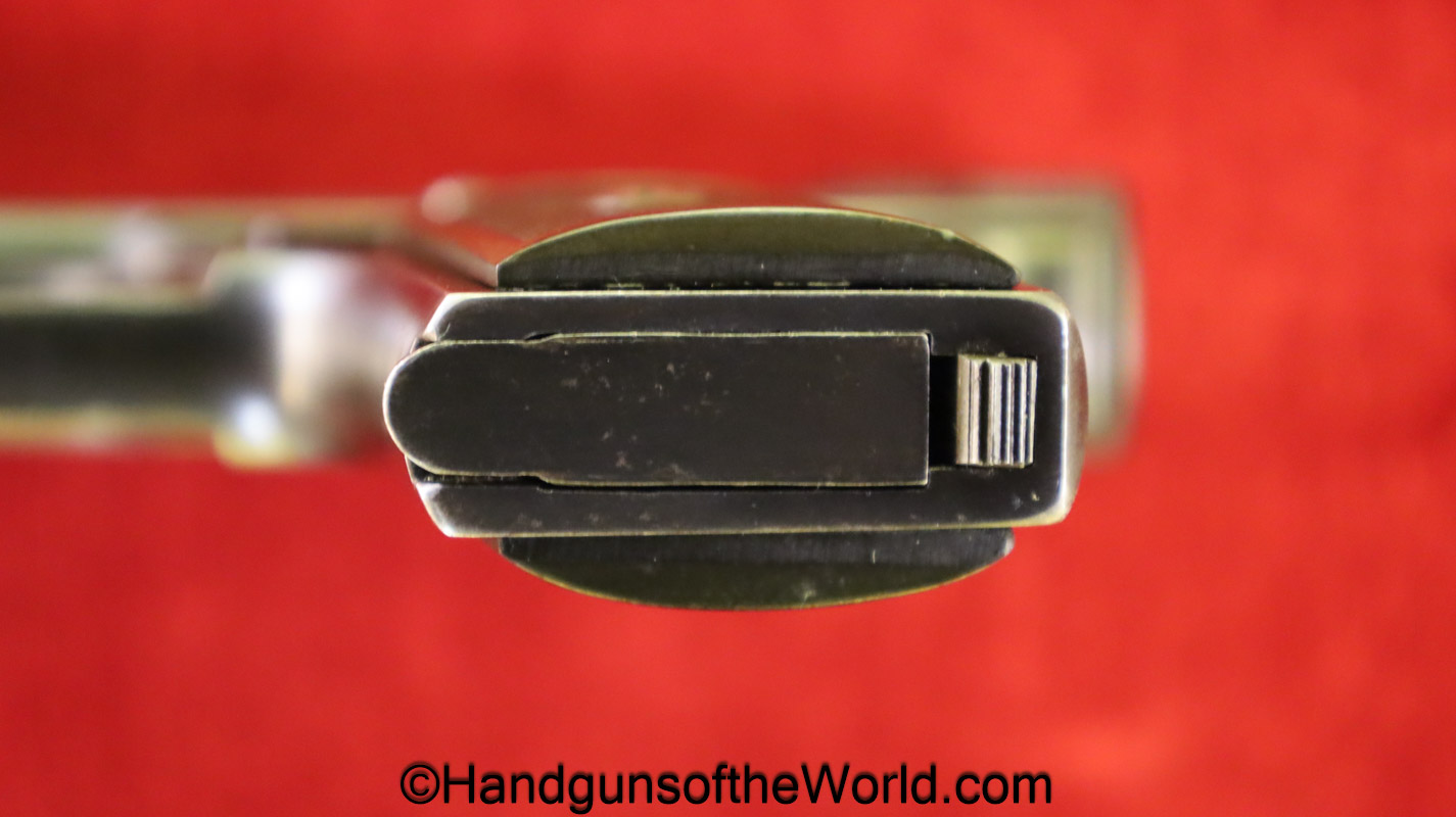 Sauer 1913, 6.35mm. This has the Hard Rubber grips with S&S Logo. This is an early variation, and is not marked Germany. The blue rates about 97% and the bore is excellent.