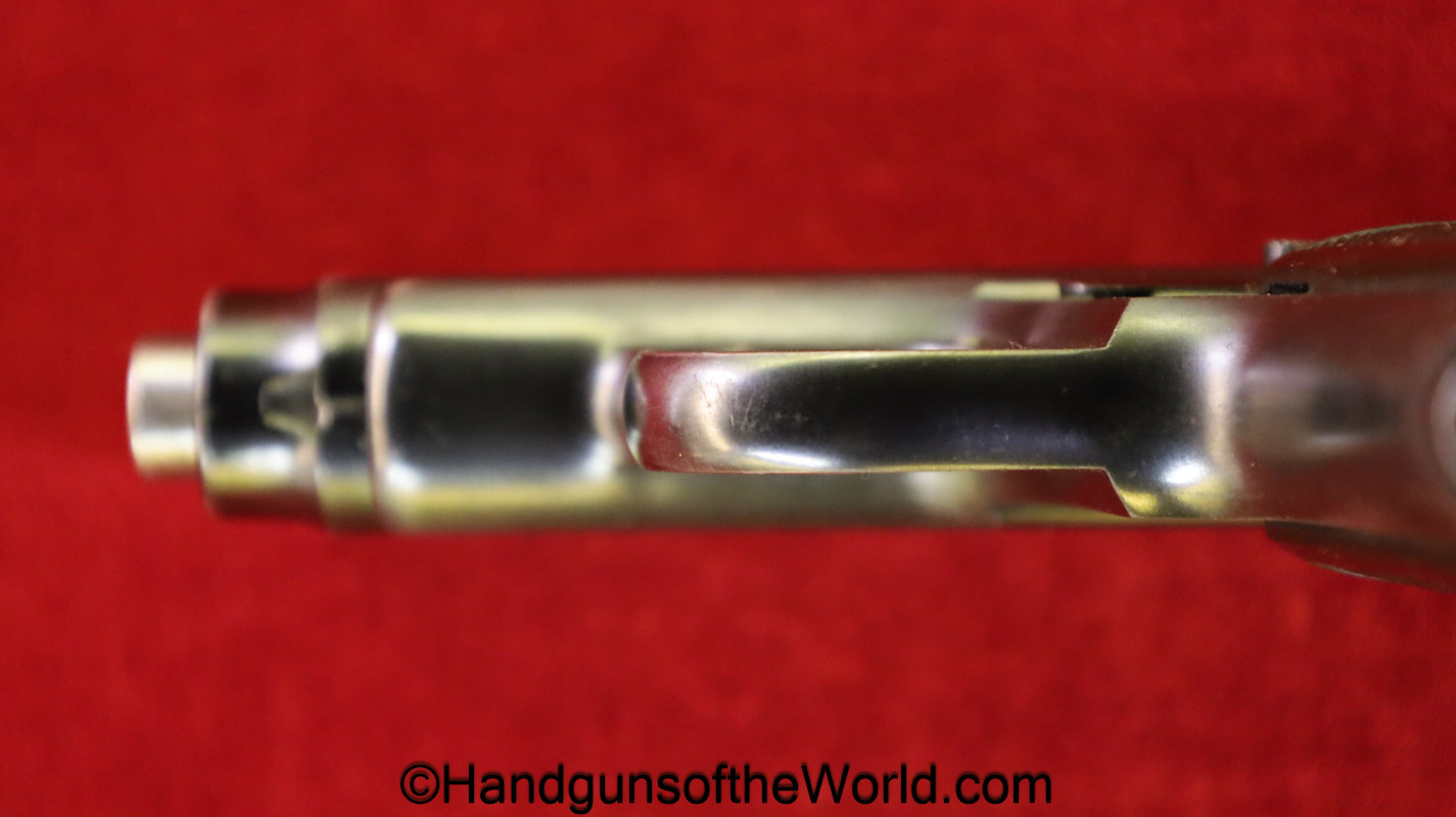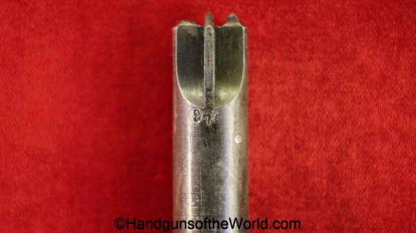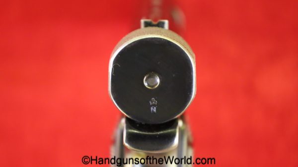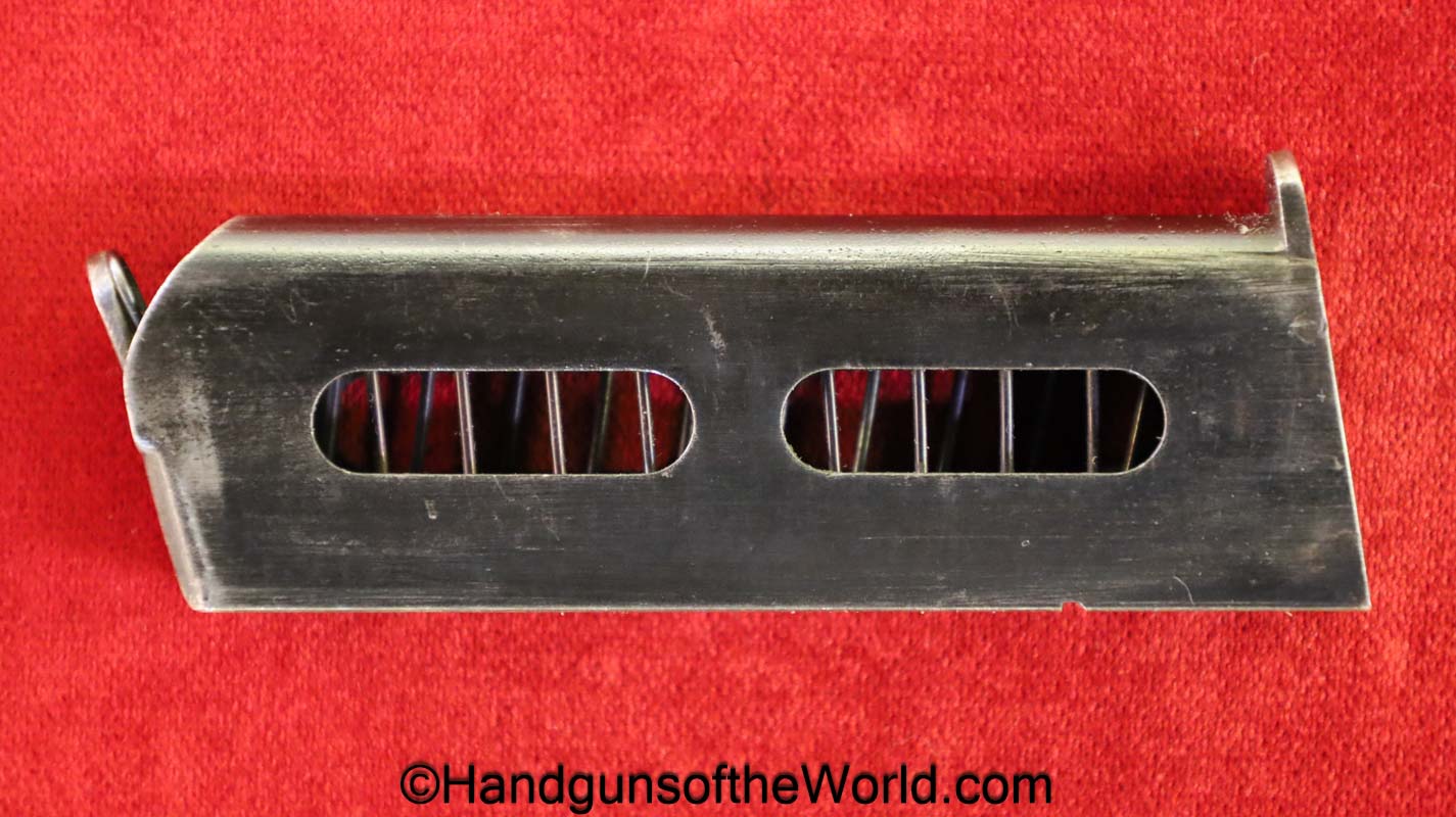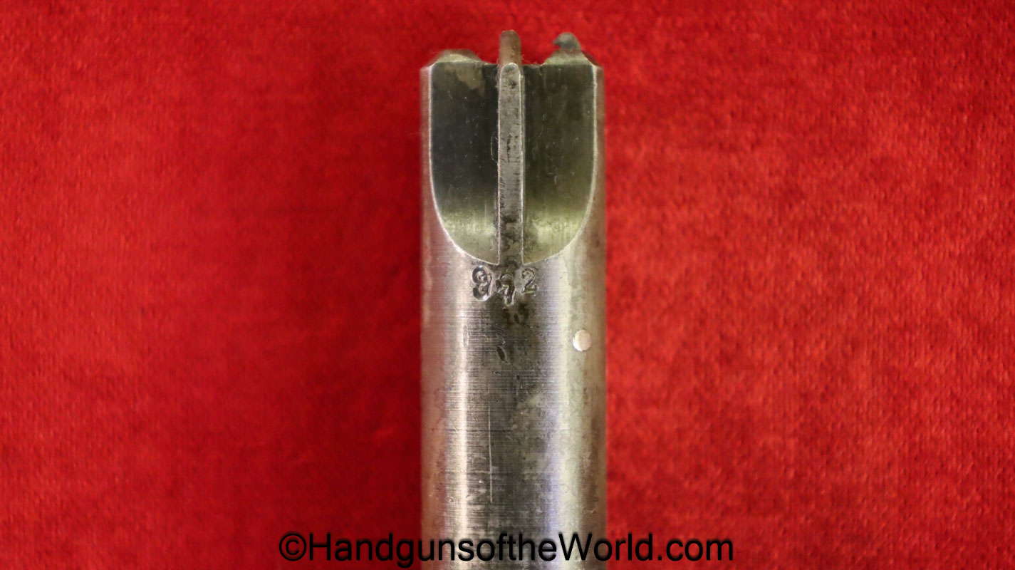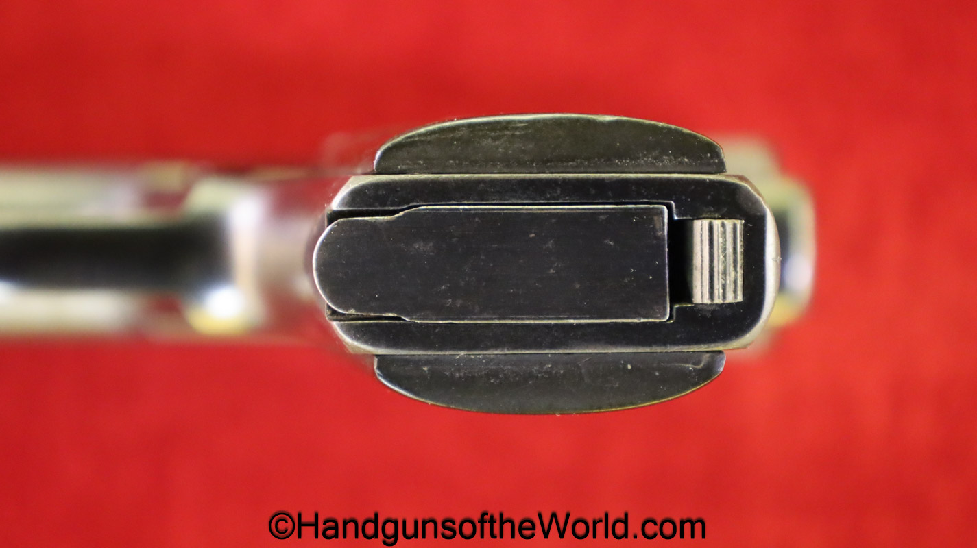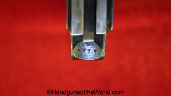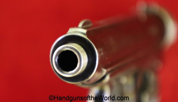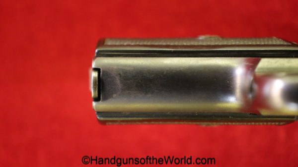Sauer 1913, 7.65mm. This is German WWI Imperial proofed on the left side of the frame. This has the correct S&S logo black Bakelite grips. The blue rates about 98% and the bore is Mint.