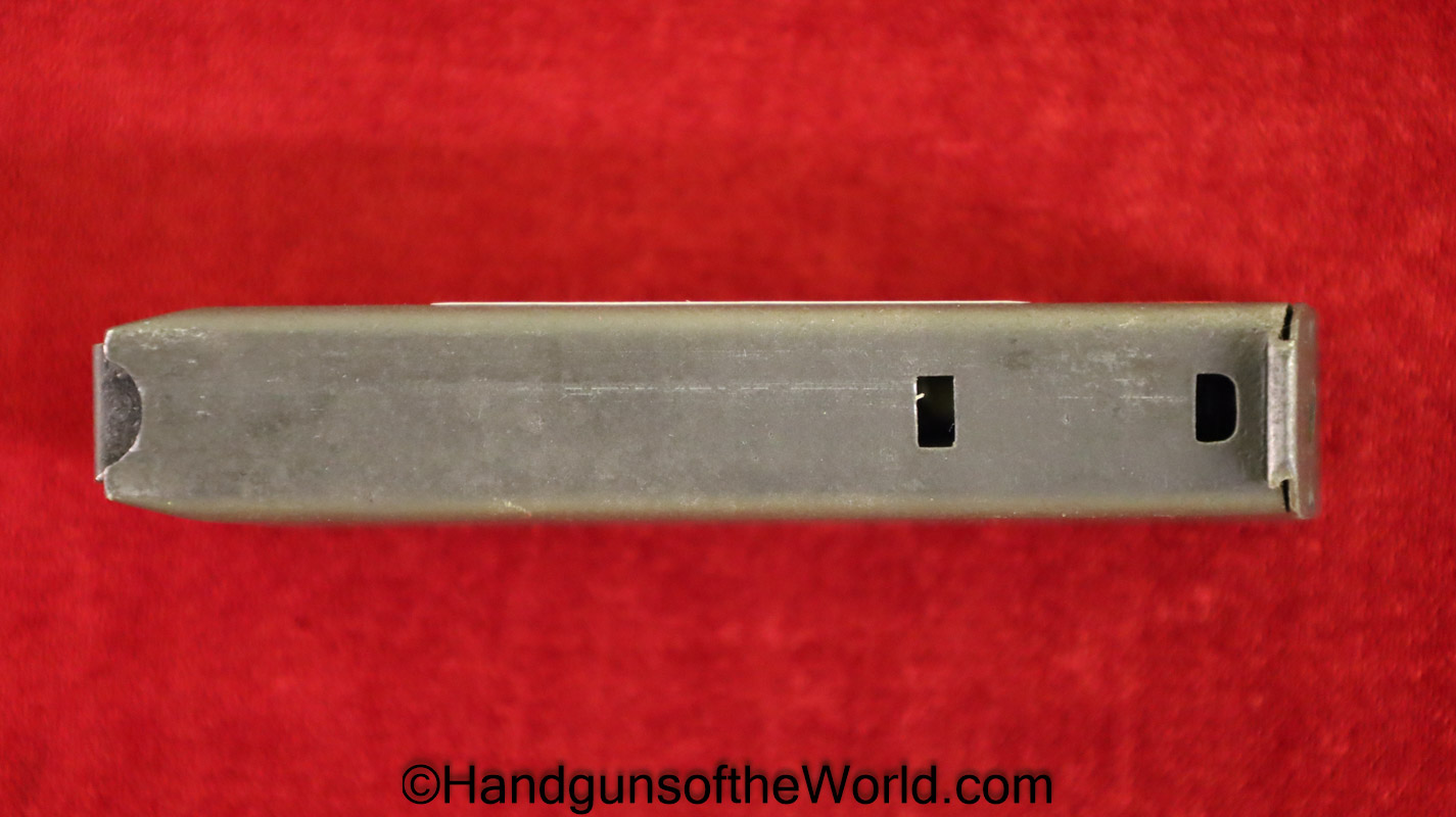 Original Savage 1907 or 1917, 32 caliber Pistol Magazine. 2 locking slots on the front spine. About 99% of an old refinish remain.