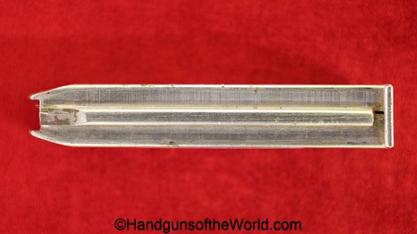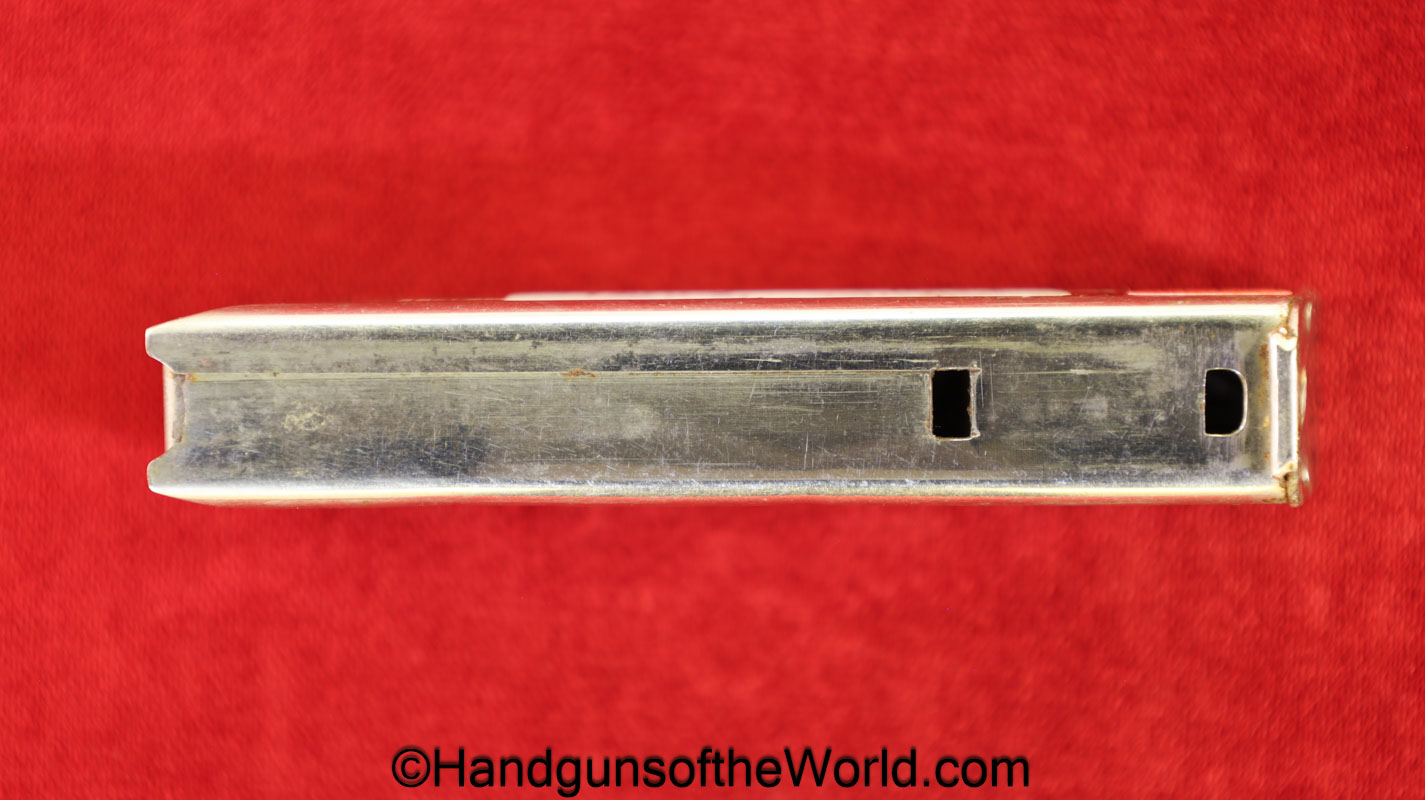 Original Savage 1907, .32 caliber Pistol Magazine. About 95% of the factory nickel remains.