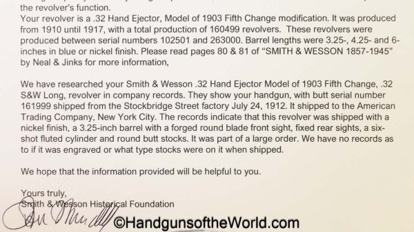 Smith & Wesson Model 1903 Hand Ejector, .32 Long, Engraved with Case & Letter