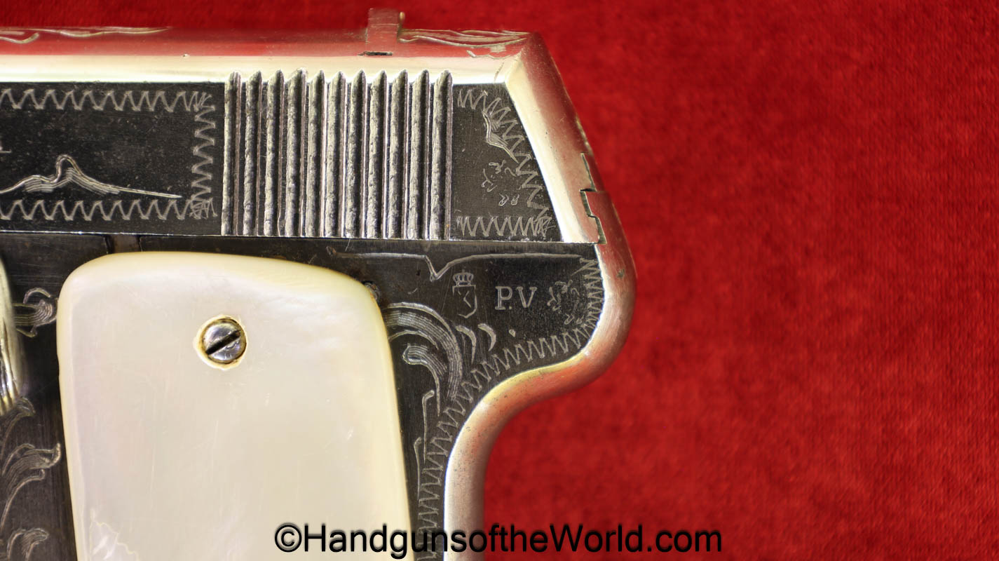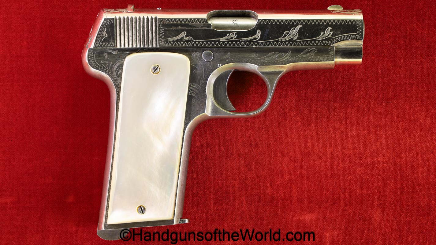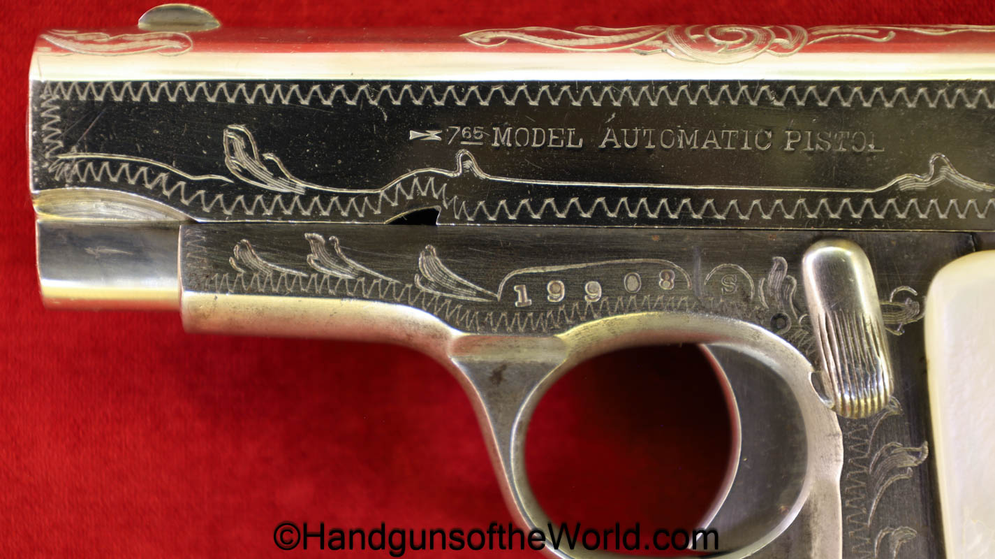 Spanish Ruby, 7.65mm, Factory Engraved, Nickel/Pearl