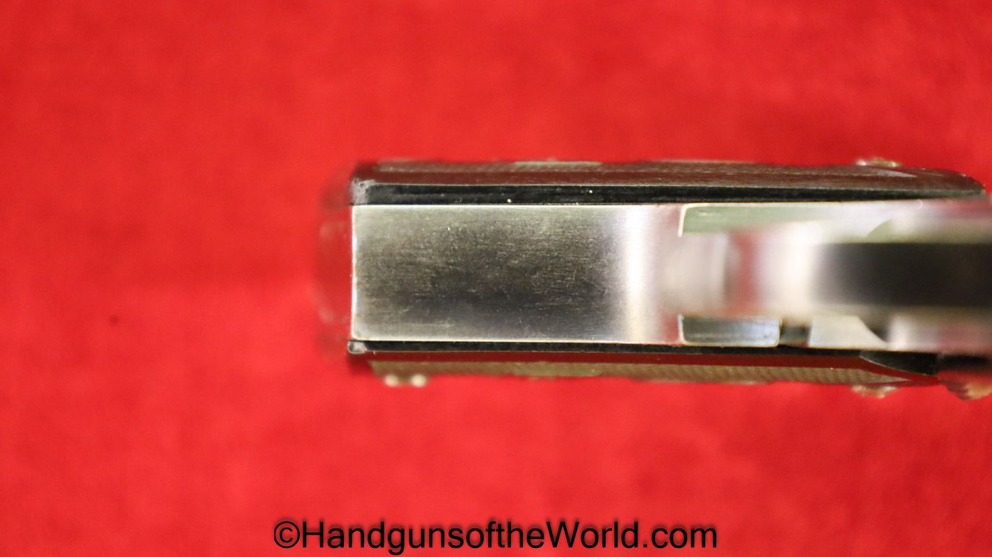 Steyr 1909, 6.35mm. This has the black Bakelite grips. This has no serial number and is not Austrian proofed. Overall about 90% blue and the bore is excellent.