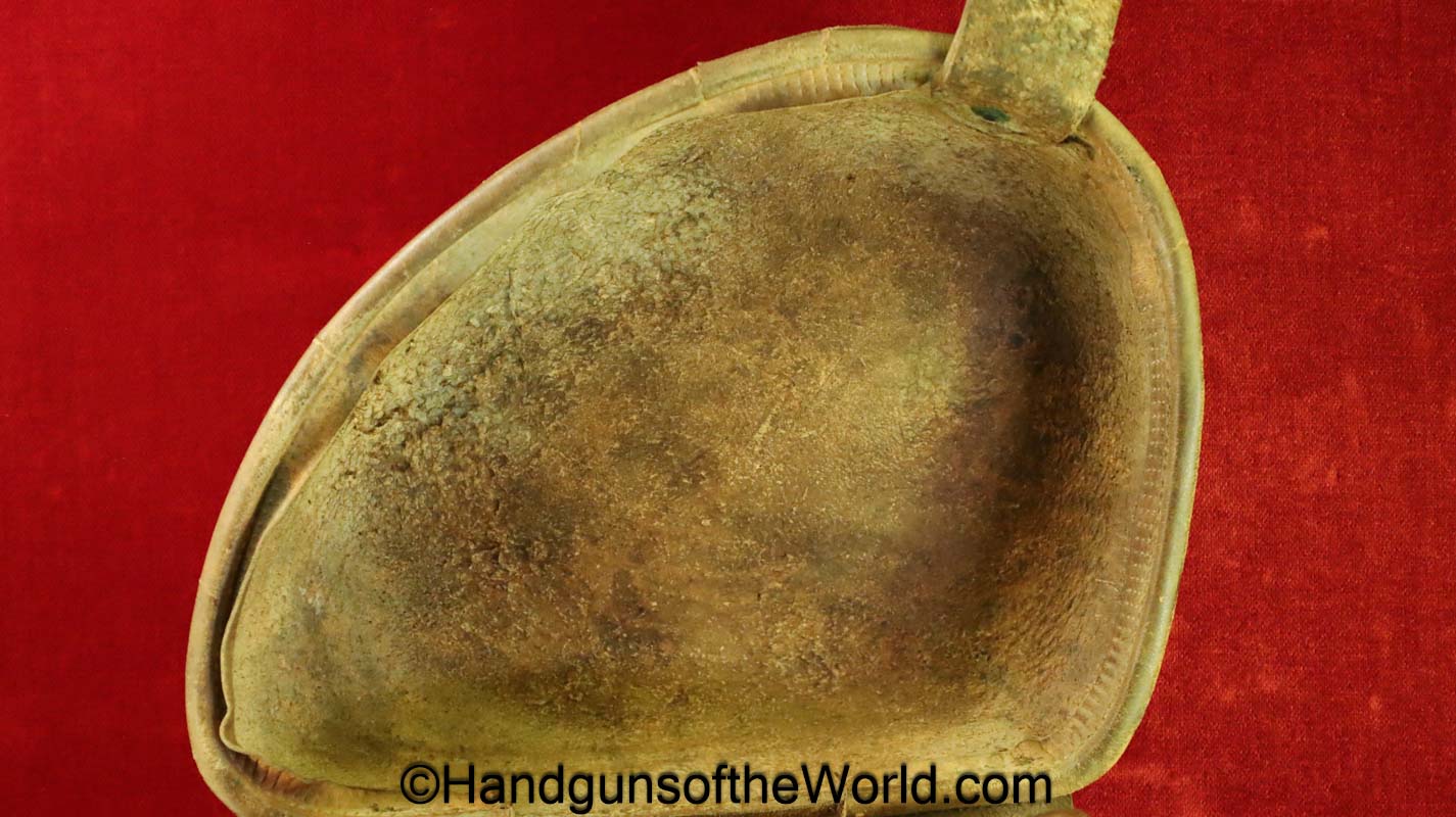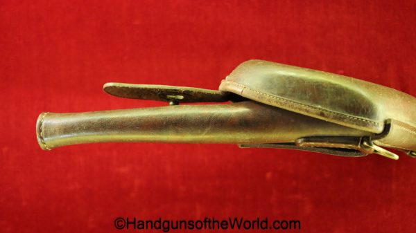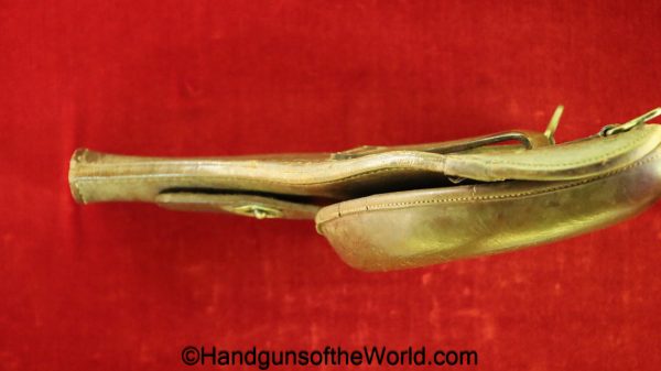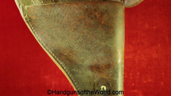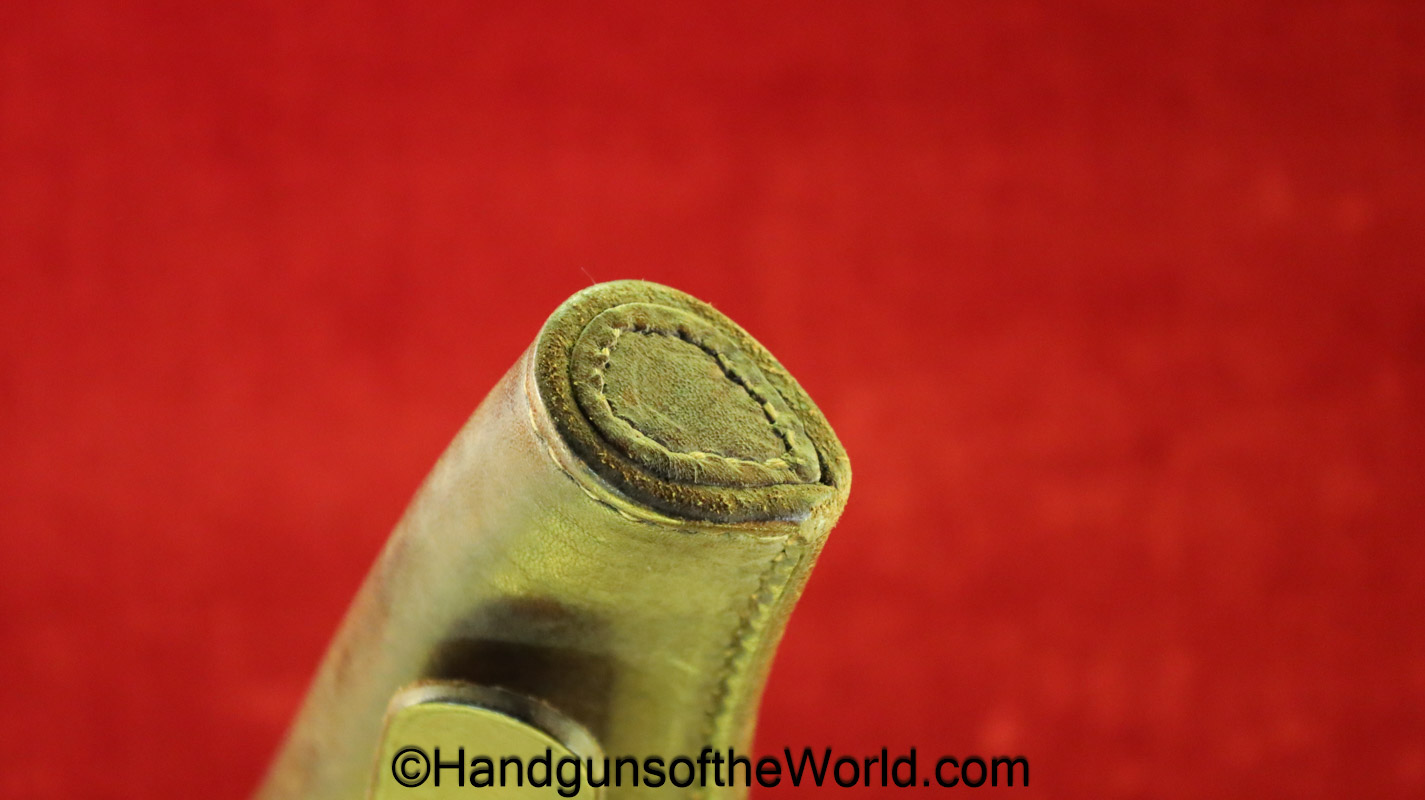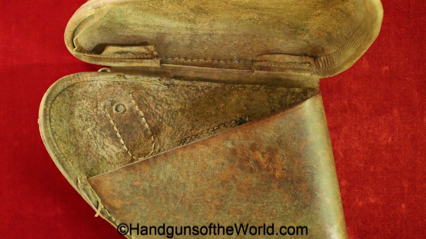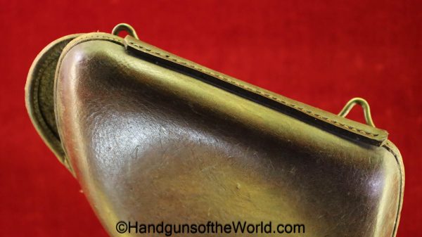 Original Steyr Mannlicher Model 1905 Argentine Contract Pistol Holster. This is a brown leather clamshell pattern. Unmarked, Overall VG+.