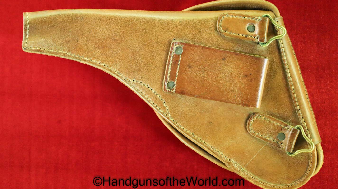 Original Steyr Mannlicher Model 1905, Argentine Contract Holster. Brown leather clamshell, unmarked. Overall VG+-Ex.