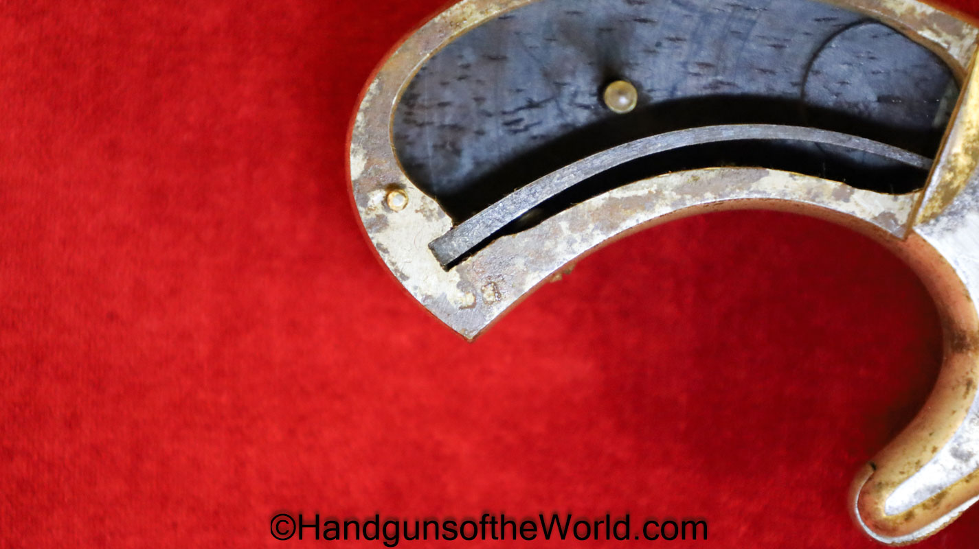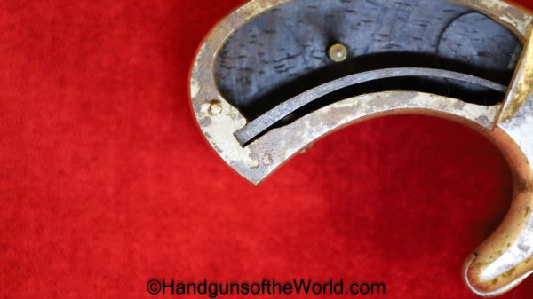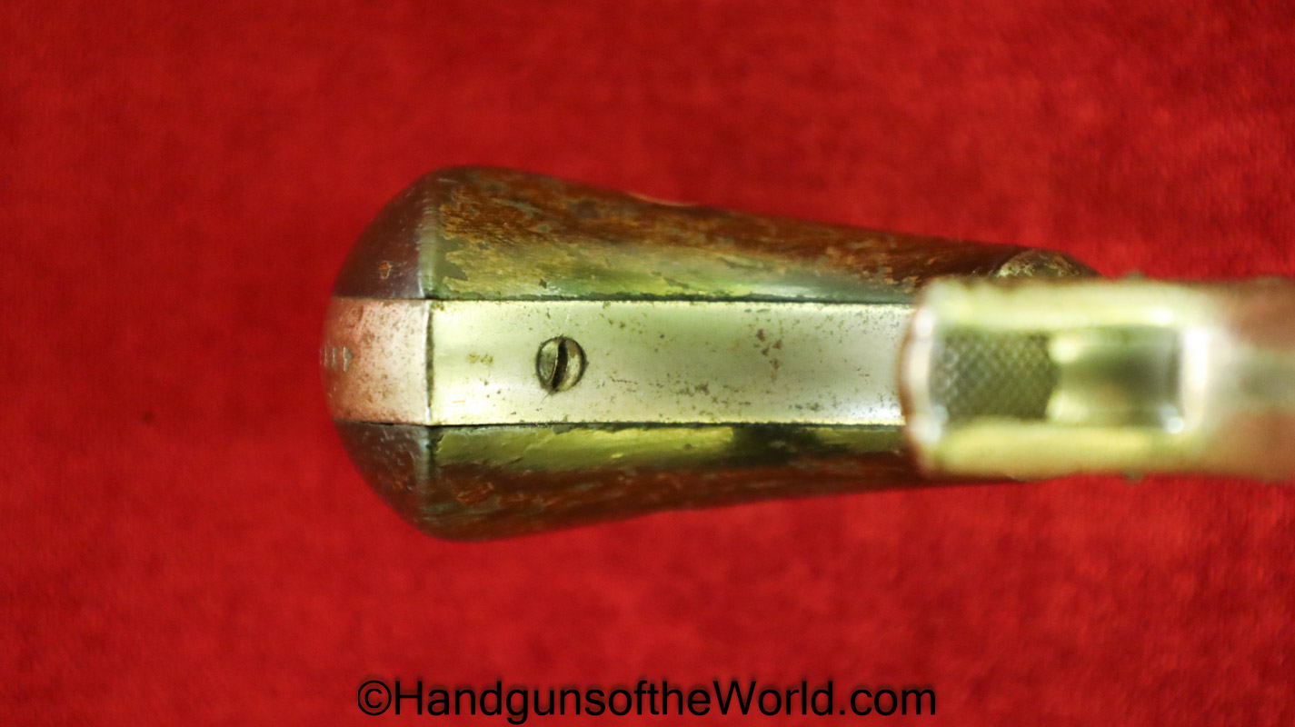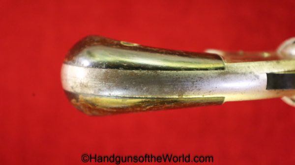 Smith & Wesson Model 1, 3rd issue. This has smooth Rosewood grips and a 3 3/16″ barrel Some nickel remains and the bore is VG. Antique.