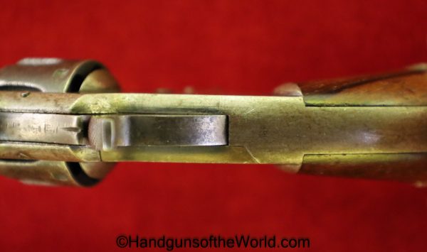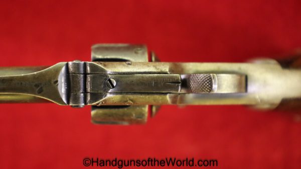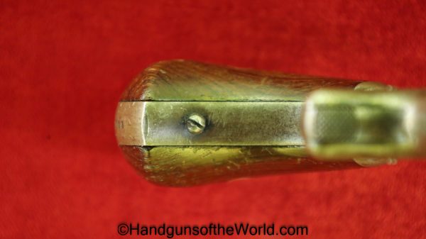 Smith & Wesson Model 1, 3rd Issue. This has smooth Rosewood grips and a 3 3/16″ barrel. This has a patina overall and a G-VG Bore. Antique.