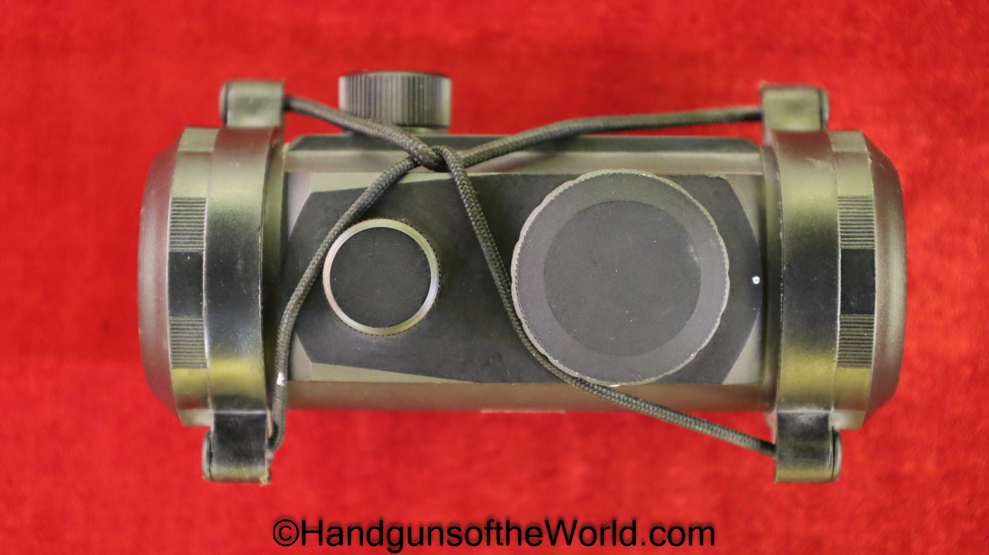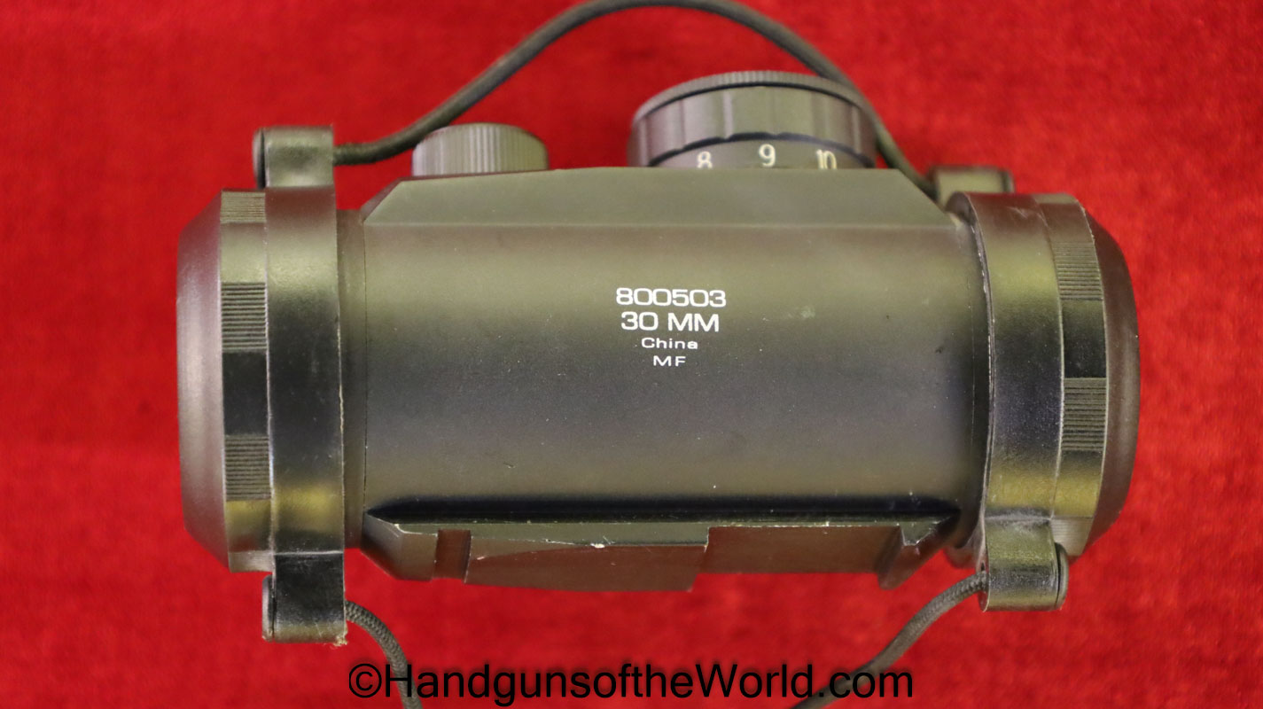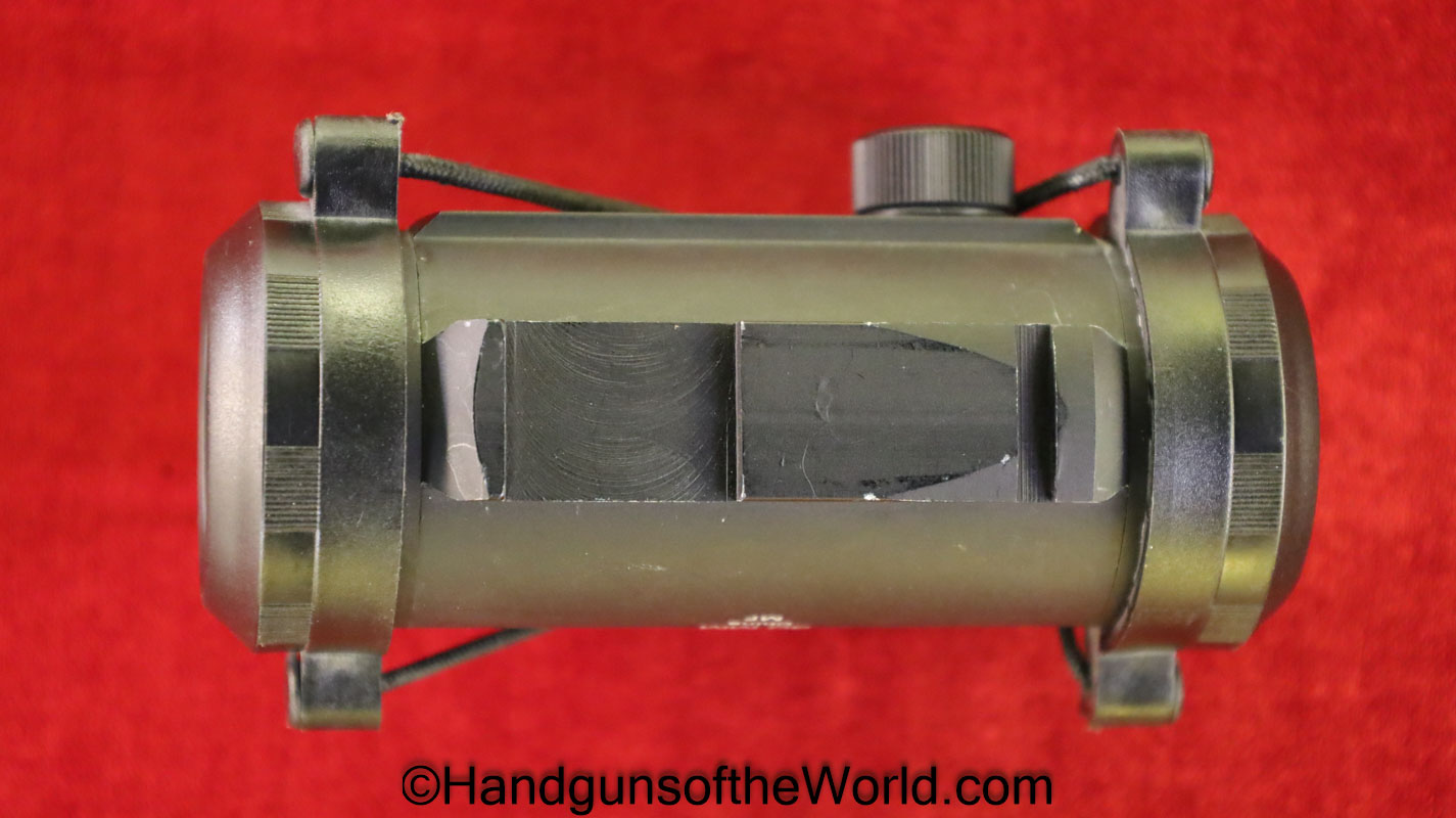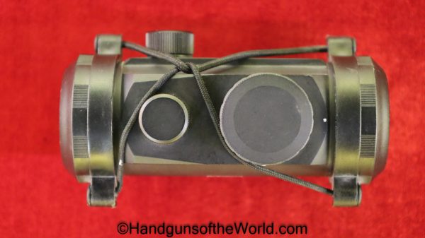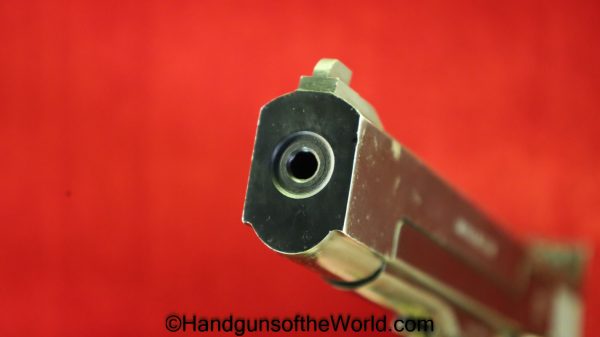 Smith & Wesson Model 41, .22lr. This has a 5 1/2″ barrel and custom adjustable left hand smooth walnut grips. The blue rates about 98% and the bore is excellent. This package includes an extra 5″ barrel to attach the included Blazer 30mm Pistol scope, and extra magazine, about 190 rounds of 22lr, some spare parts and a traveler’s shooting case.