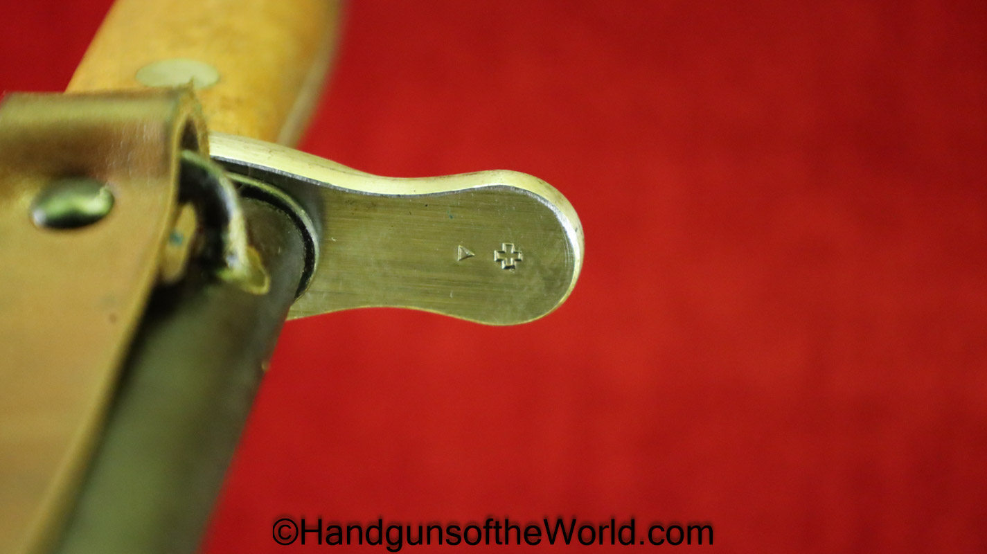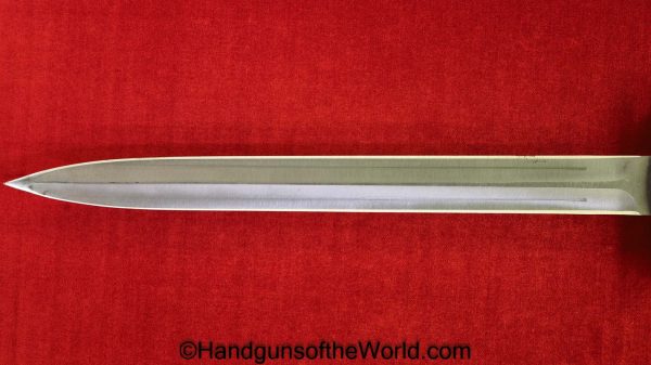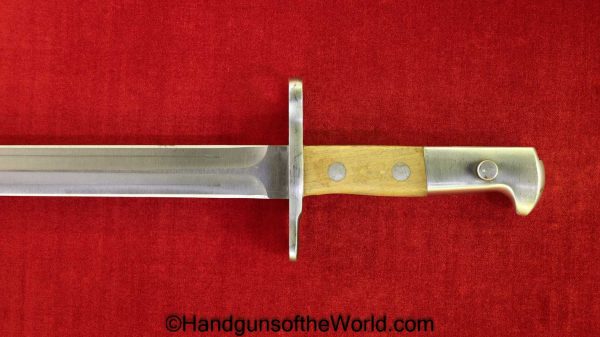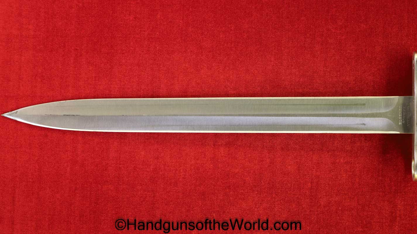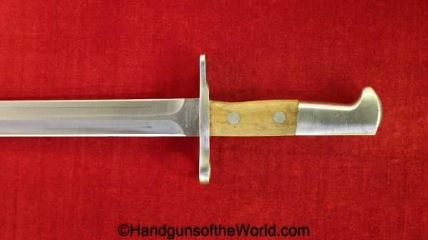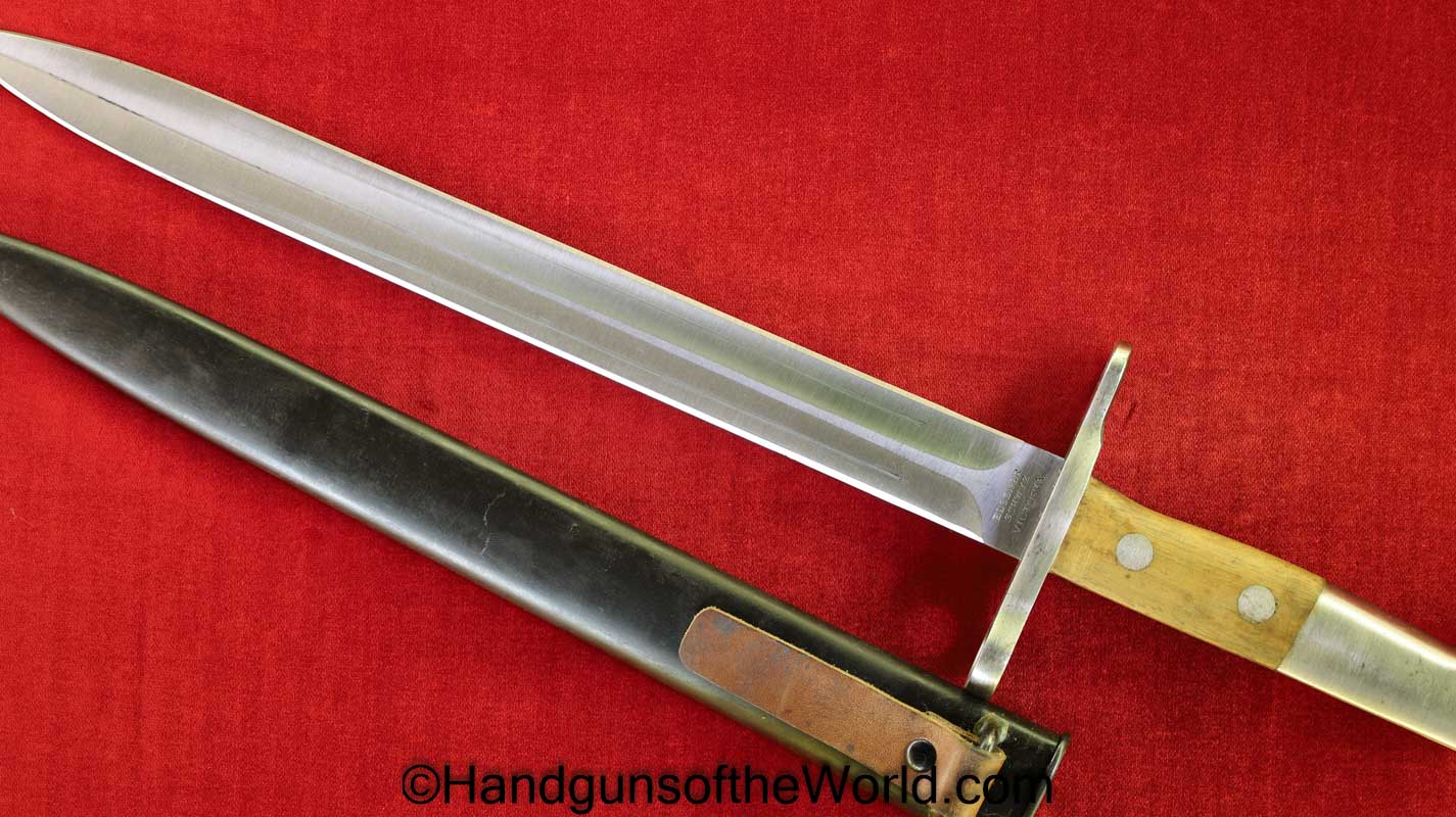 Swiss K-11 Bayonet. This is maker marked Elsener Schwyz-Victoria on the side and Swiss Military proofed on the guard and scabbard toe. This has a smooth walnut handle, and no serial number. Overall Excellent to include the scabbard. File photo, you will receive a similar item