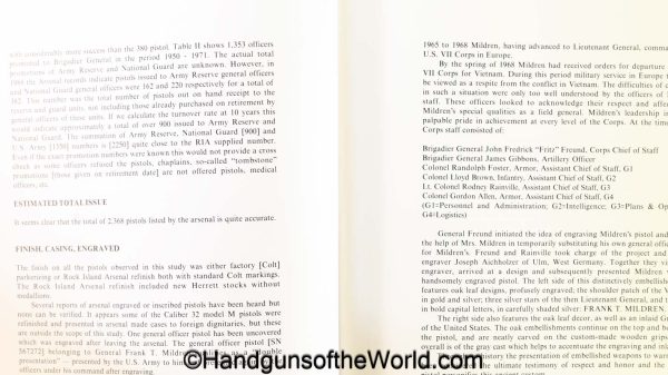 The Colt US General Officers Pistol Book by Horace Greeley IV. 199, 8×11 pages hardbound. Overall Excellent.