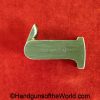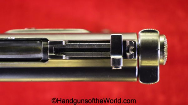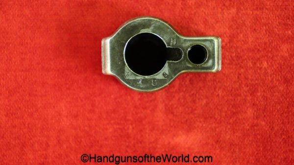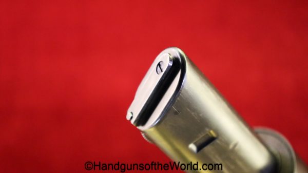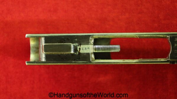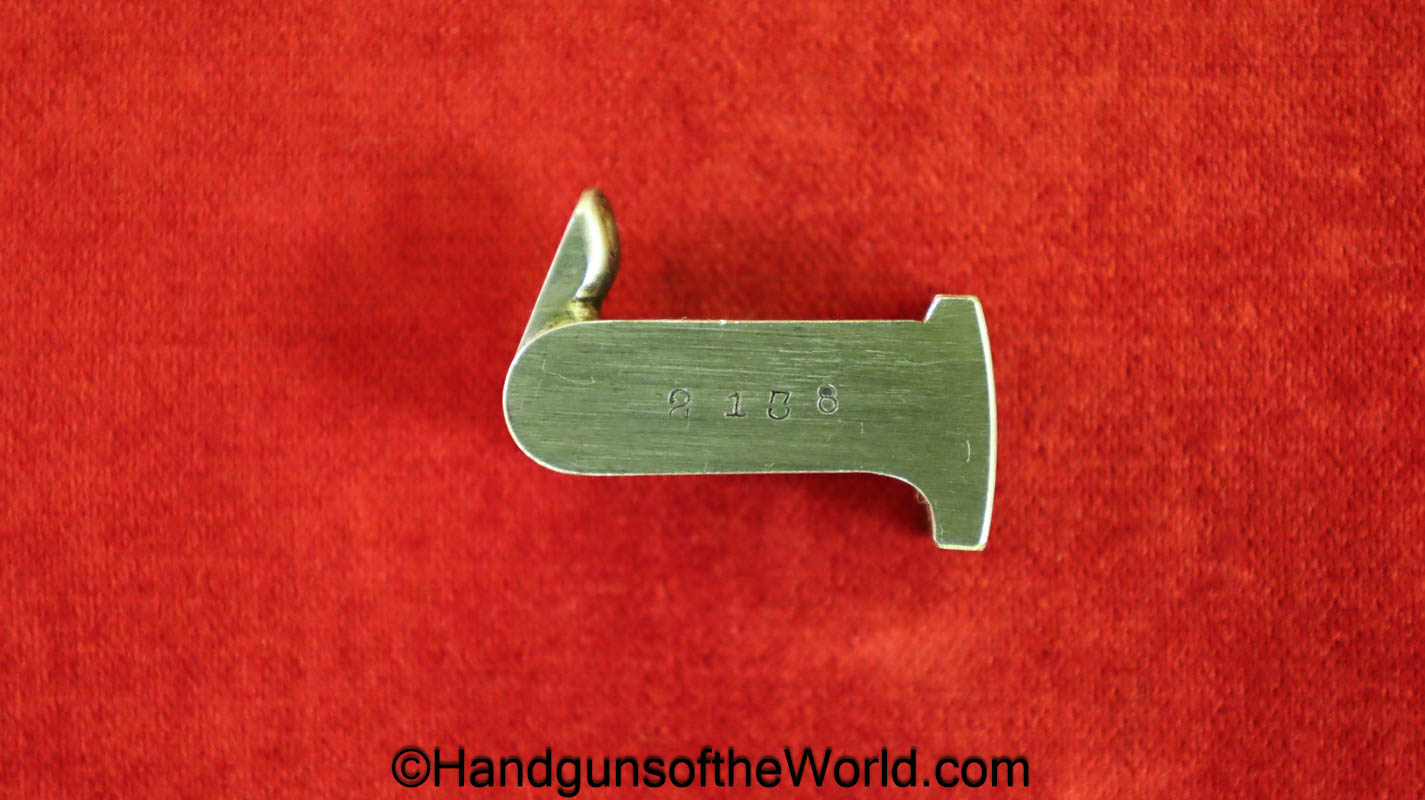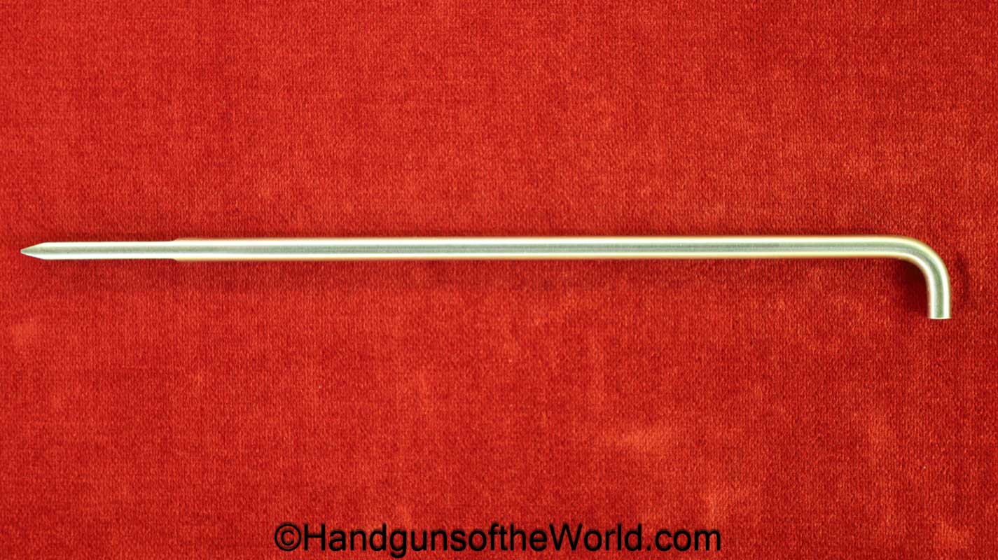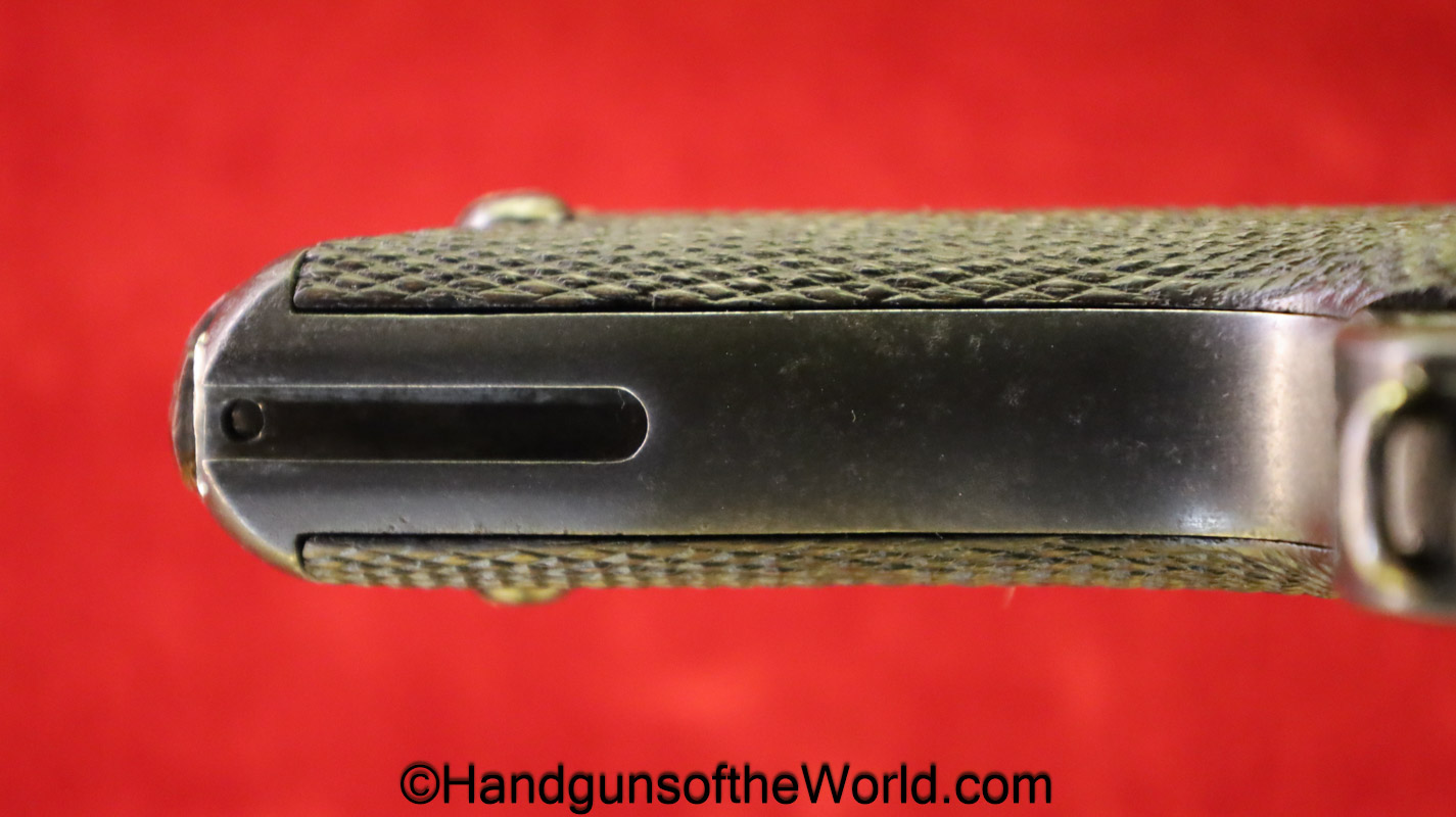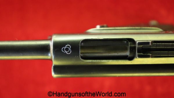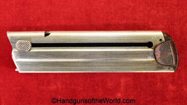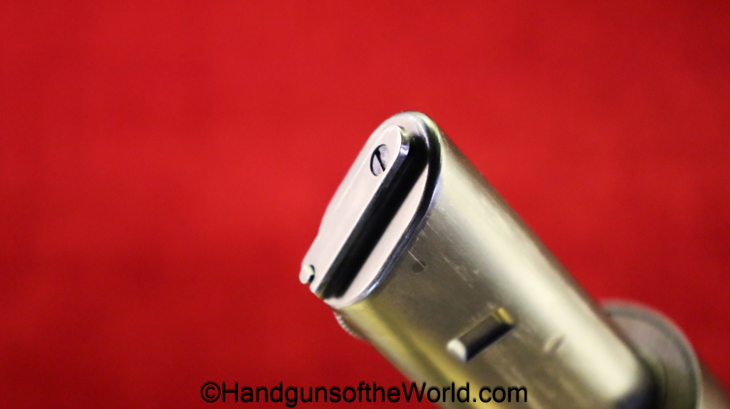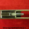 Tokyo Arsenal 1902 Grandpa Nambu, 8mm. This is Japanese Military proofed on the front strap, and has proper checkered walnut grips. This has all matching numbers but for the correct wooden base magazine. This retains about 90% thinning blue and the bore is excellent. There are no importer markings on this one. This comes with a fantastic recreation of the original wooden holster shoulder stock and a cleaning rod.